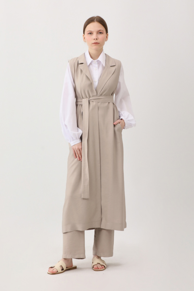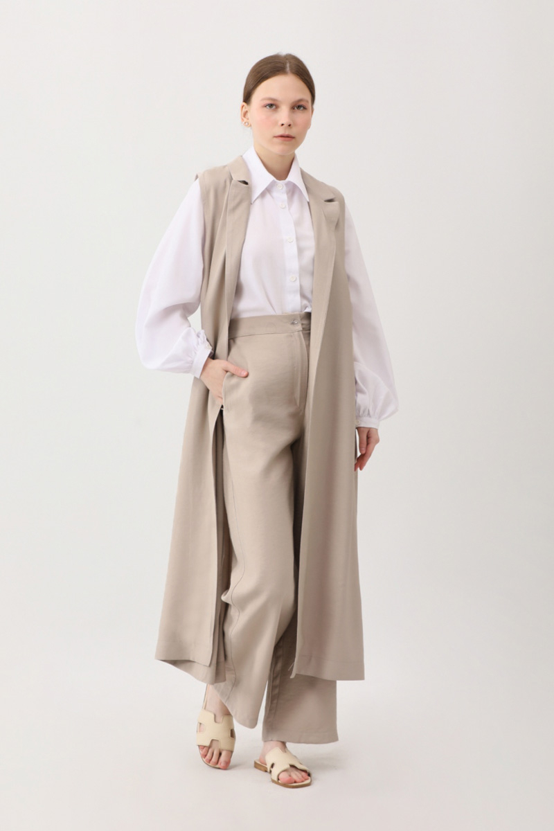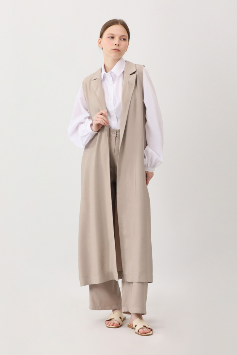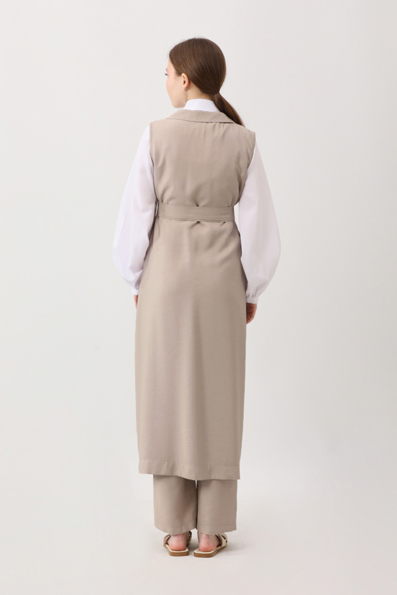 Tensel Yelekli Pantolon Takım Taş. Kruvaze yakadır, sıfır kolludur, yandan ceplidir. Pantolon, düğmeli ve fermuarlıdır, arka beli lastiklidir, yandan ceplidir. Günlük kullanım ve özel günlerinizde tercih edebilirsiniz.
