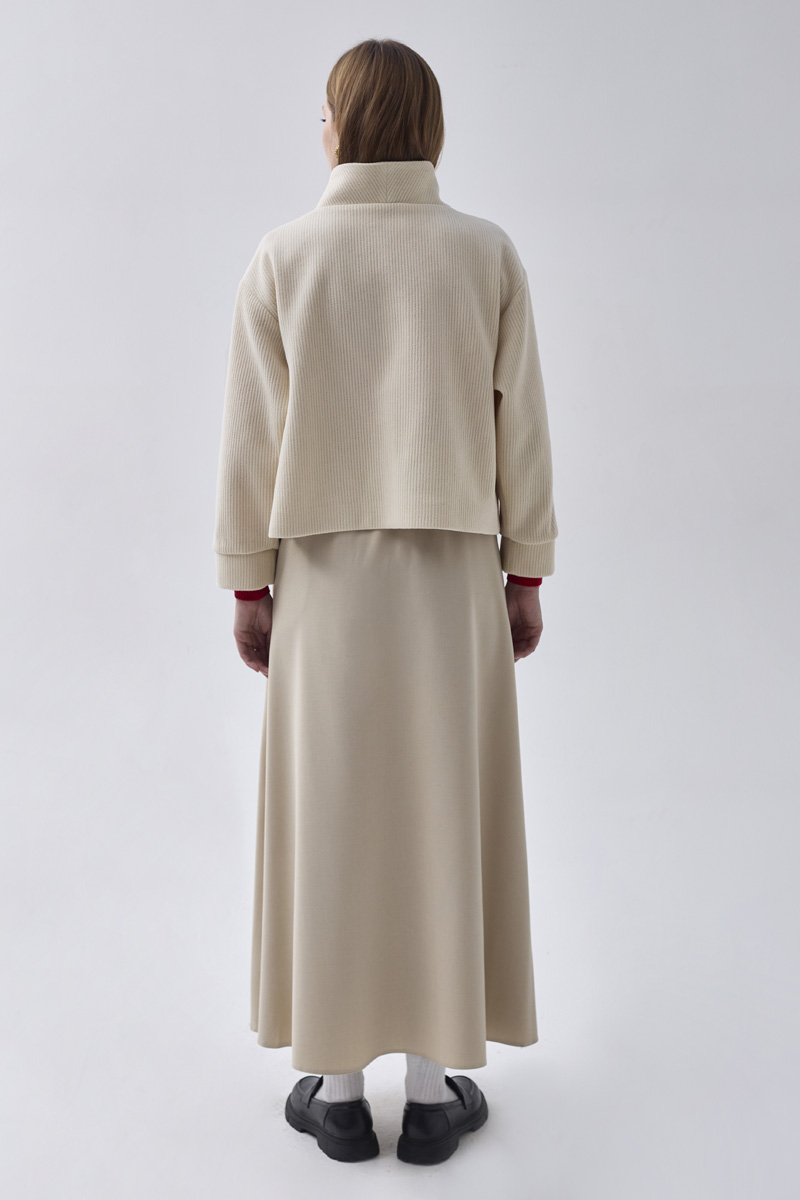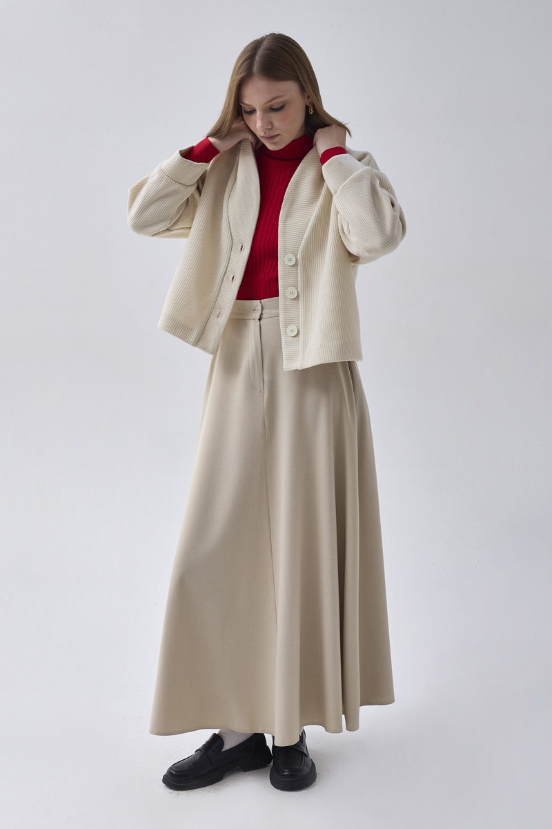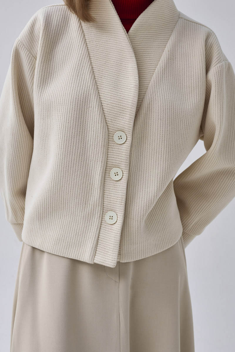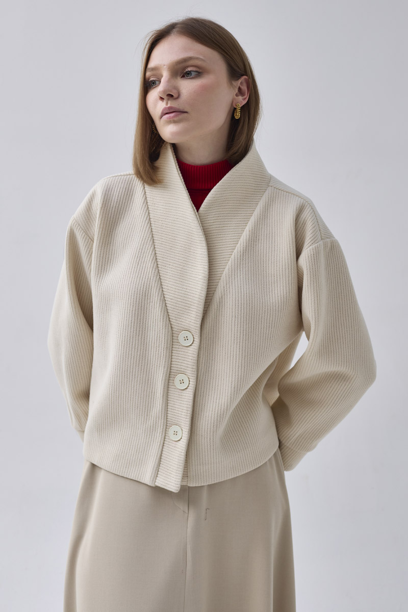 With its minimal design and modern textured stripe fabric, this jacket adds sophisticated elegance to both everyday and office looks. Its relaxed fit ensures comfortable wear, while the front button details create a timeless appearance. Versatile and easy to style, it pairs perfectly with both skirts and trousers for a refined finish.