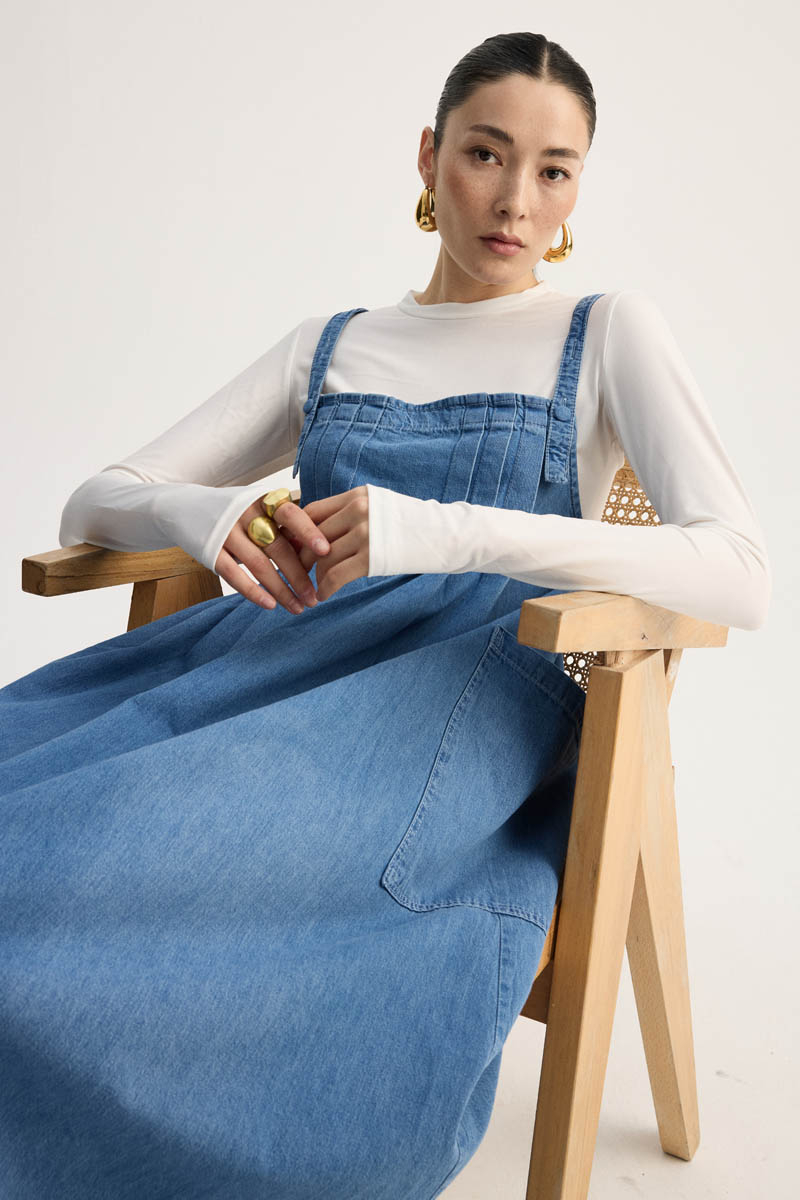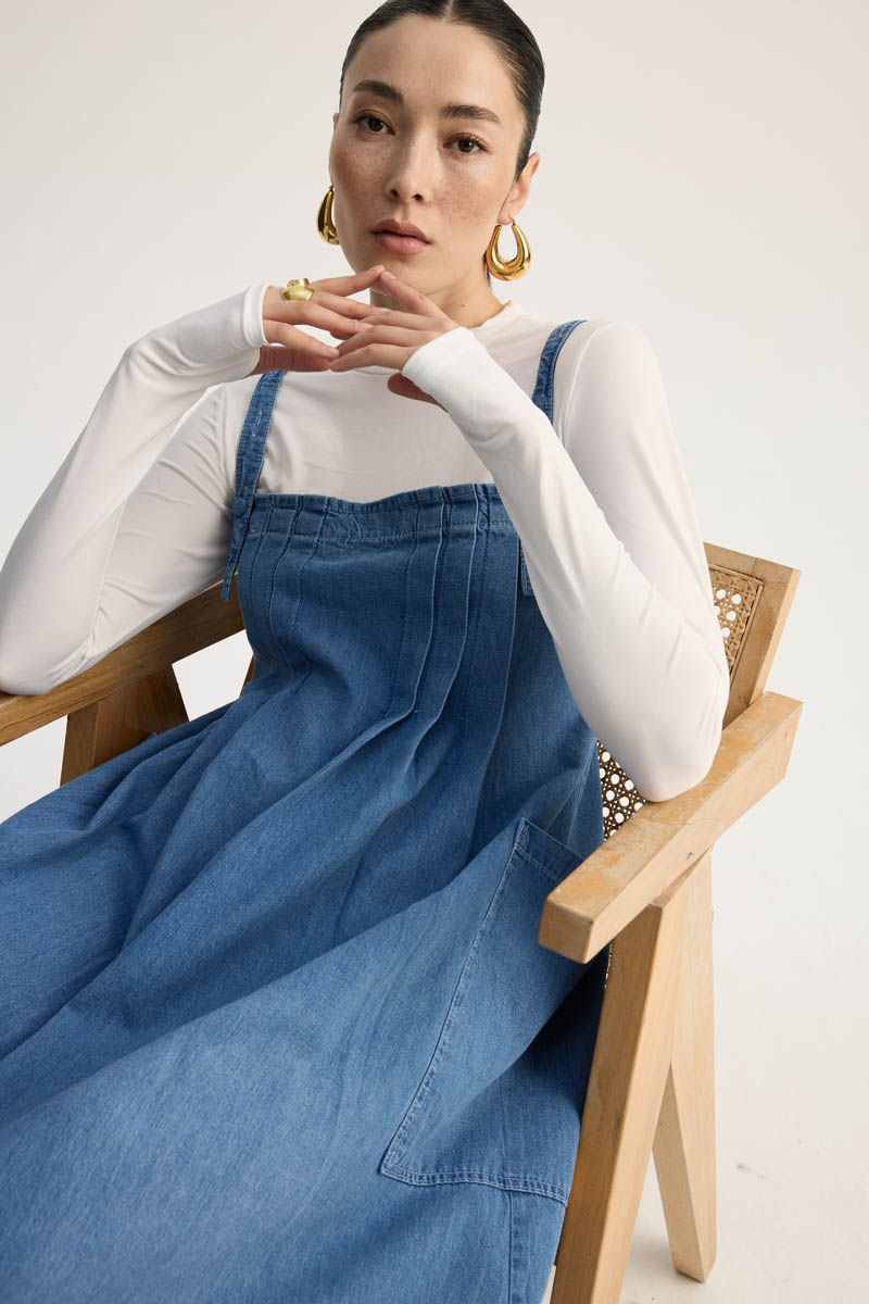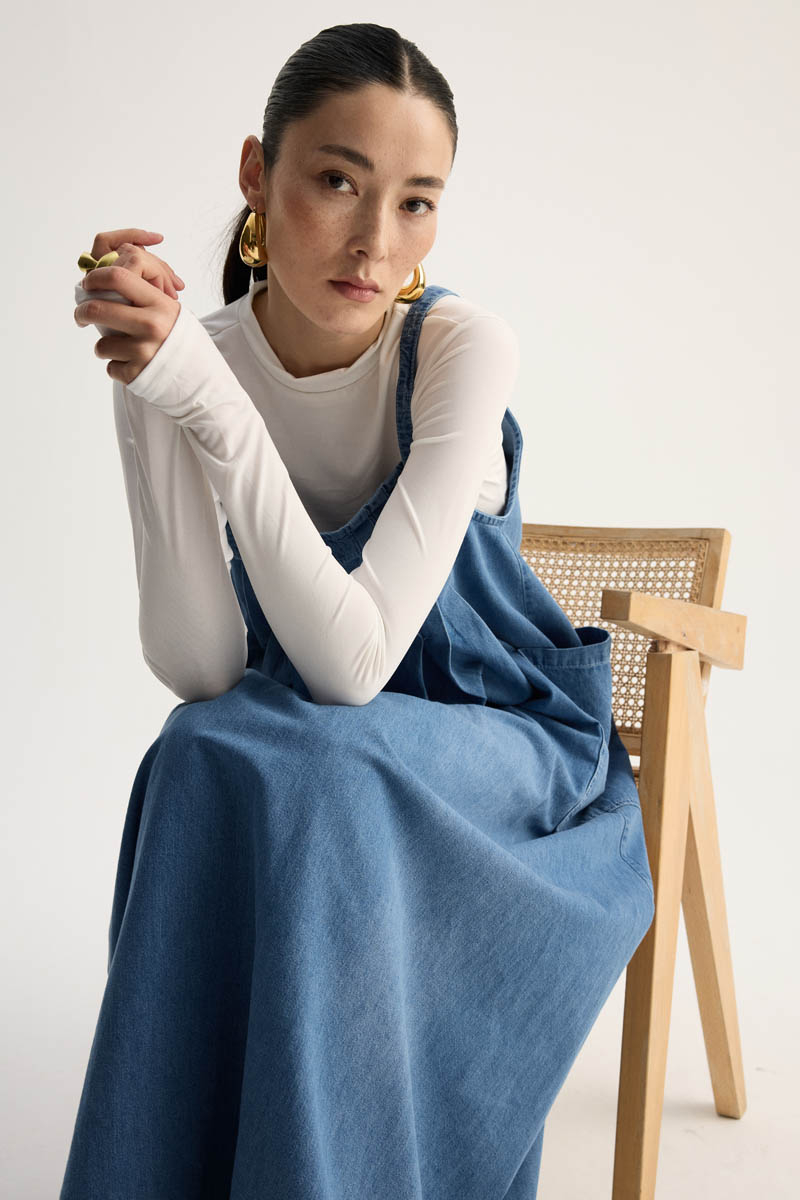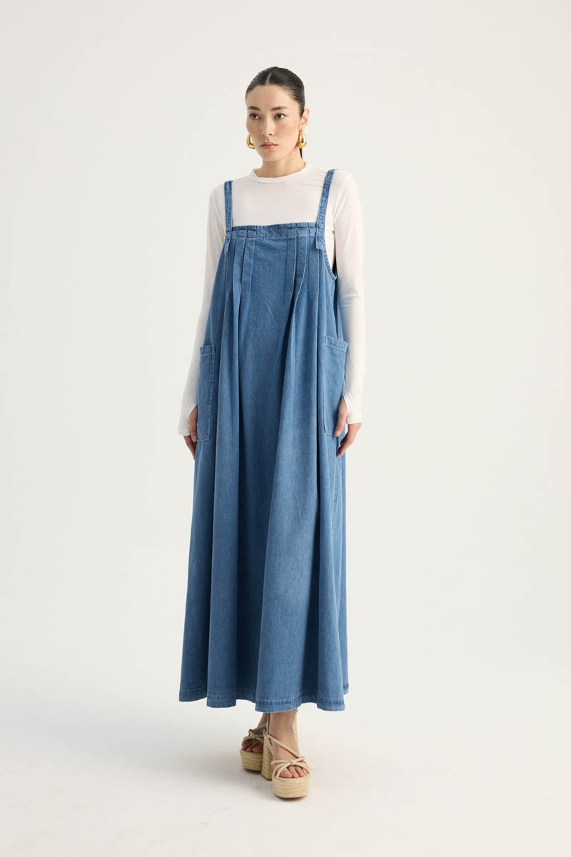 Torba Cepli Denim Jile Siyah. Kare yakadır, askıları düğme ile ayarlanılabilir,, önden pilelidir, yandan büyük torba cep detaylıdır, astarsızdır. Günlük kullanım ve özel günlerinizde tercih edebilirsiniz.