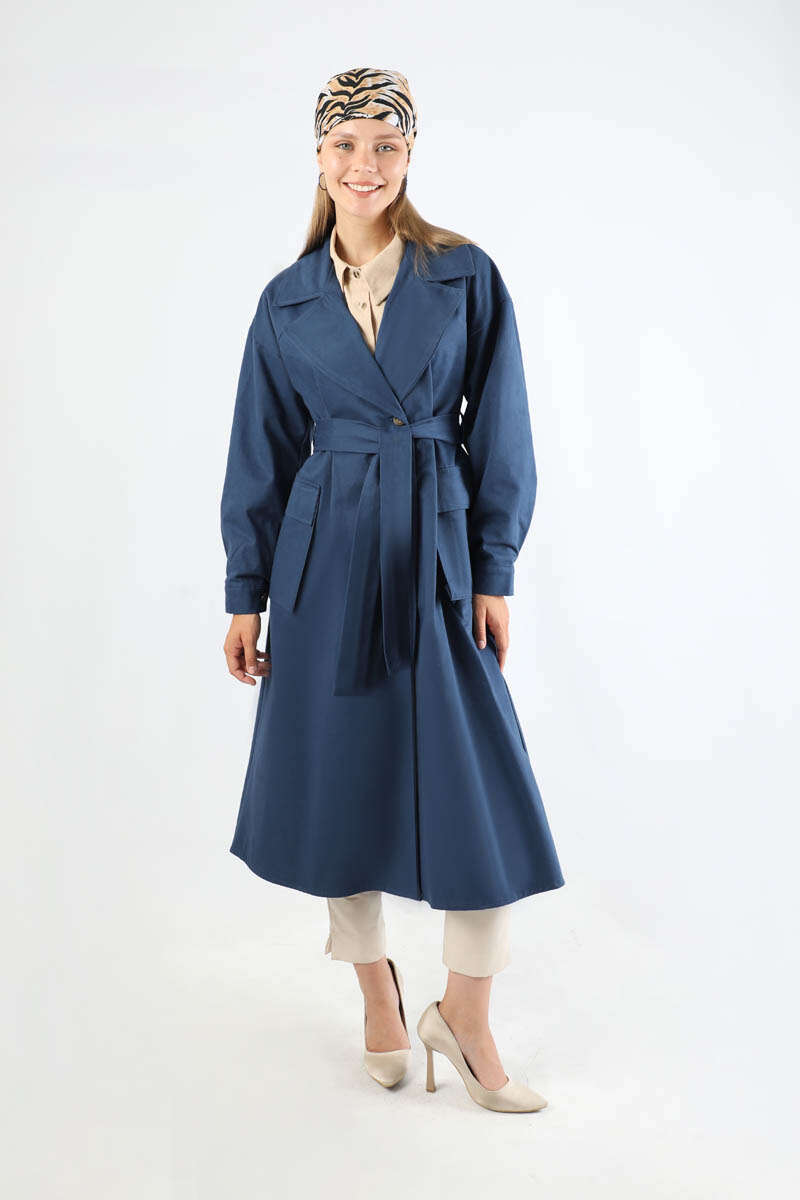 Körük Cepli Trençkot İndigo. Körüklü ceplidir. Manşeti düğmelidir. Düşük omuzludur. Arka robadan A pile detaylıdır. Arkadan süs köprü detaylıdır. Manşeti pilelidir. Günlük kullanım ve özel günlerinizde tercih edebilirsiniz.