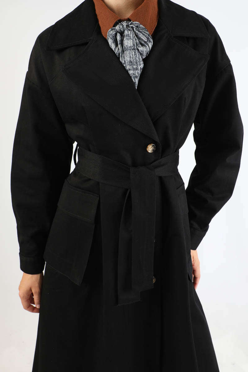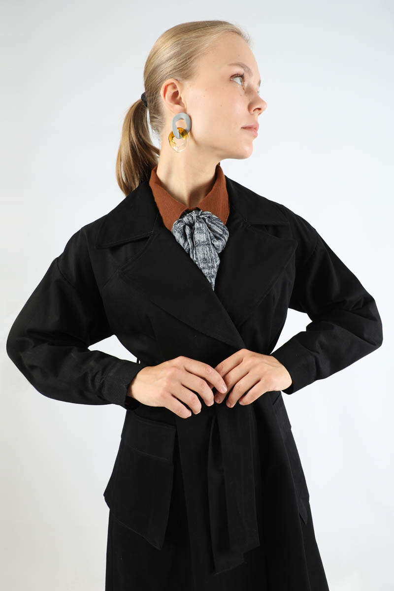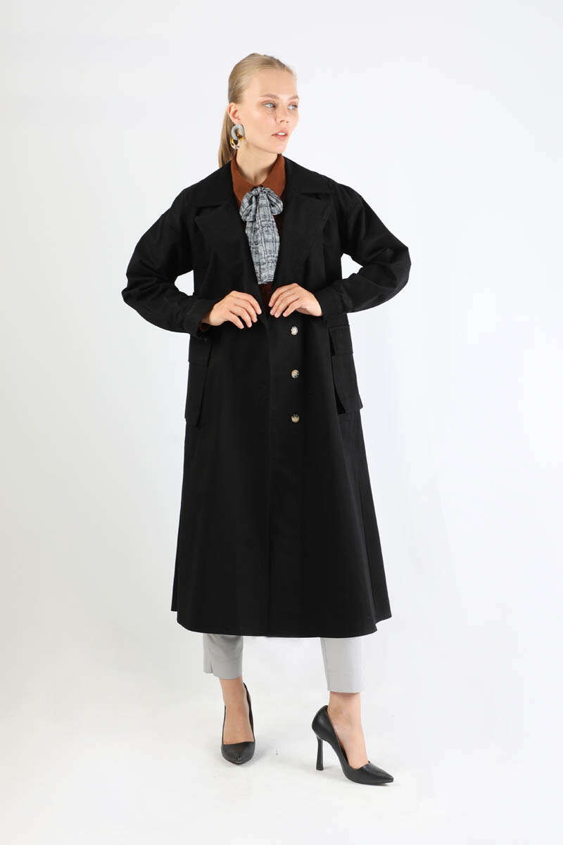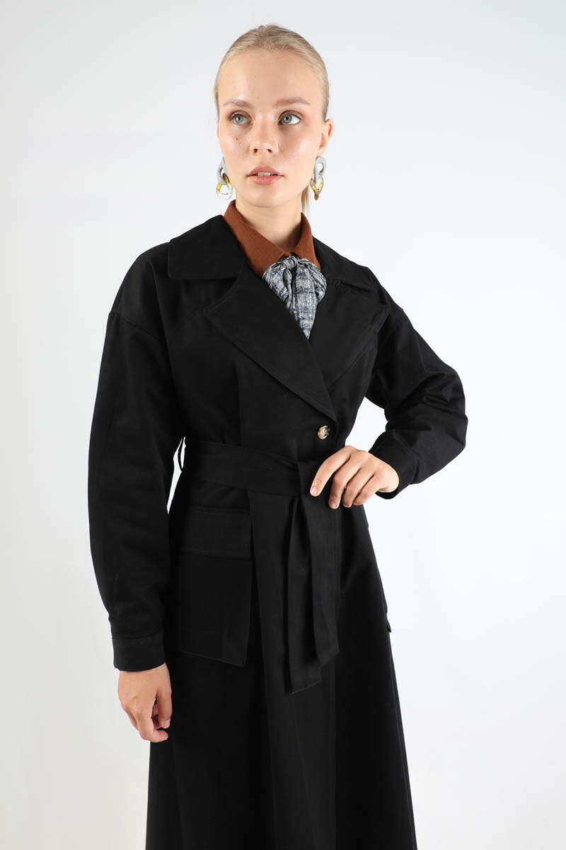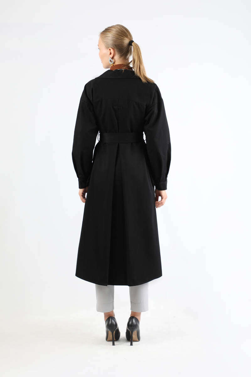 Körük Cepli Trençkot Siyah