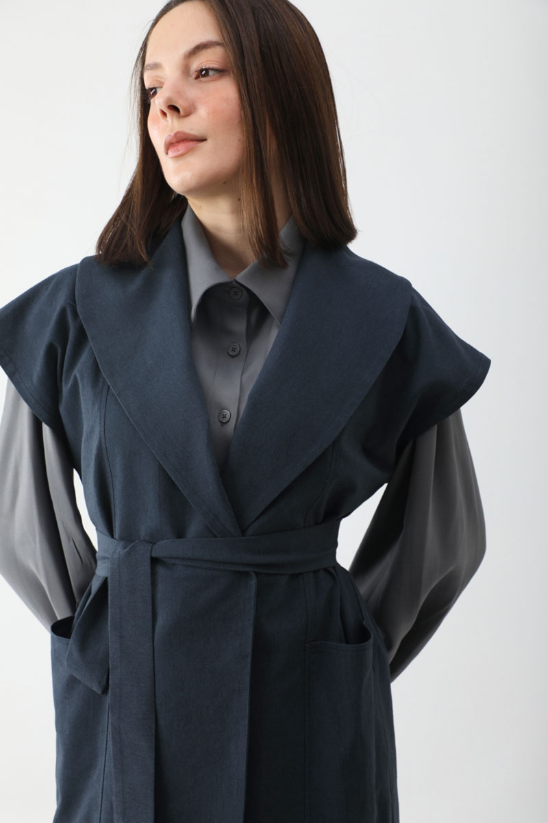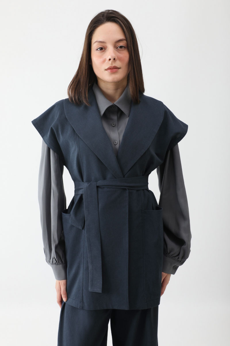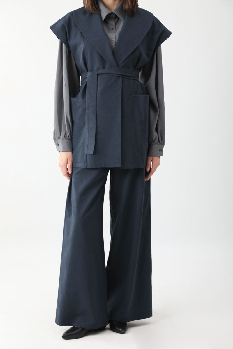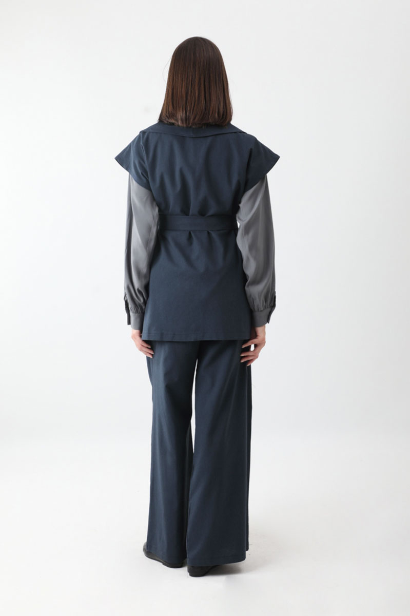 Torba Cepli Yelek Takım Lacivert. Kruvaze yakadır, parça detaylıdır, büyük ceplidir, kuşaklıdır, Pantolon belden lastiklidir, önden pilelidir, yandan ceplidir, düğmeli ve fermuarlıdır. Günlük kullanım ve özel günlerinizde tercih edebilirsiniz.