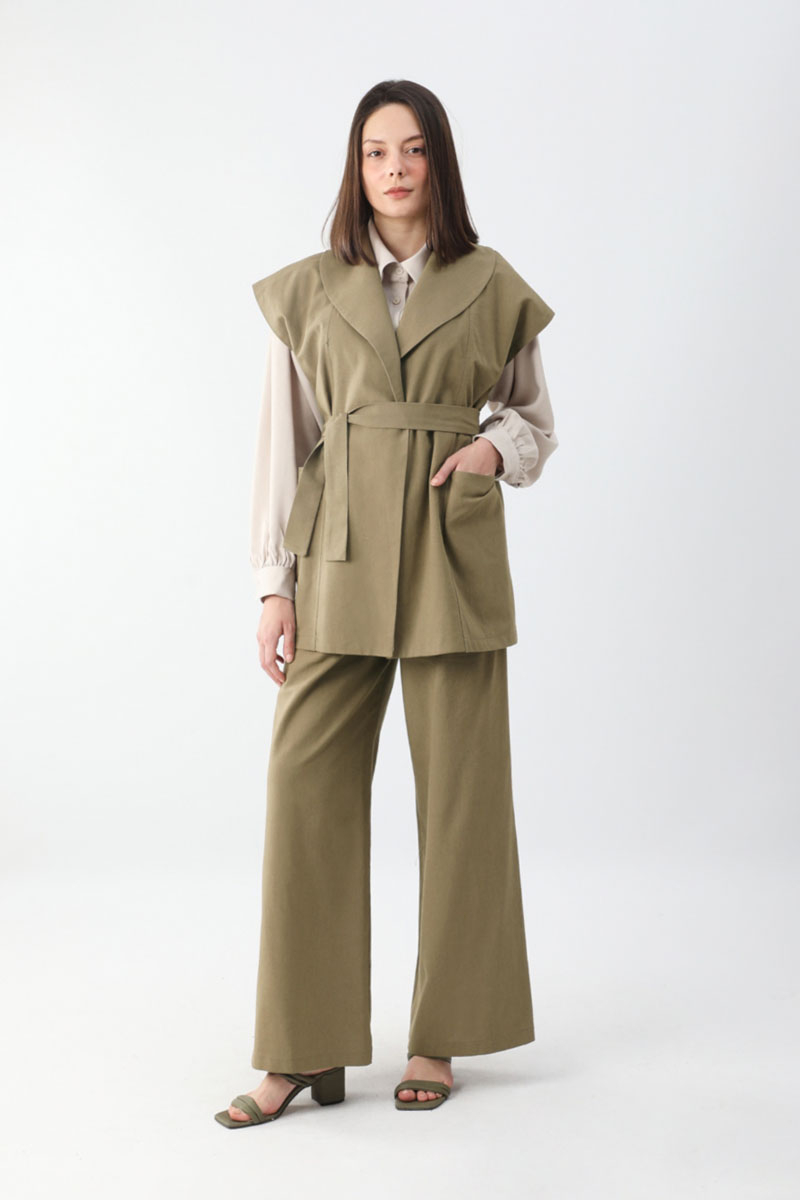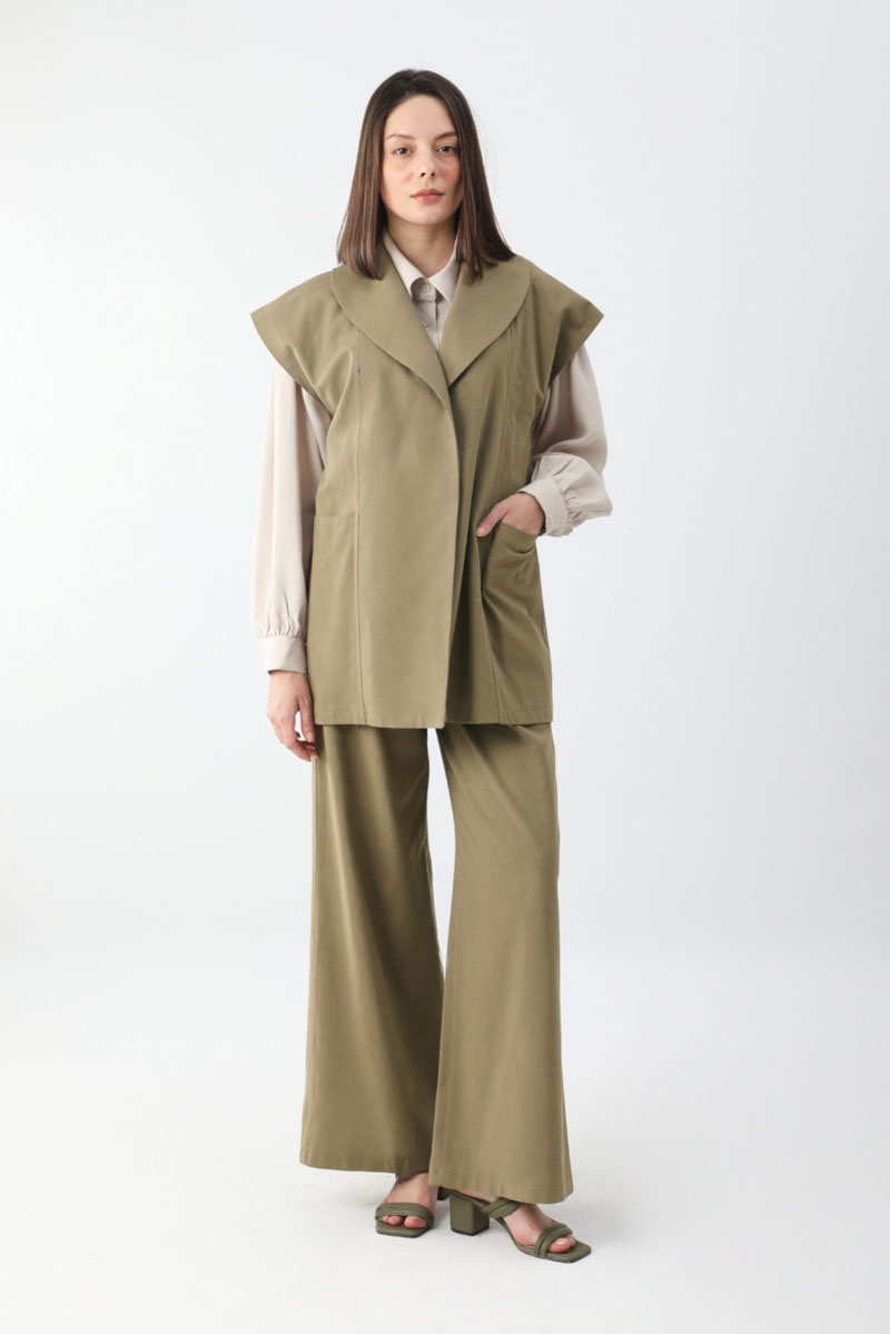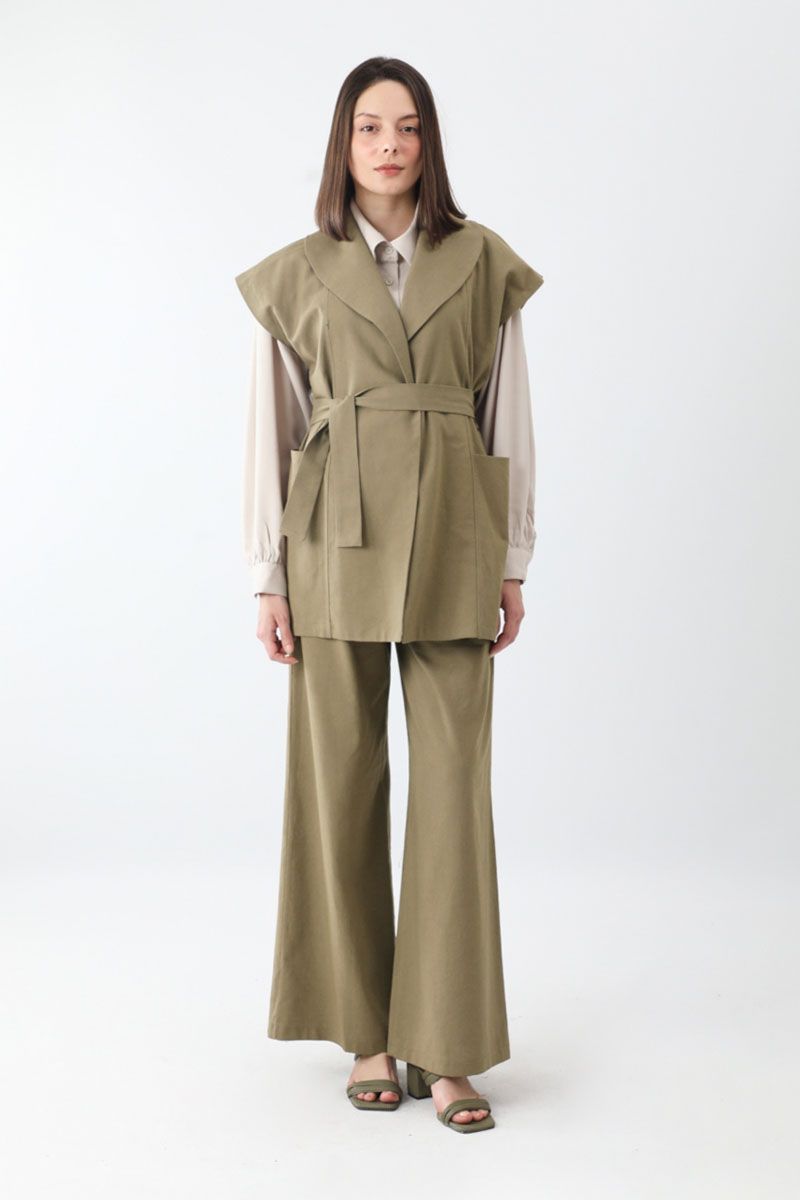 Torba Cepli Yelek Takım Vizon. Kruvaze yakadır, parça detaylıdır, büyük ceplidir, kuşaklıdır, Pantolon belden lastiklidir, önden pilelidir, yandan ceplidir, düğmeli ve fermuarlıdır. Günlük kullanım ve özel günlerinizde tercih edebilirsiniz.