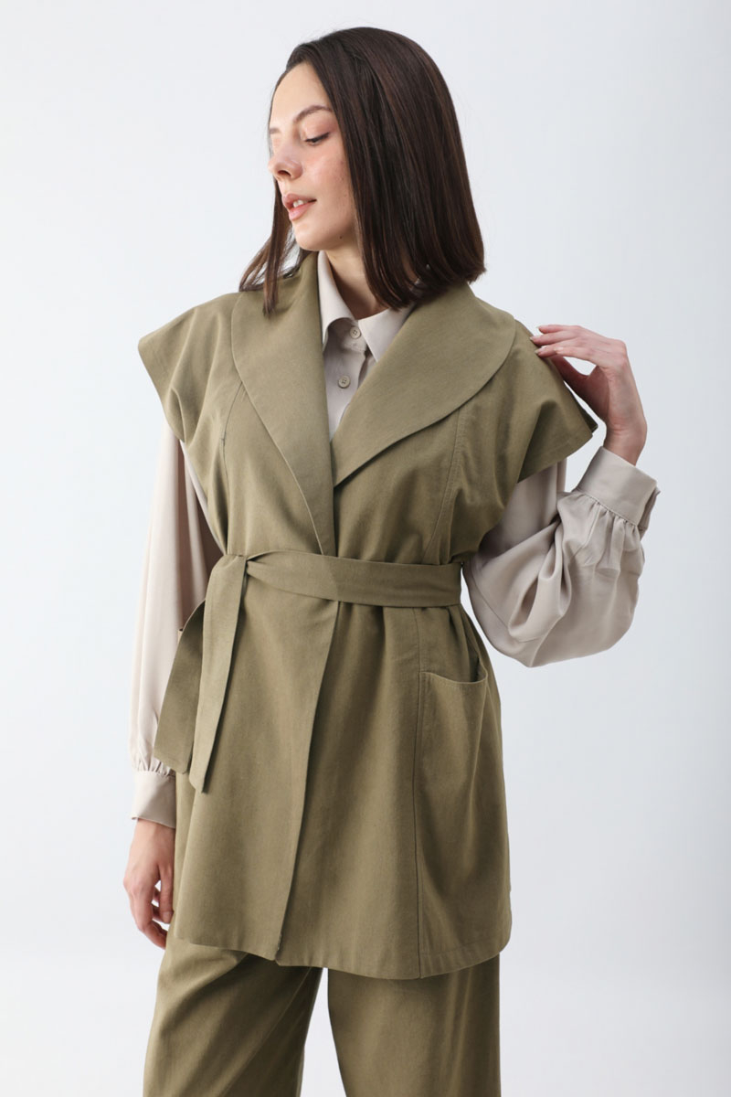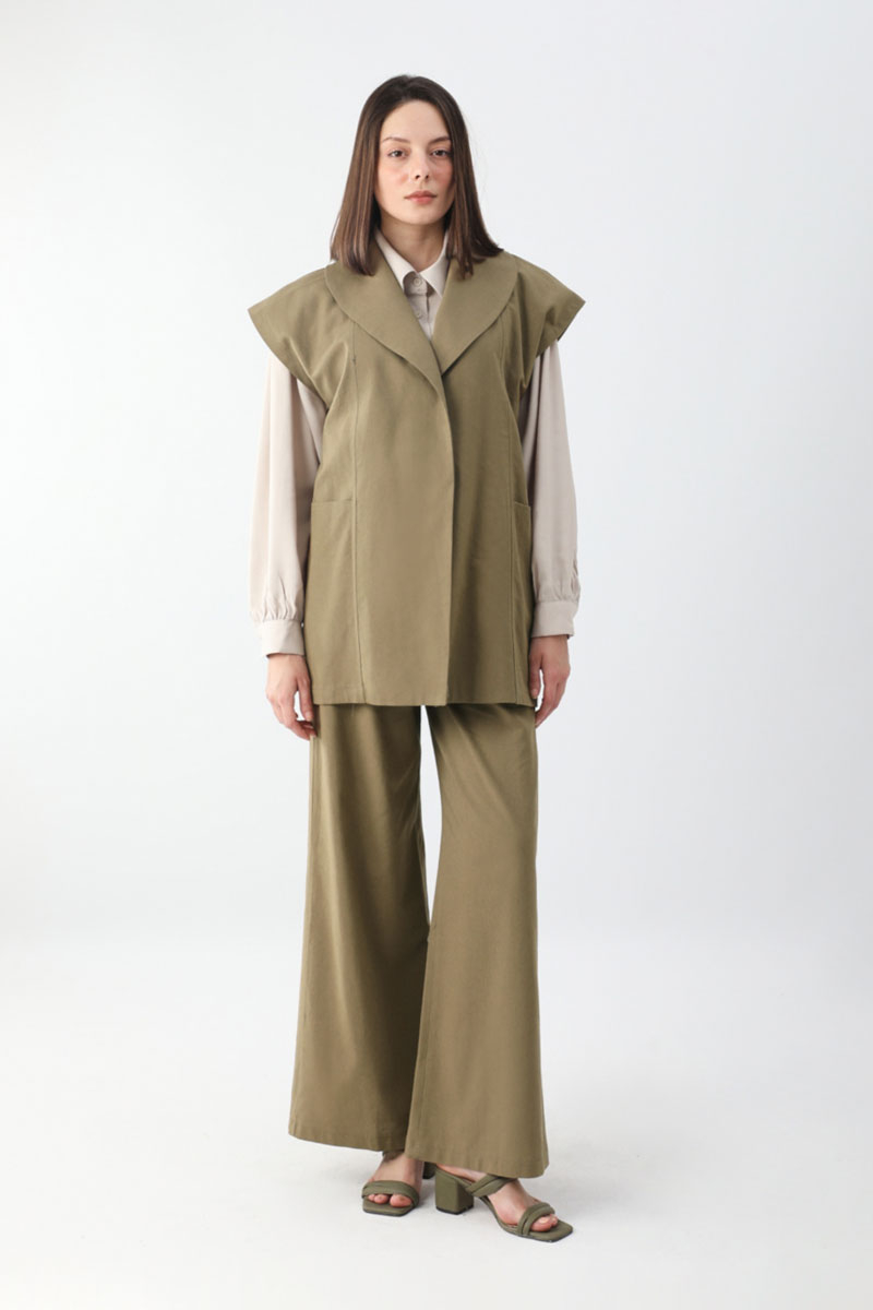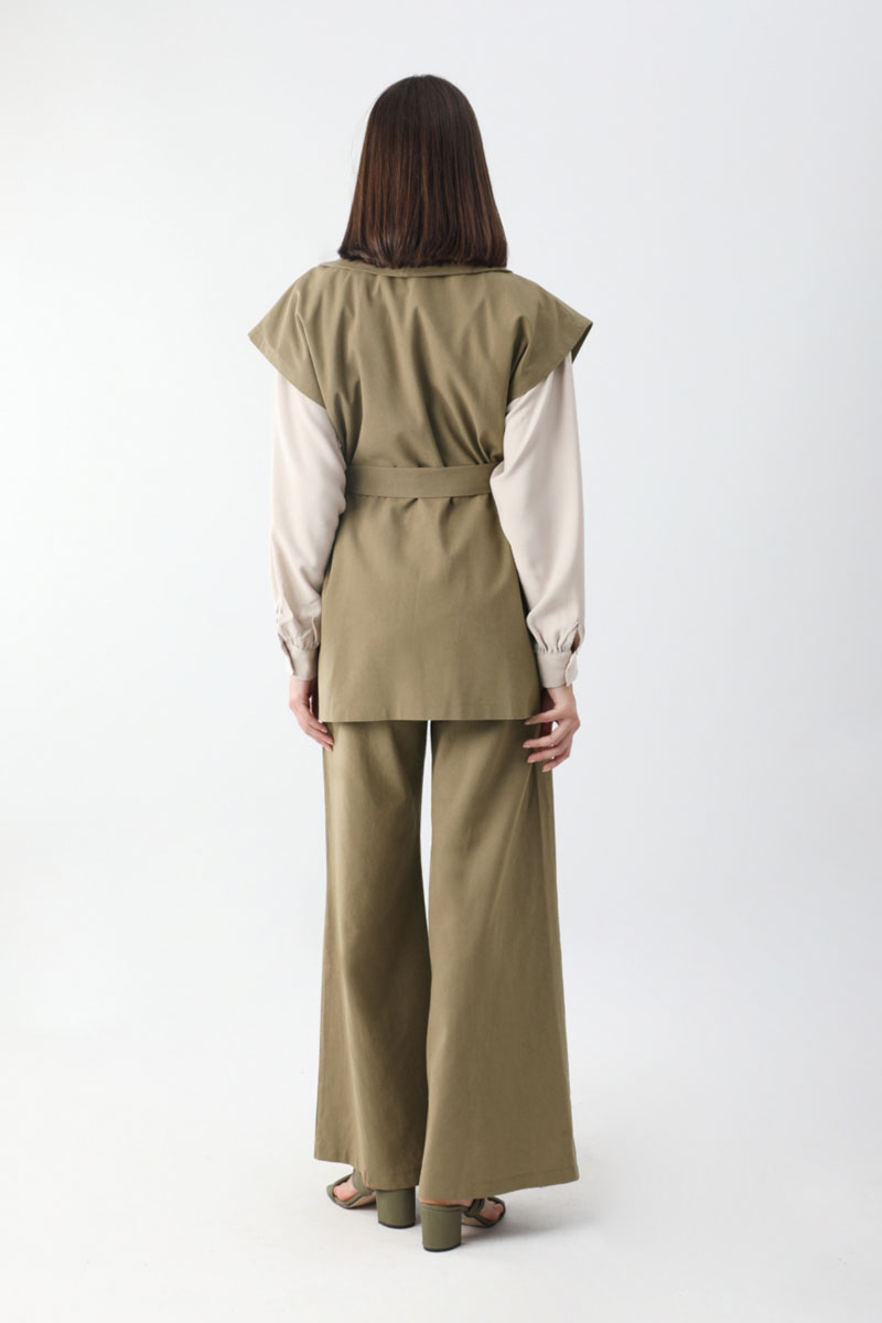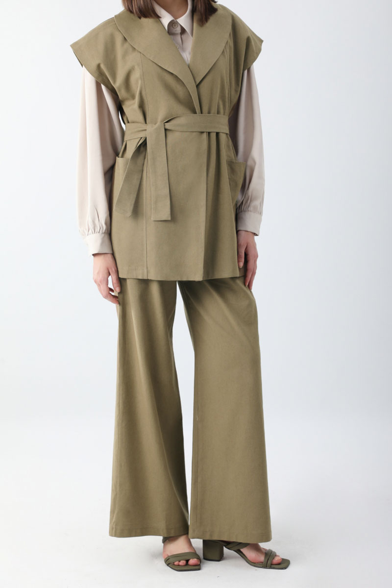Torba Cepli Yelek Takım Vizon. Kruvaze yakadır, parça detaylıdır, büyük ceplidir, kuşaklıdır, Pantolon belden lastiklidir, önden pilelidir, yandan ceplidir, düğmeli ve fermuarlıdır. Günlük kullanım ve özel günlerinizde tercih edebilirsiniz.