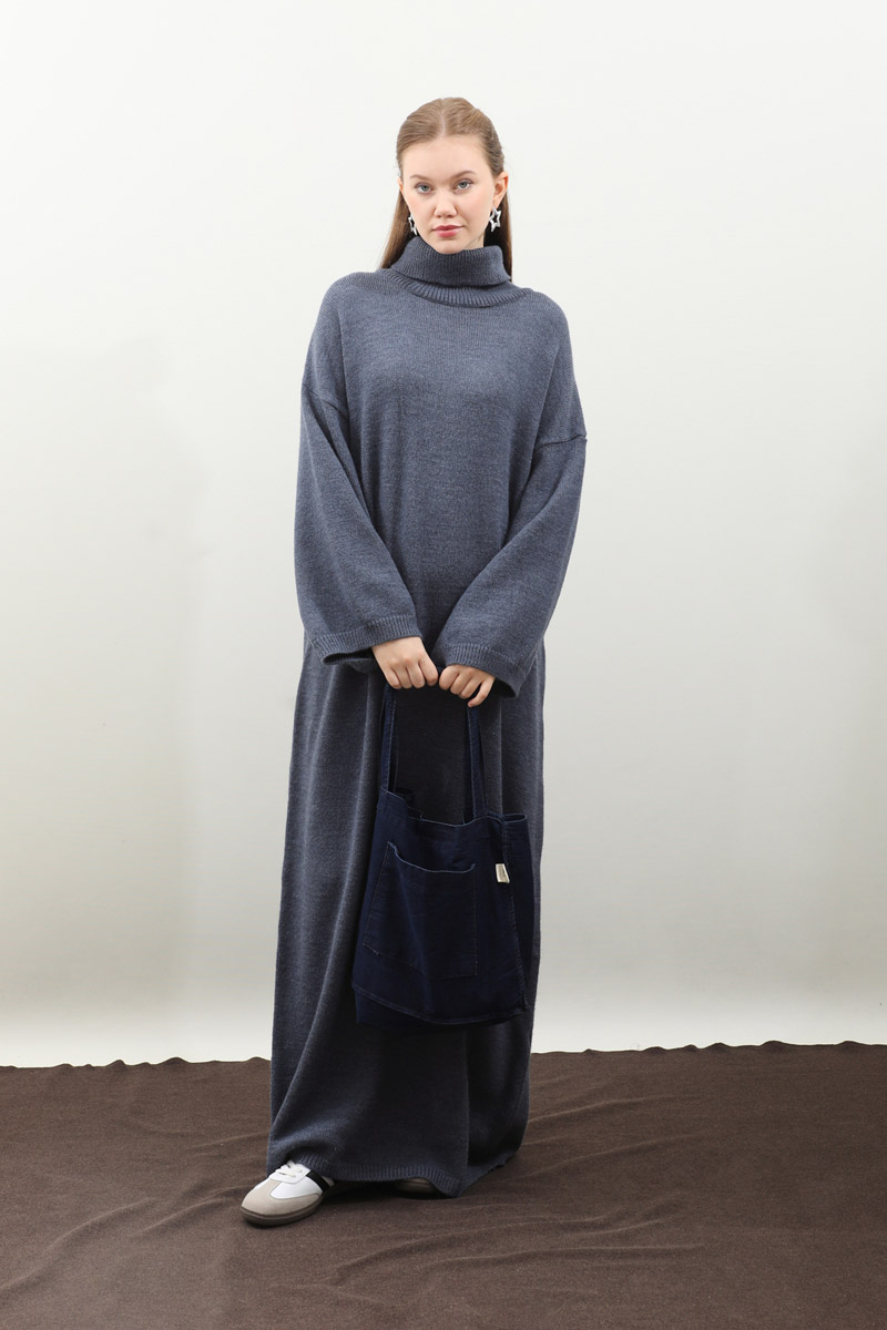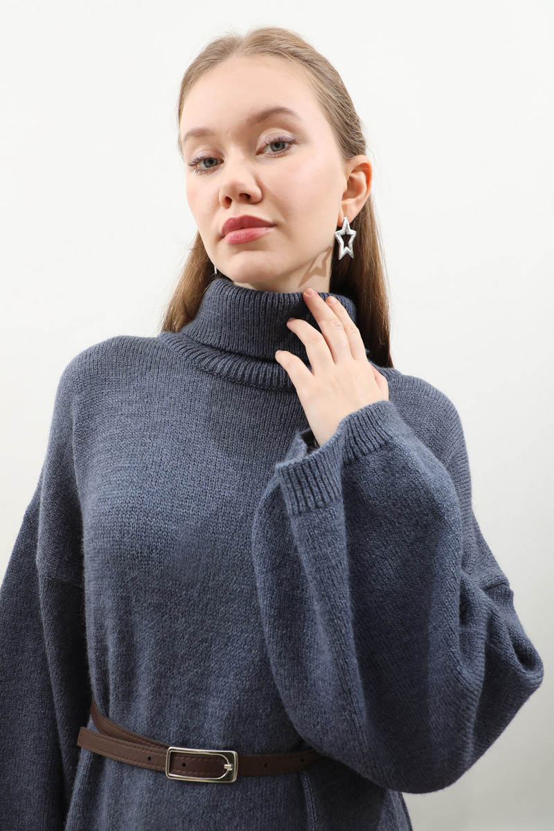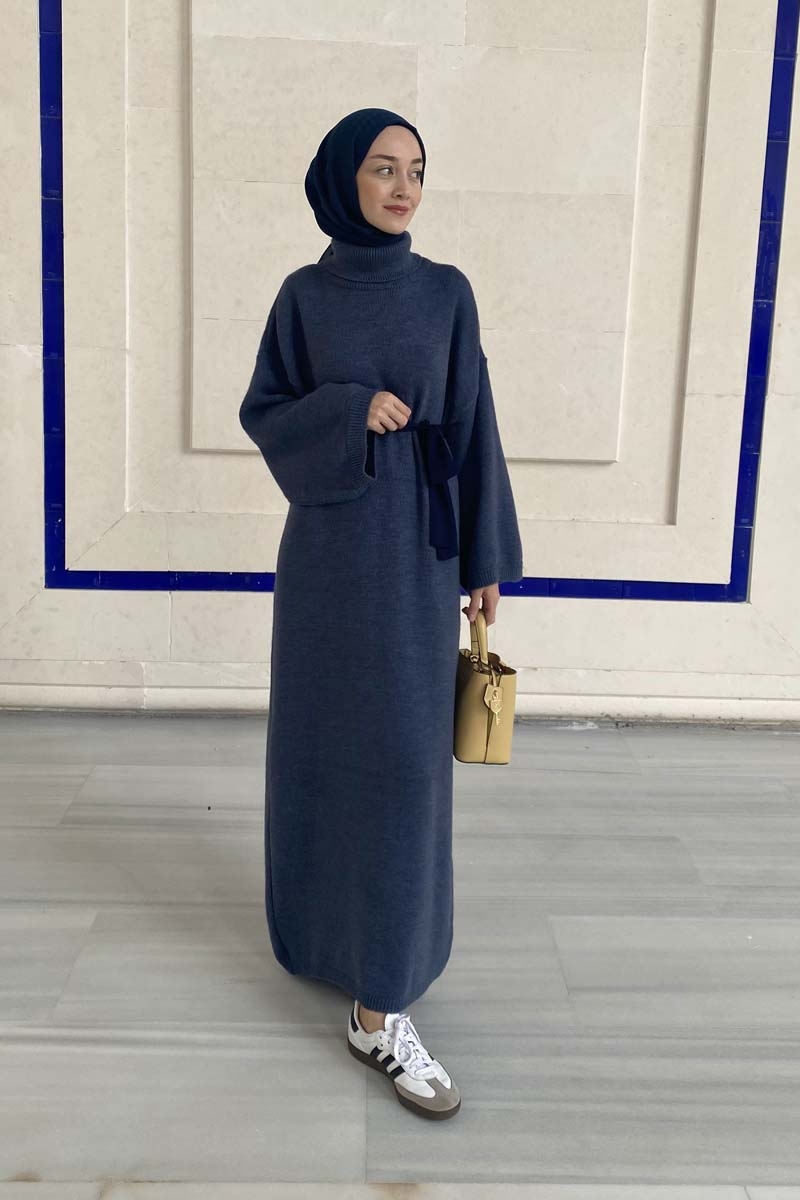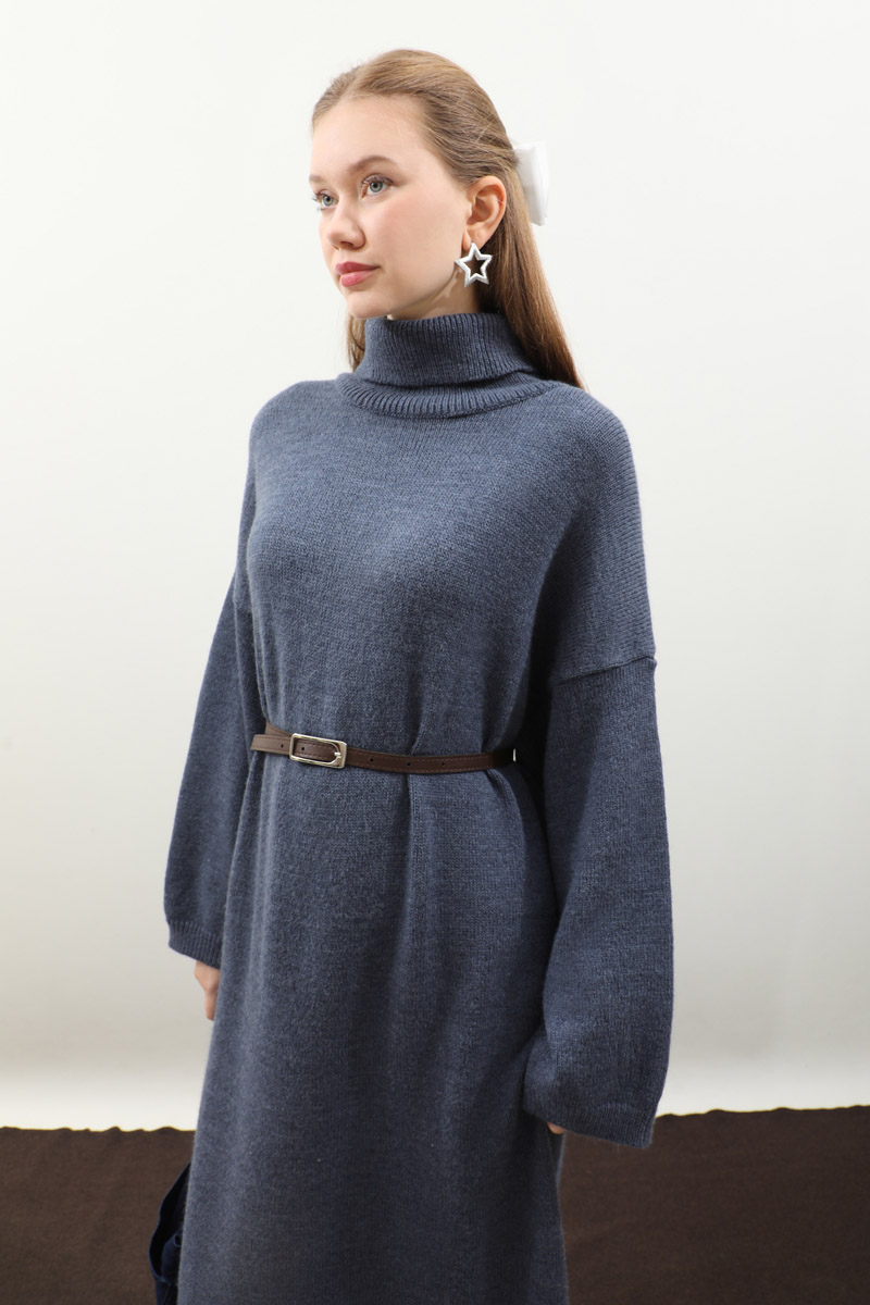 Triko Elbise Vizon. Balıkçı boğazdır, düşük omuzludur, geniş kol ağızlıdır, cepsizdir, kemerlidir., astarsızdır, örme kumaştır iç göstermez. Günlük kullanım ve özel günlerinizde tercih edebilirsiniz.