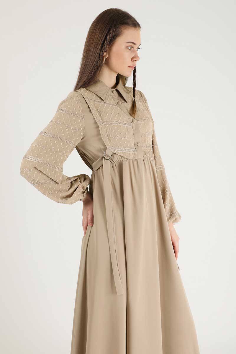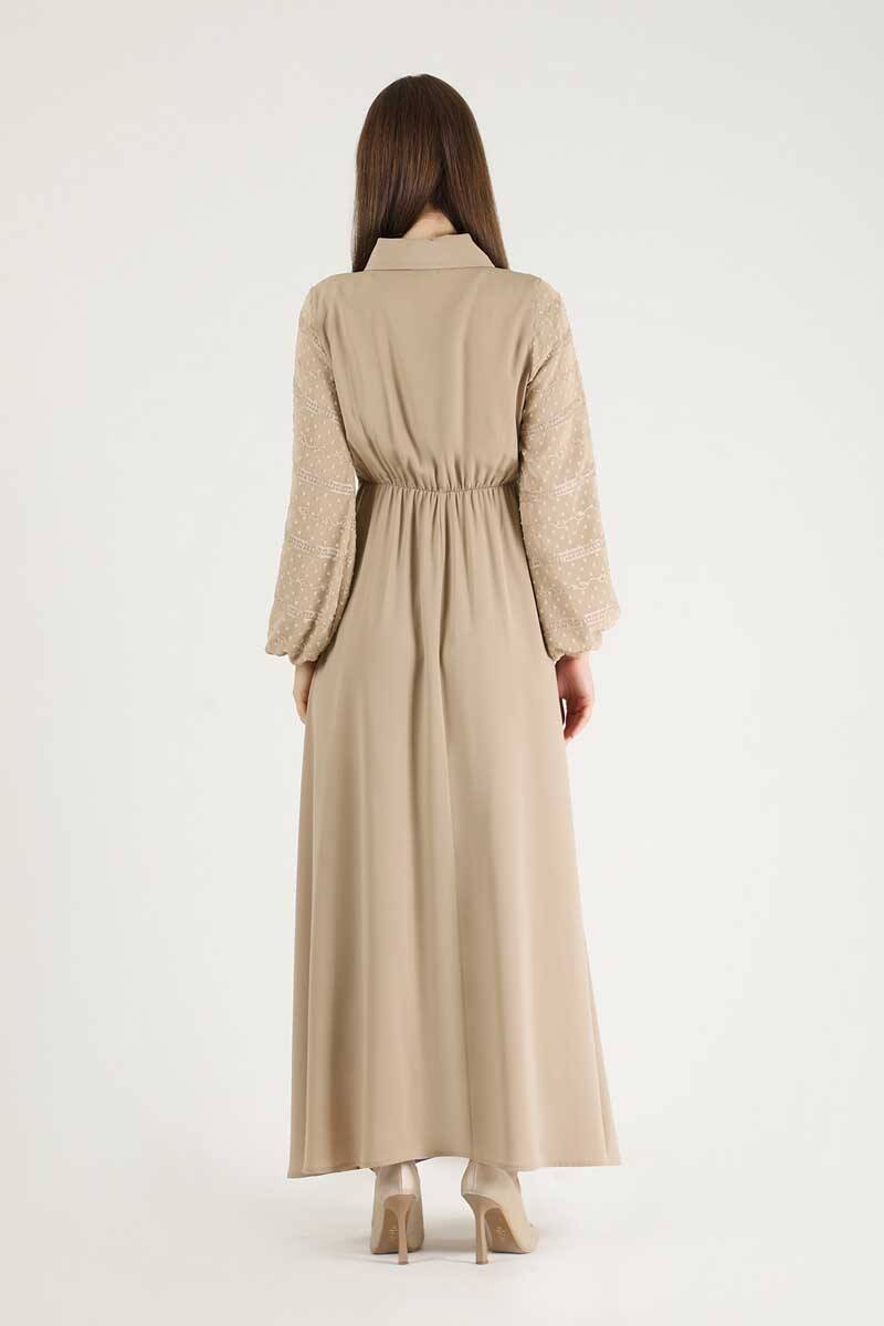 Tül Detaylı Elbise Bej