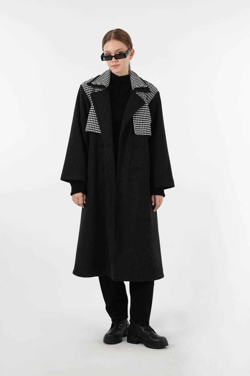 Tüvit Detaylı Kruvaze Kaban Siyah. Çift yakalıdır ve yaka garnilidir.. Önden ve arkadan rüzgarlık detaylıdır. Fleto ceplidir. Kaplama düğmelidir. Garni kuşaklıdır. Astarlıdır. Günlük kullanım ve özel günlerinizde tercih edebilirsiniz.