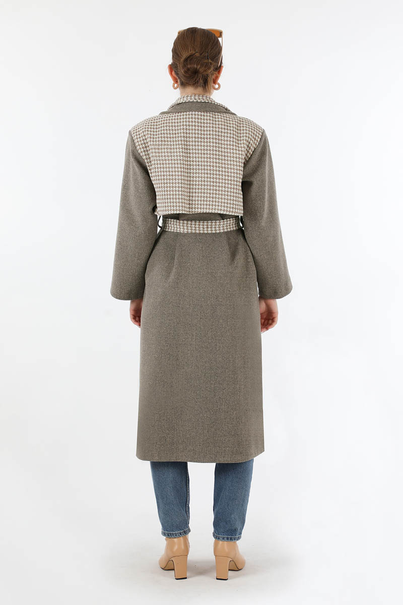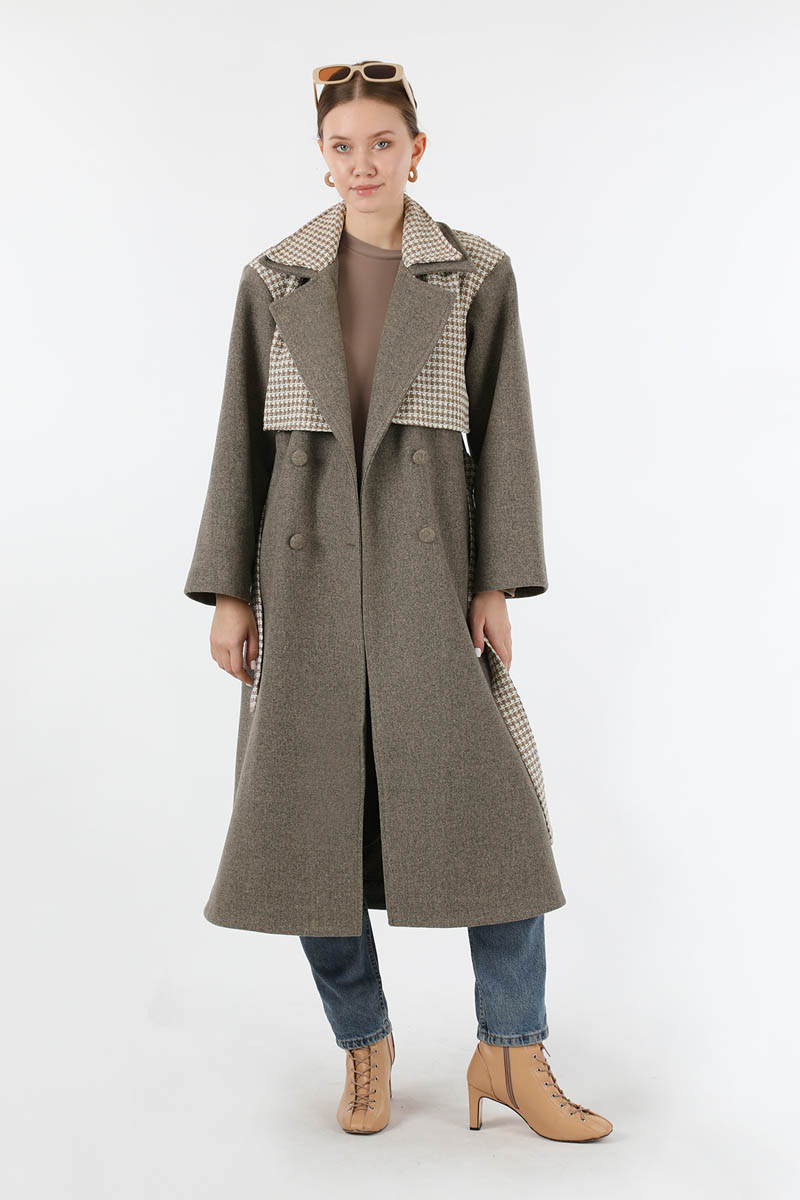 Tüvit Detaylı Kruvaze Kaban Toprak