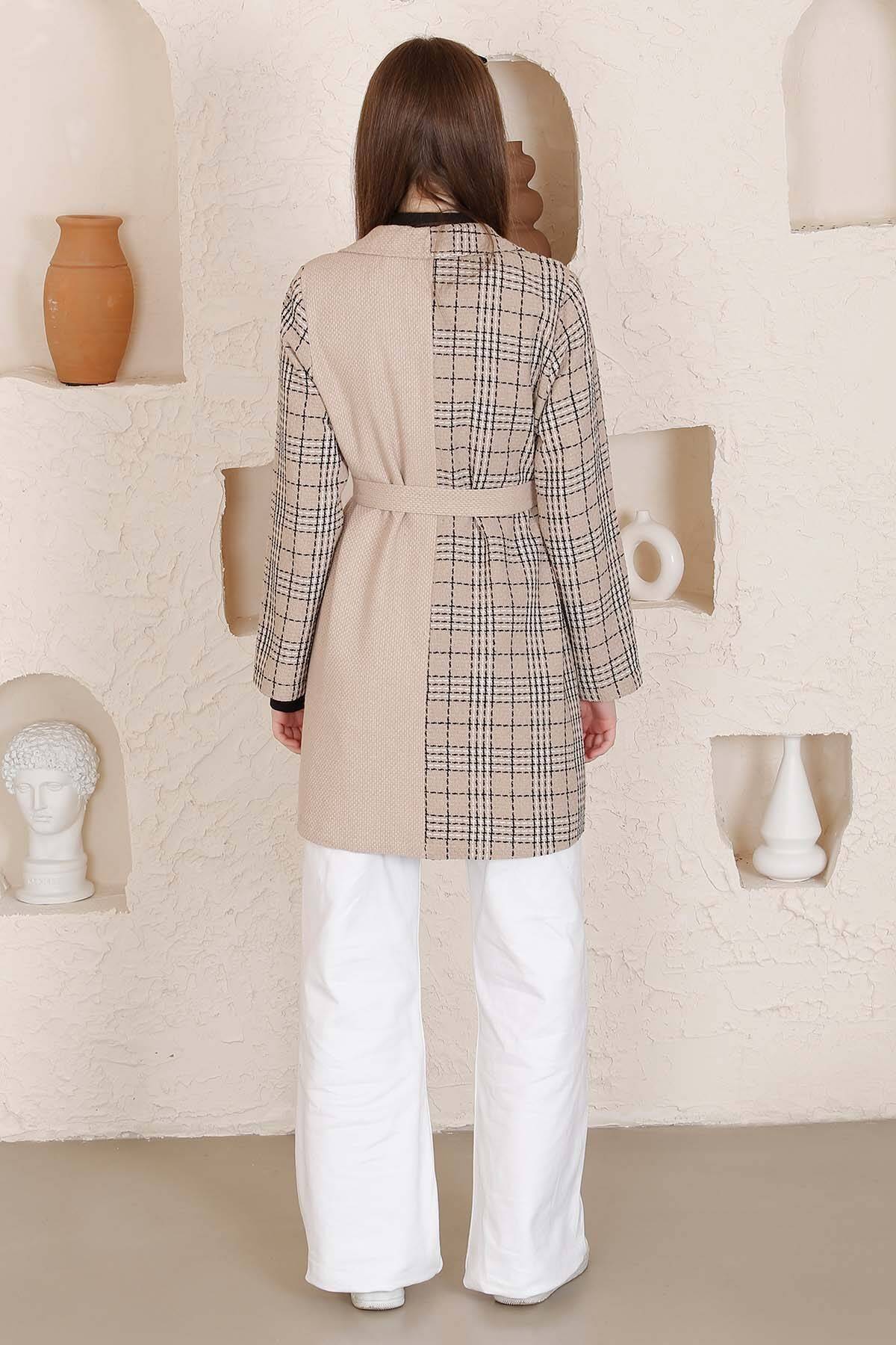 Ekoseli, kemerli, astarlı, cepli.