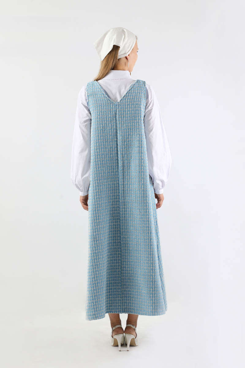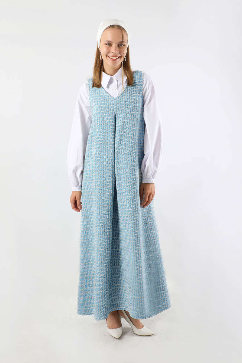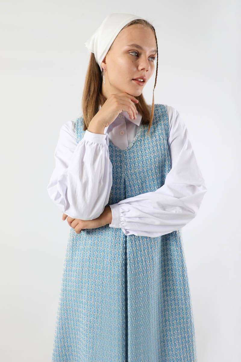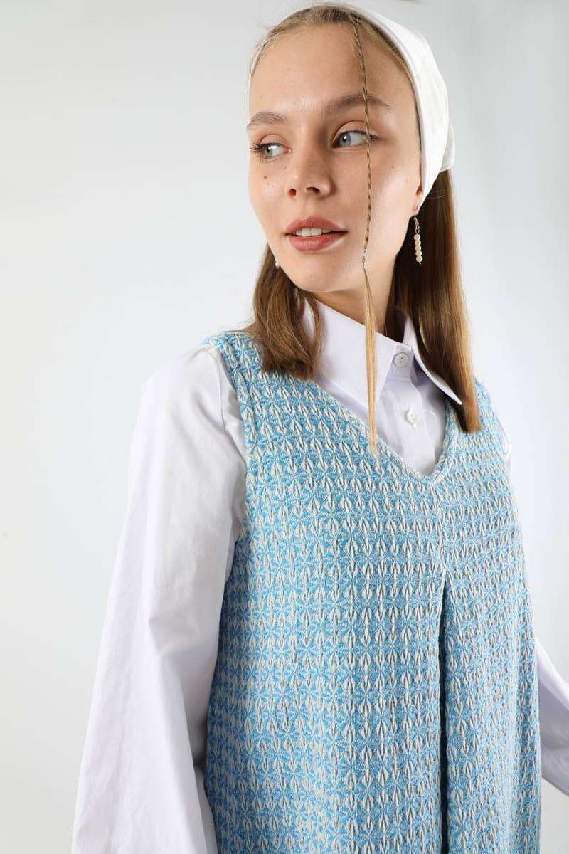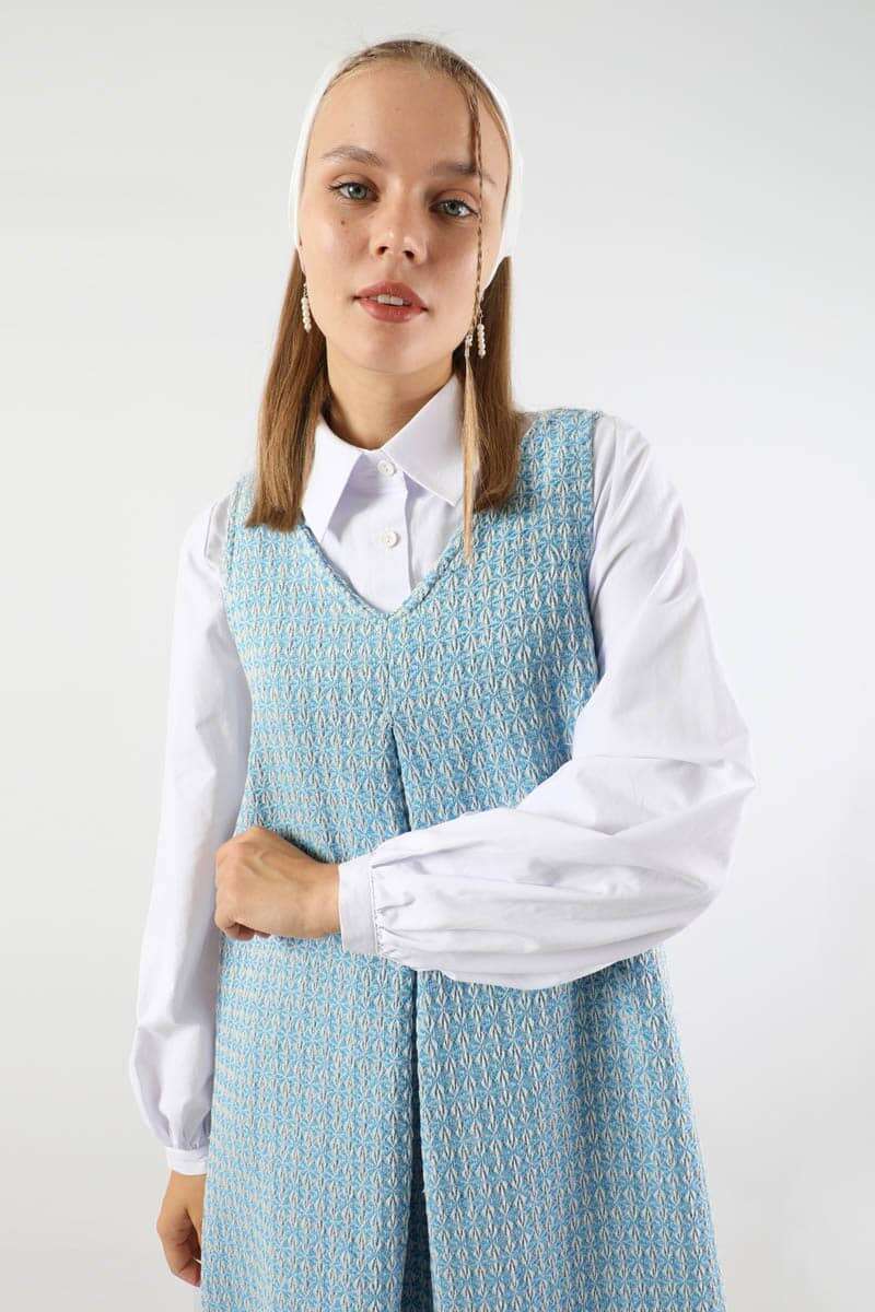 Tüvit Jile Takım Mavi. V yaka detaylı Jile. Önden A pilelidir. Gömlek manşeti ve ön bedenden düğmelidir. Gömlek balon kolludur. Jile astarsızdır. Günlük kullanım ve özel günlerinizde tercih edebilirsiniz.