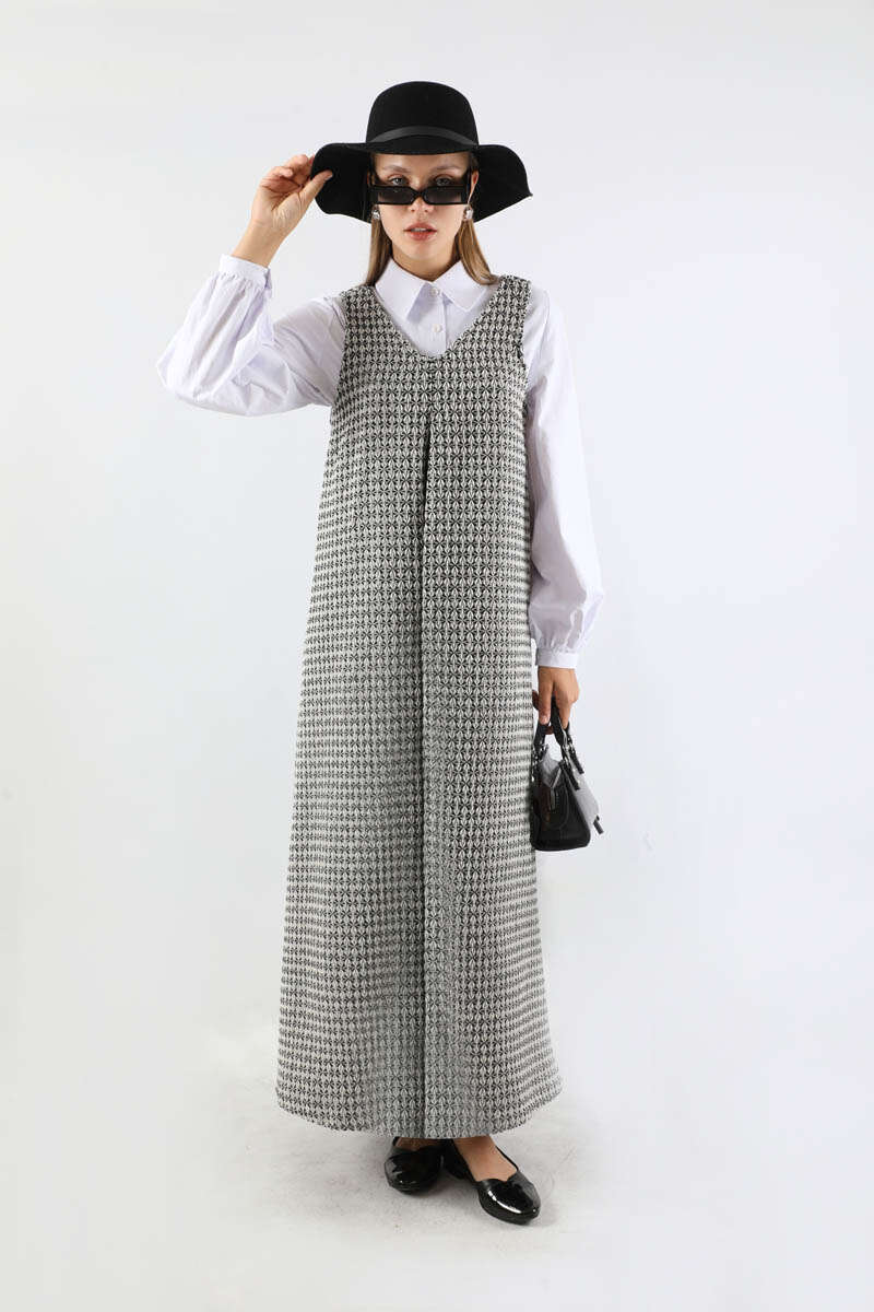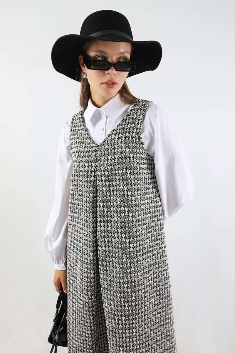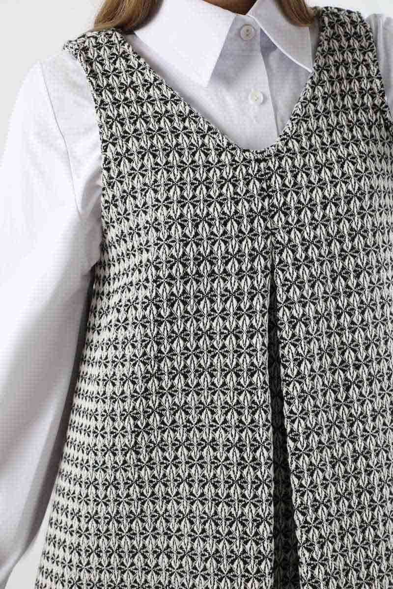 Tüvit Jile Takım Siyah. V yaka detaylı Jile. Önden A pilelidir. Gömlek manşeti ve ön bedenden düğmelidir. Gömlek balon kolludur. Jile astarsızdır. Günlük kullanım ve özel günlerinizde tercih edebilirsiniz.
