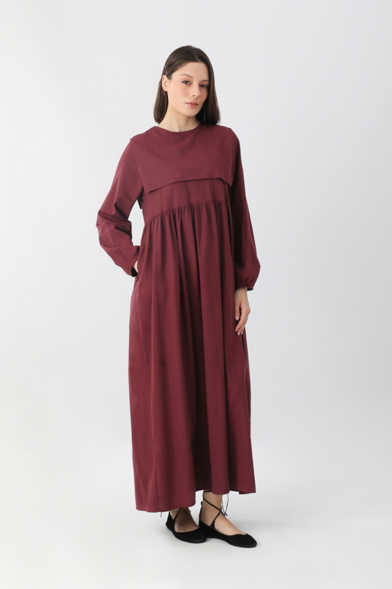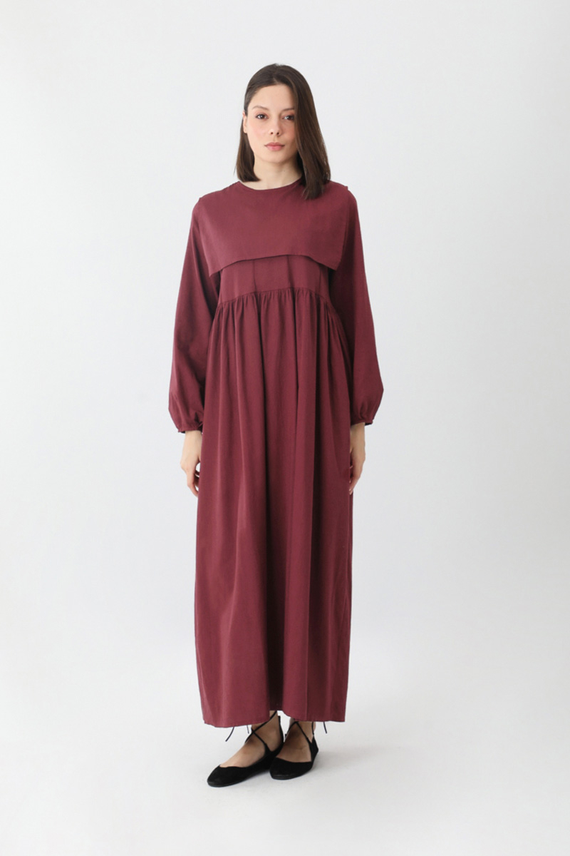 Tüzün Aller Detaylı Elbise Bordo. Bisiklet yakadır, üstü aller havalı parçalı olup nervür detaylıdır, beli robalı ve büzgülüdür, yandan ceplidir, kol ucu pilelidir, arkadan gizli fermuarlıdır, Kuşaksızdır. astarsızdır, Günlük kullanım ve özel günlerinizde tercih edebilirsiniz.