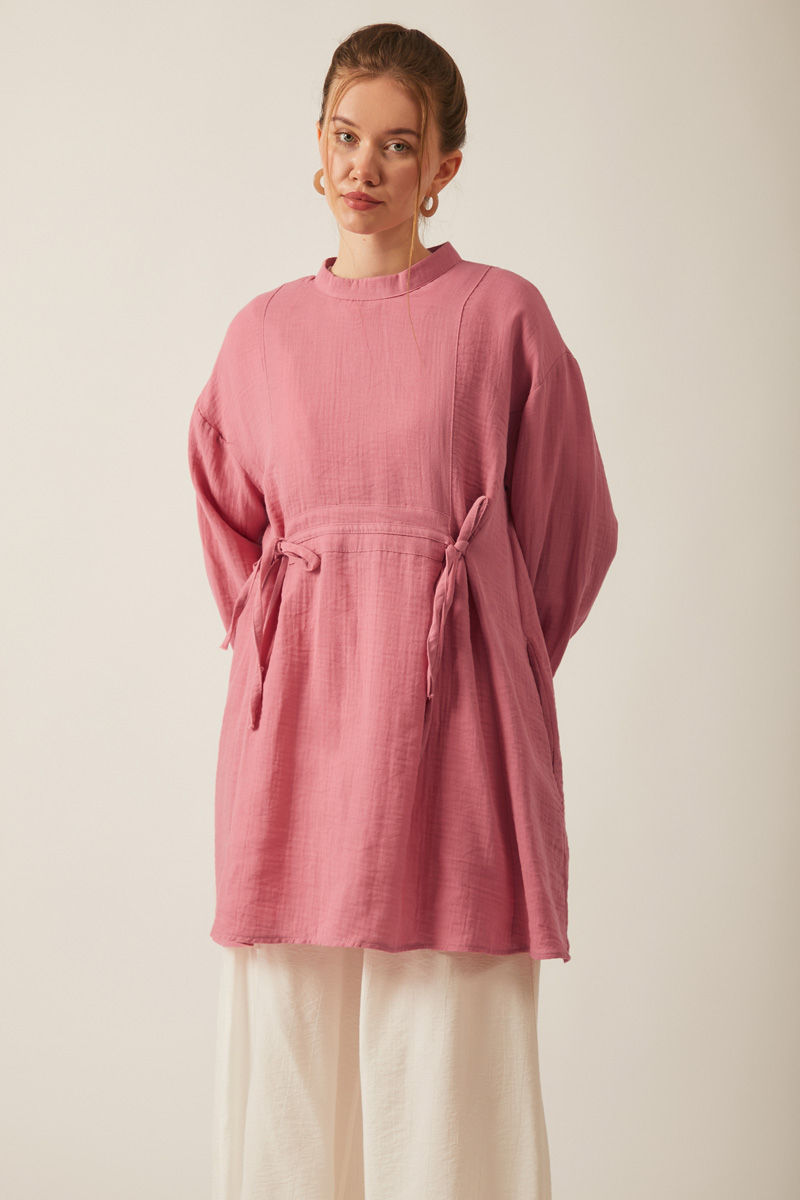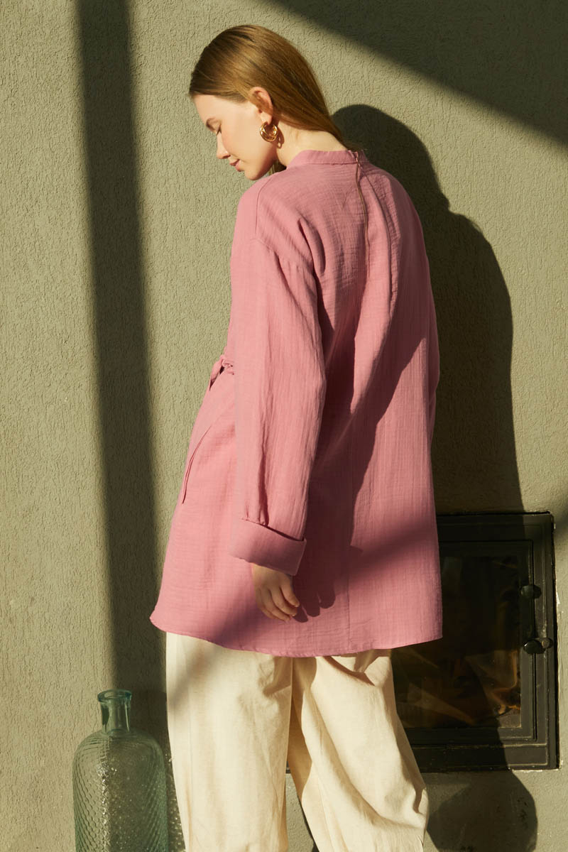 letting you feel the freshness of natural textures with this slub linen dress. It merges an authentic look with a modern design. Its loose fit provides all-day comfort and freedom of movement, while the self-fabric belt at the waist allows you to create a graceful silhouette as desired.