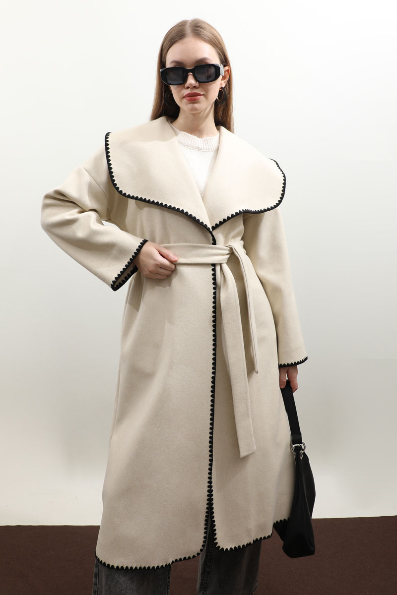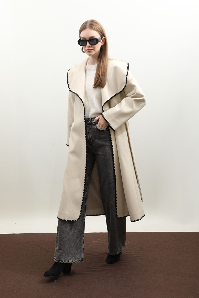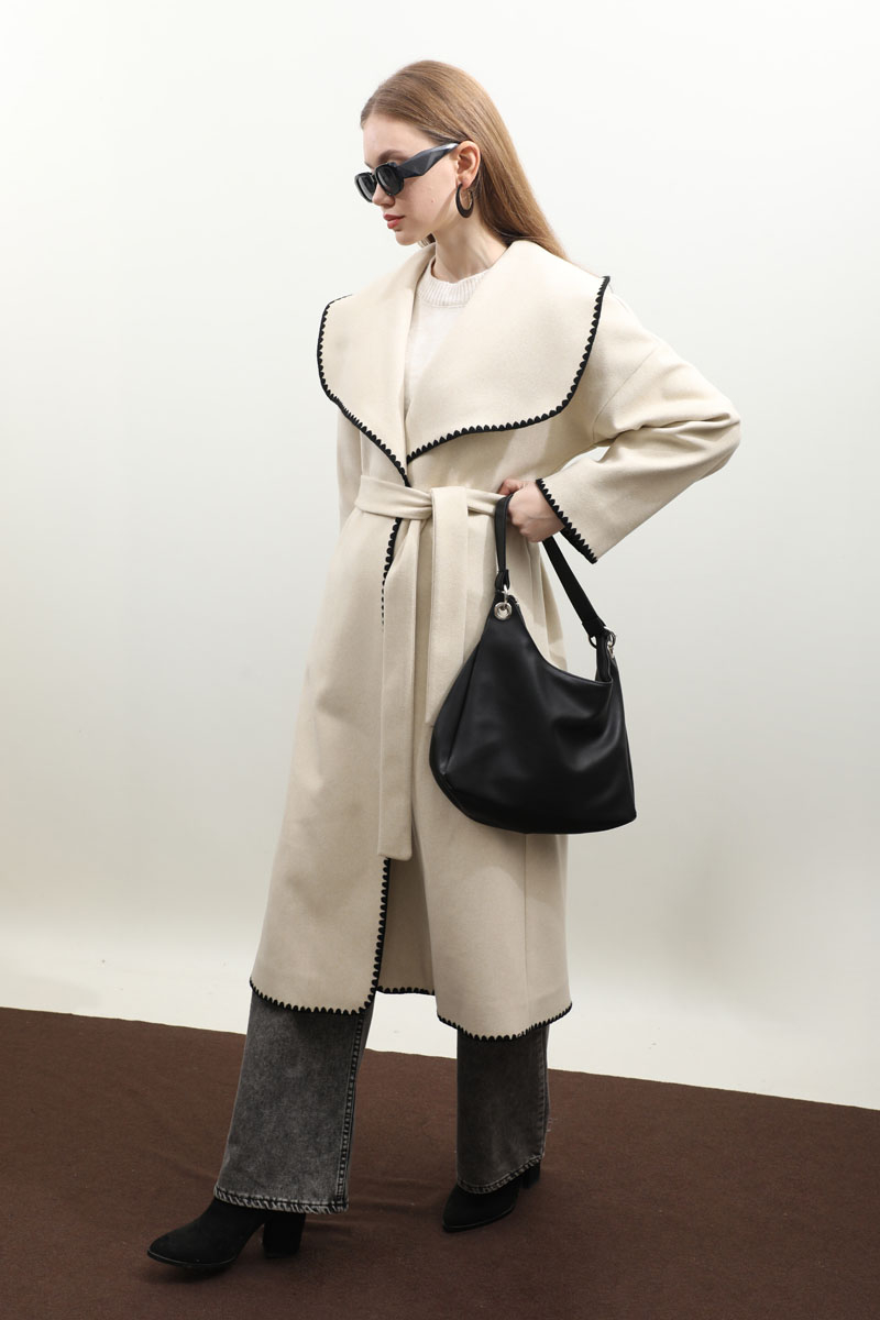 Uzun Çoban Kaban Siyah. Geniş şal yaka, düşük omuzlu, karyuka detaylı, kuşaklı, düğmesiz, astarlı, ceplidir. Kış mevsimi için uygundur.