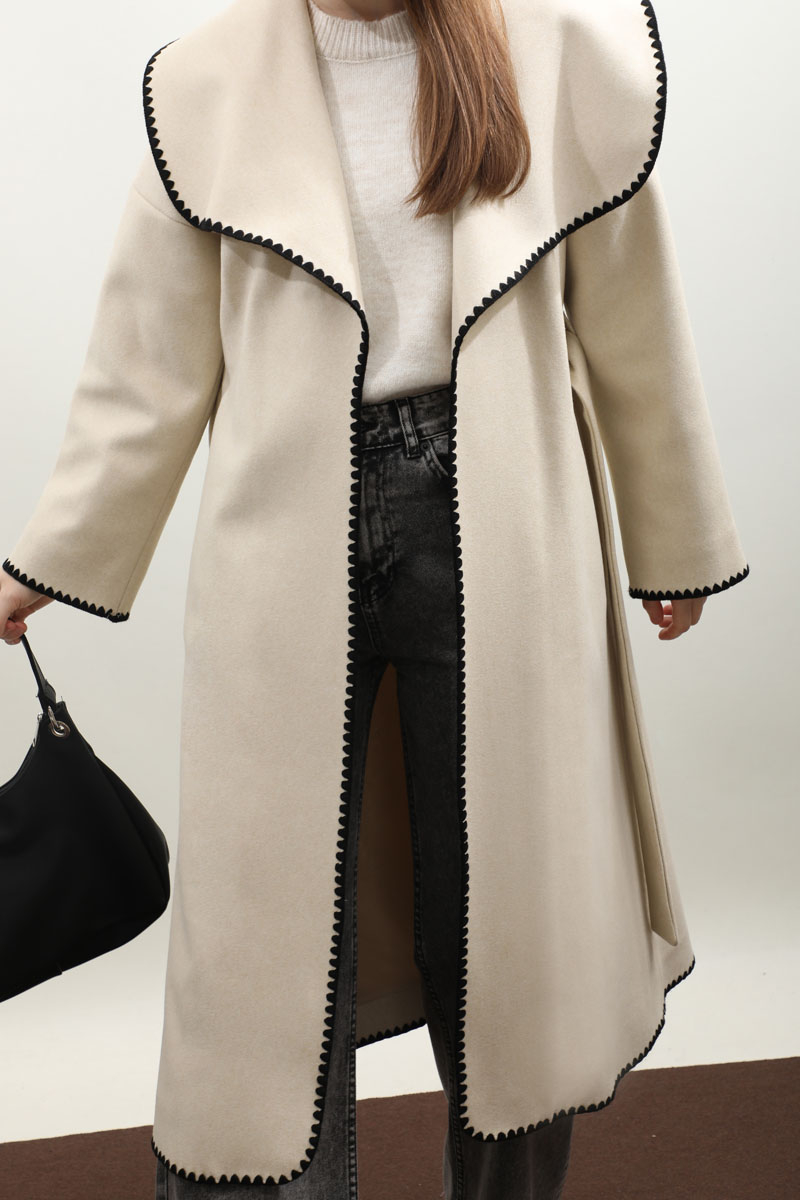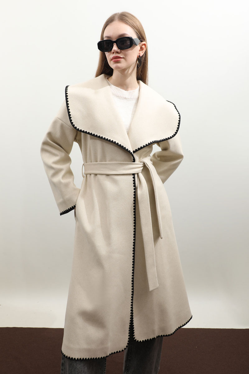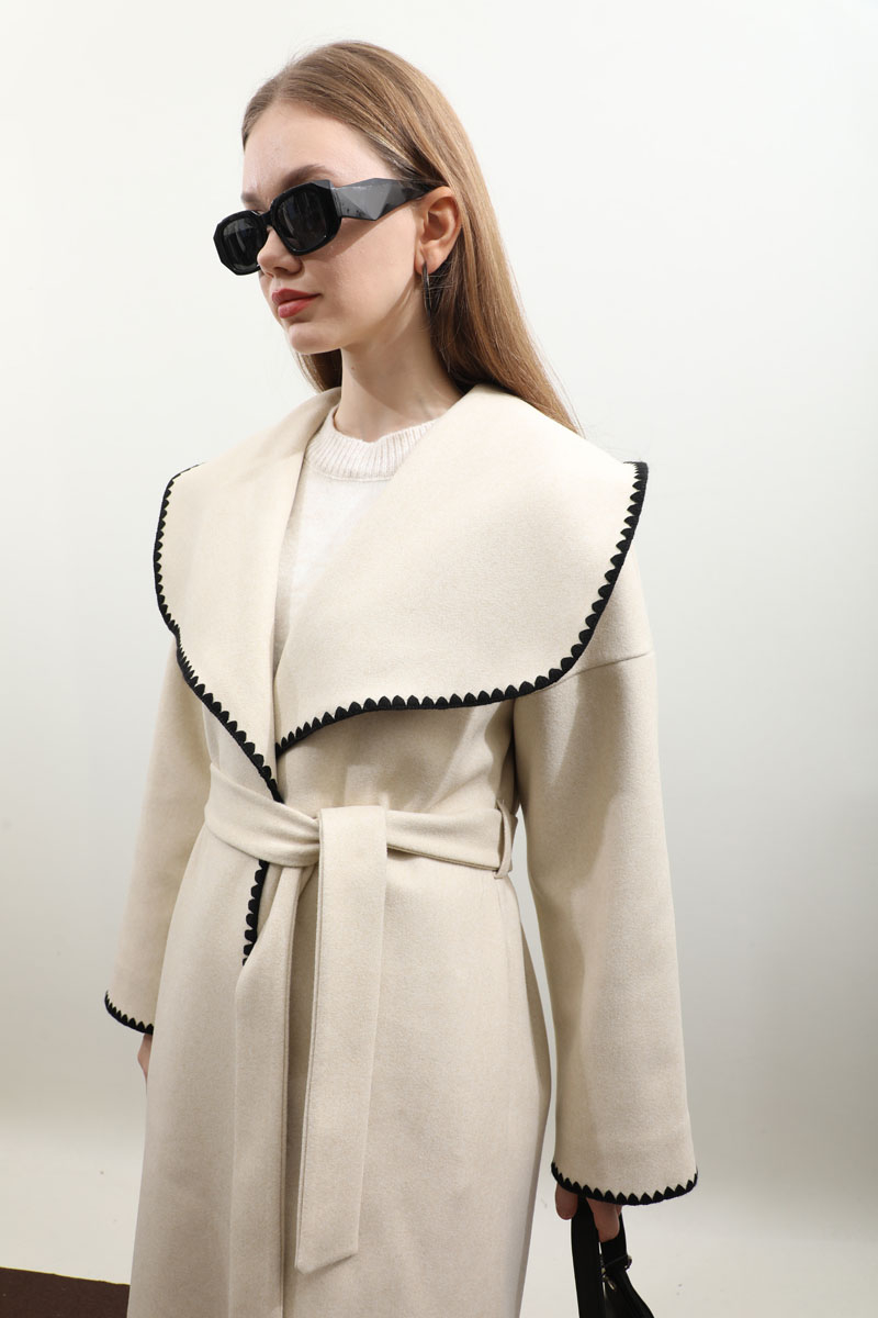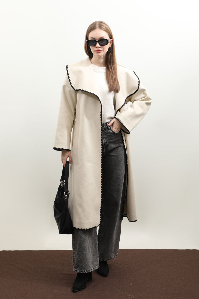 Uzun Çoban Kaban Siyah. Geniş şal yaka, düşük omuzlu, karyuka detaylı, kuşaklı, düğmesiz, astarlı, ceplidir. Kış mevsimi için uygundur.