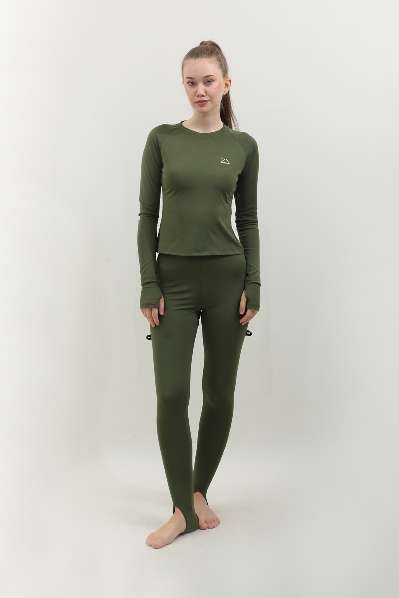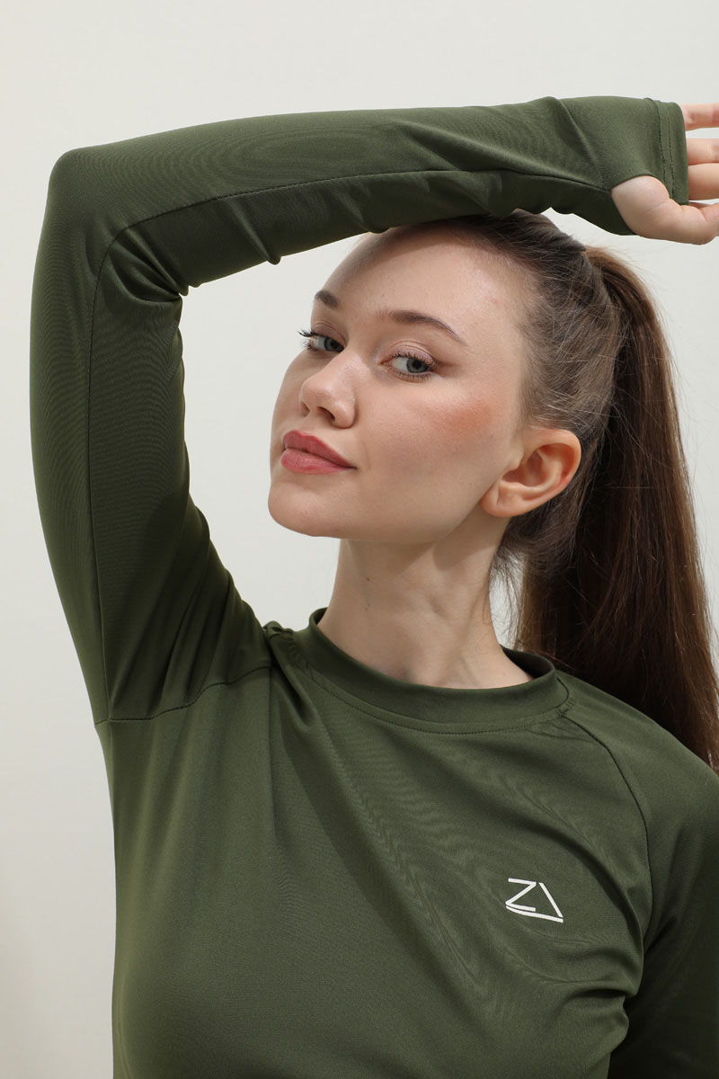 Uzun Kollu Mayo Body Haki. Bisiklet yakalıdır, bilek kısmı parmak geçirme detaylıdır,esnek kumaşa sahiptir,deniz ve havuzda kullanıma uygundur.
