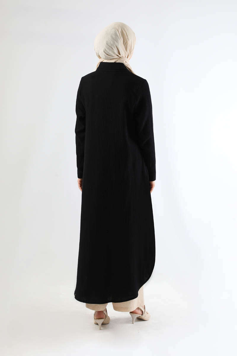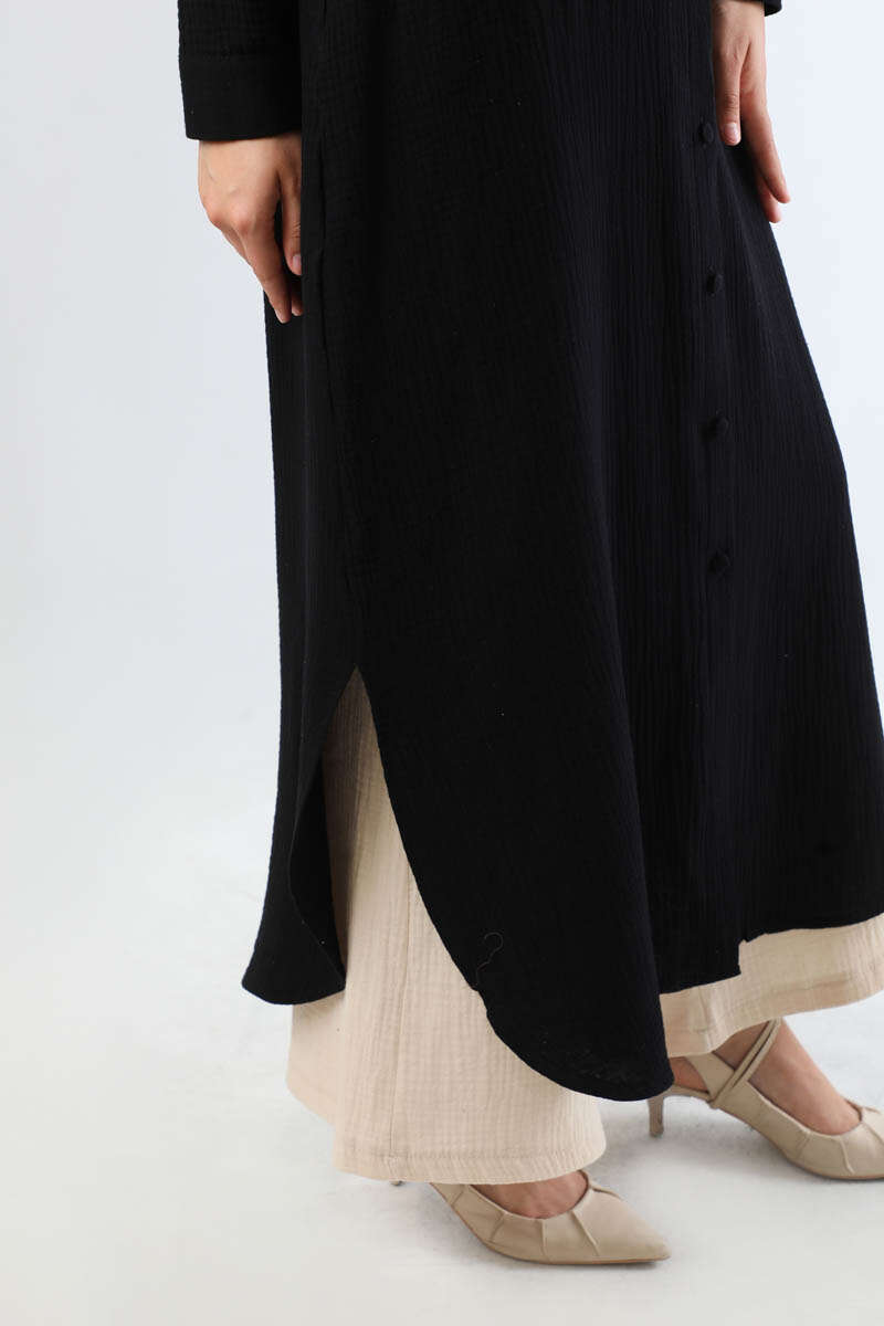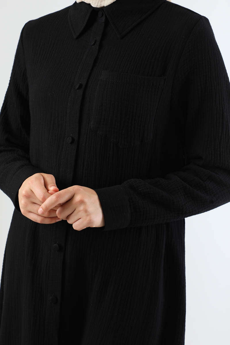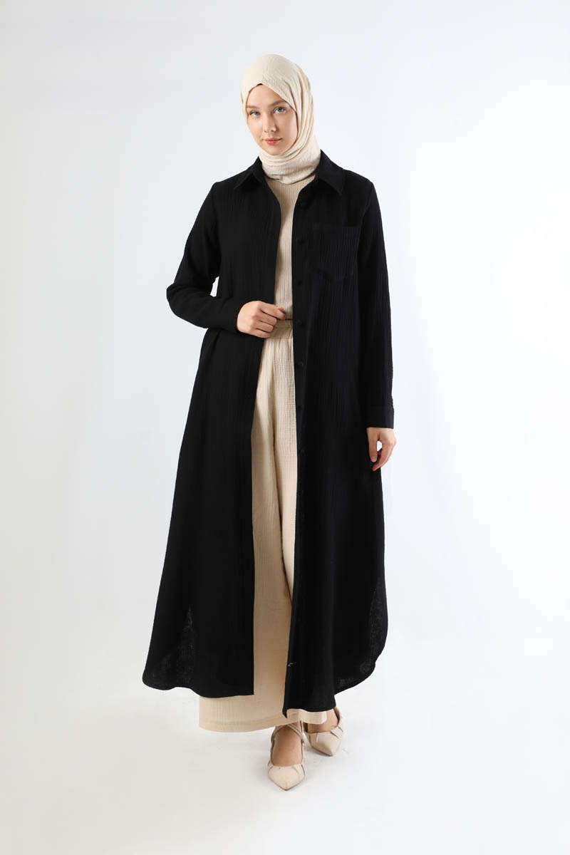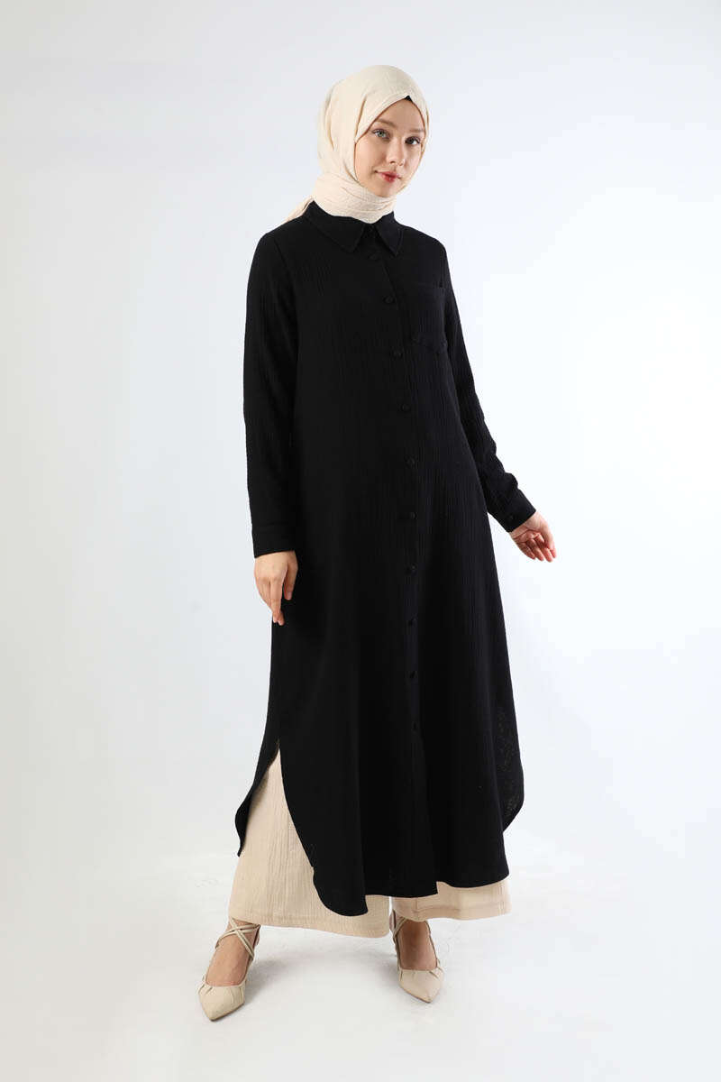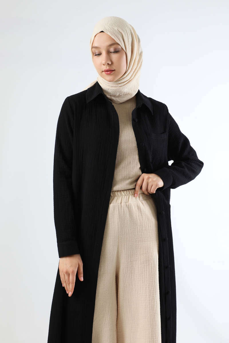 Uzun Muslin Gömlek Takım Siyah