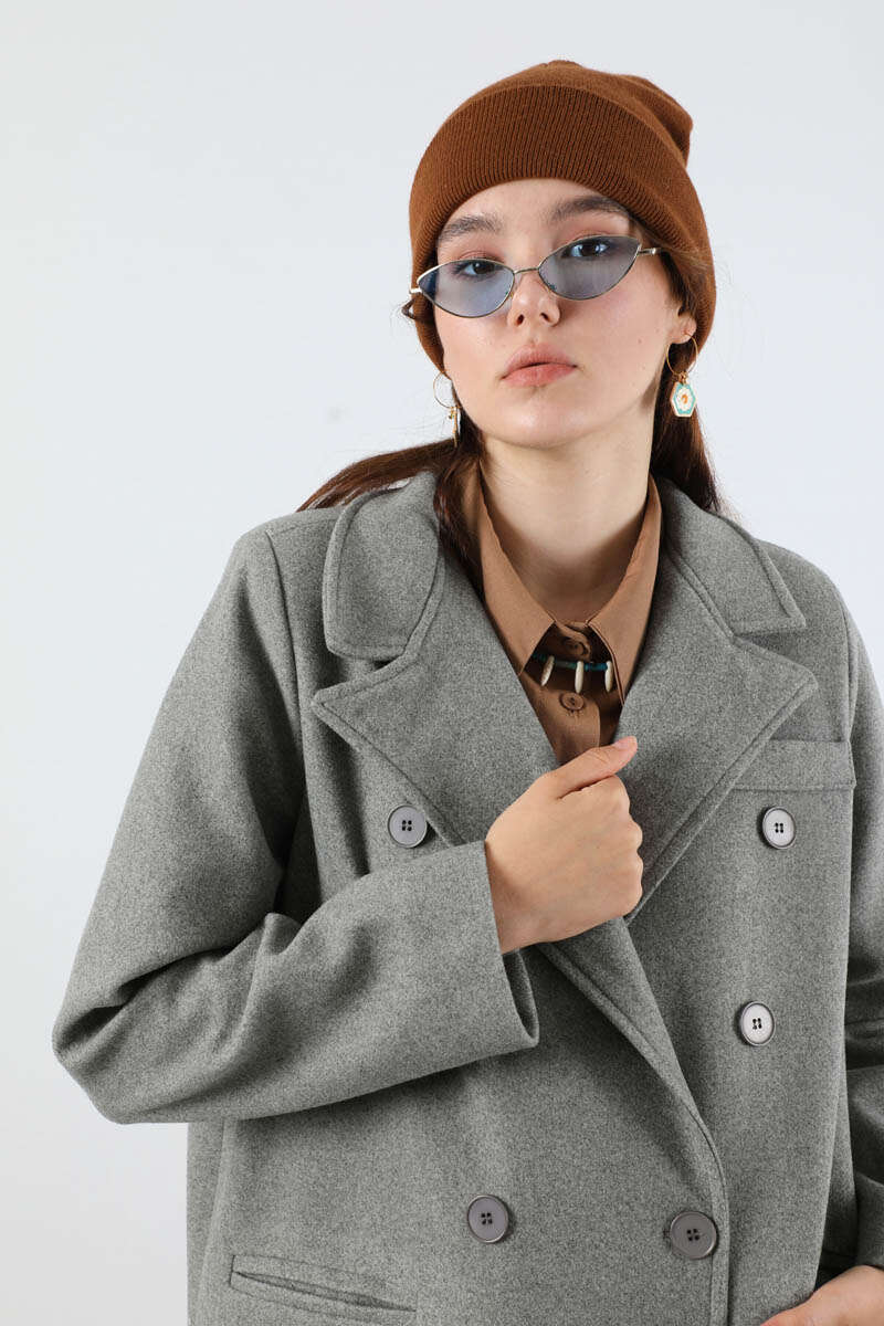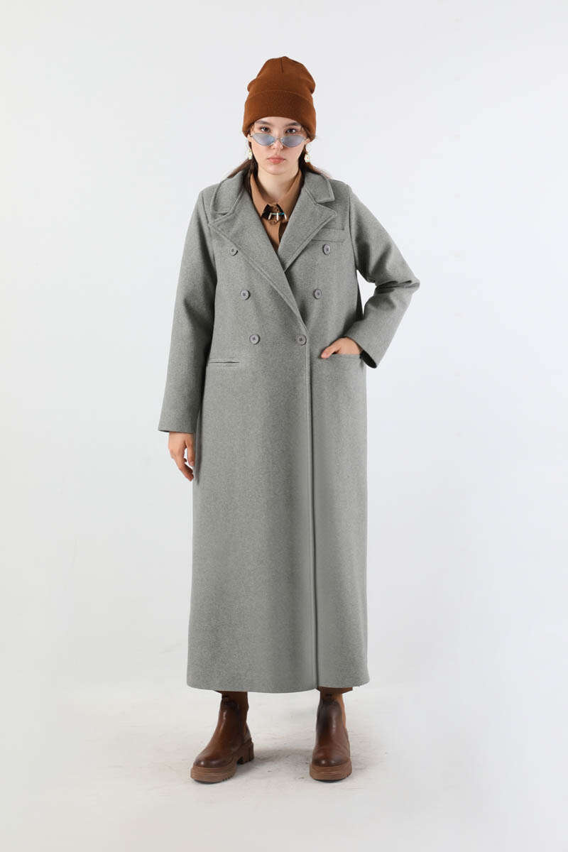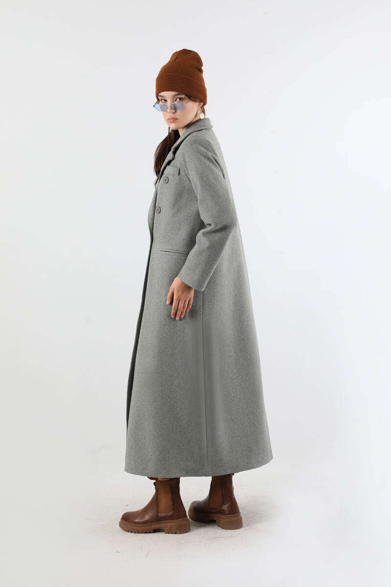 Uzun Oversize Kaşe Kaban Gri