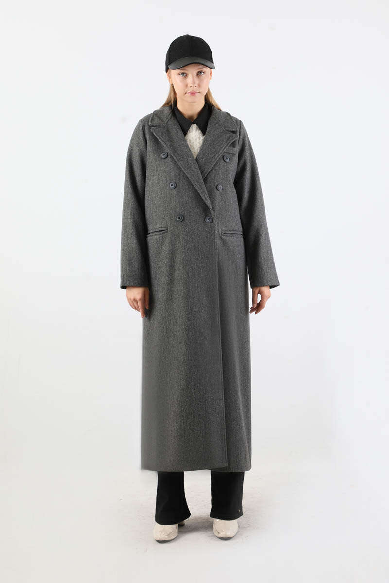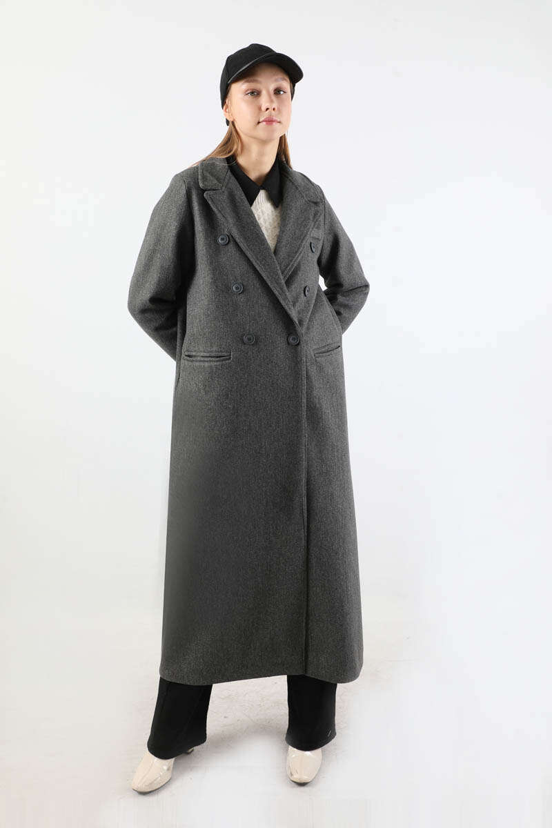 Uzun Oversize Kaşe Kaban Antrasit