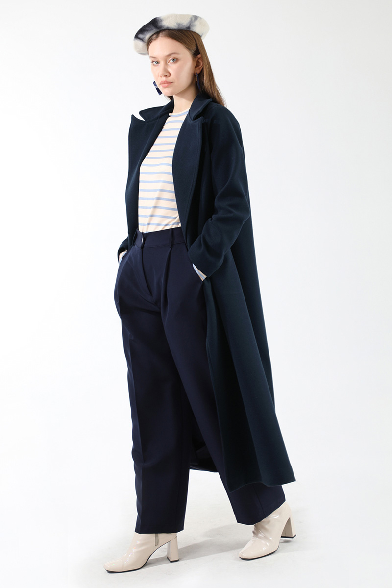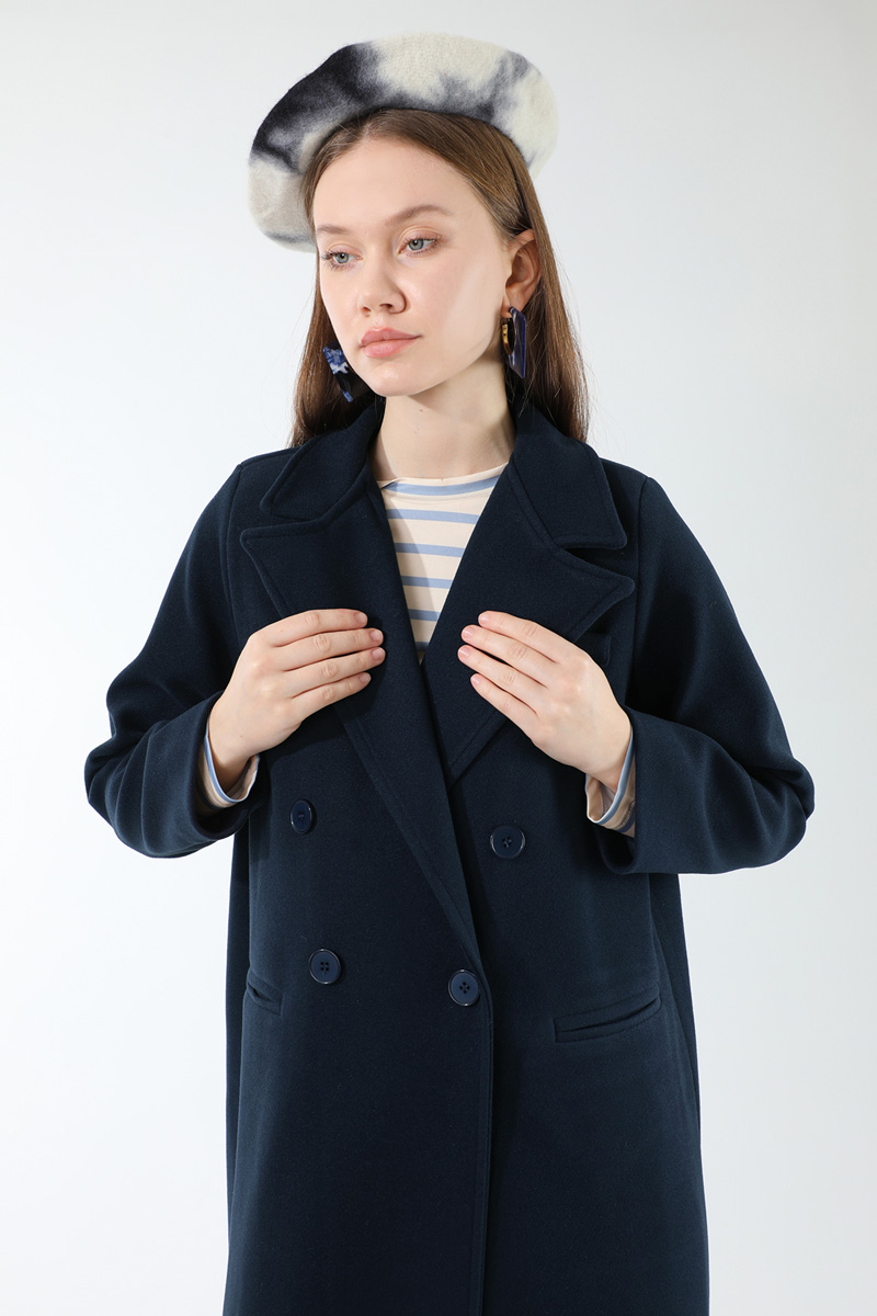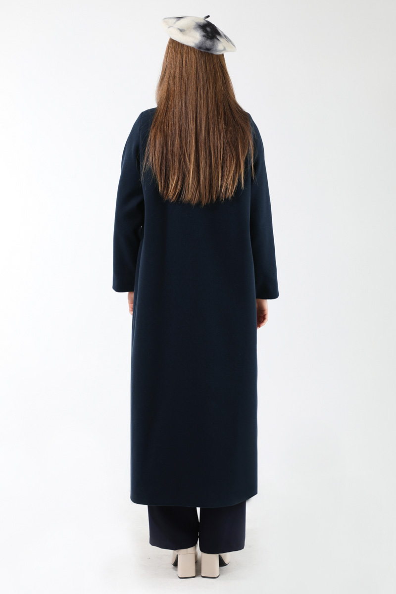 Uzun Oversize Kaşe Kaban Lacivert