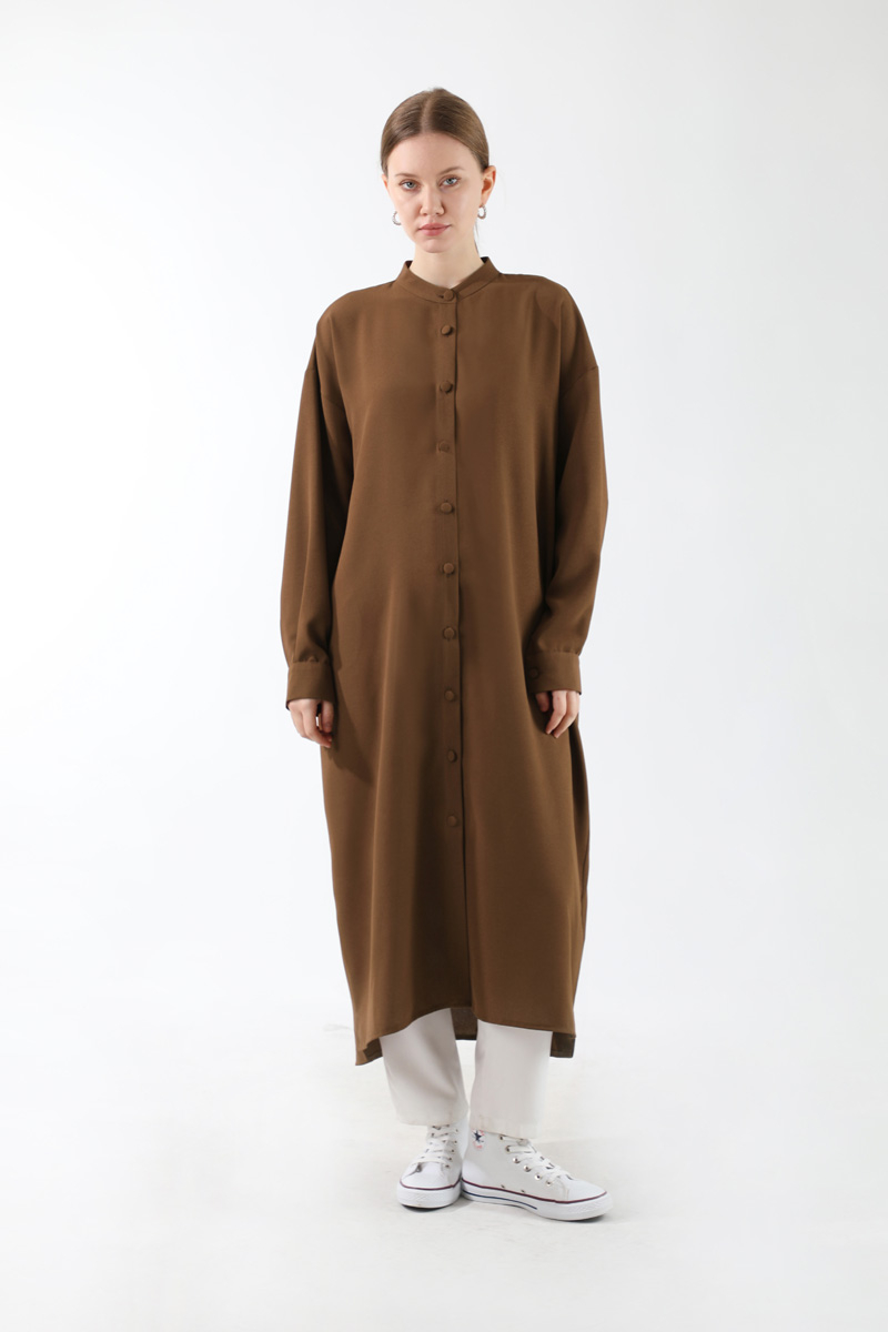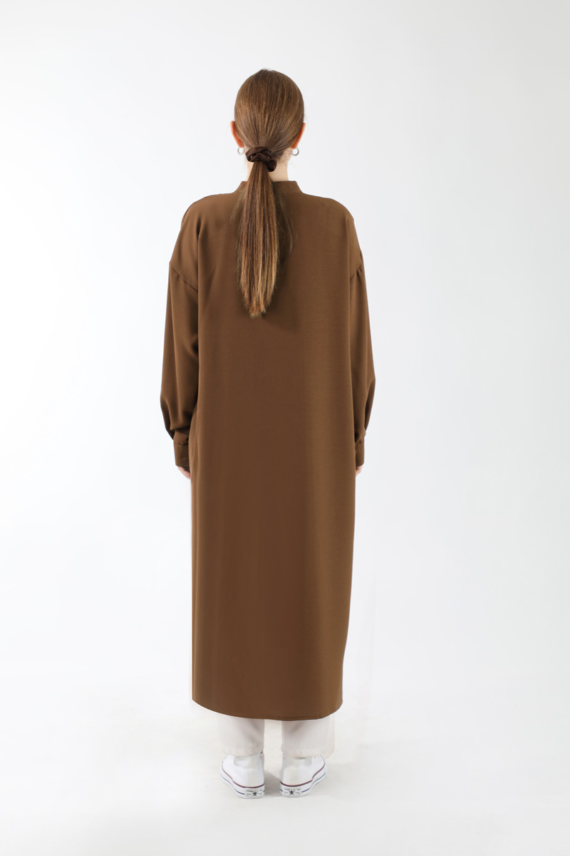 Uzun Oversize Tunik Kahverengi. Hakim yakalıdır. Önden düğmelidir. arka önden uzun detaylıdır. Yandan yırtmaçlıdır. Düşük omuzludur. Manşeti düğmelidir. Yandan ceplidir. Günlük kullanım ve özel günlerinizde tercih edebilirsiniz.