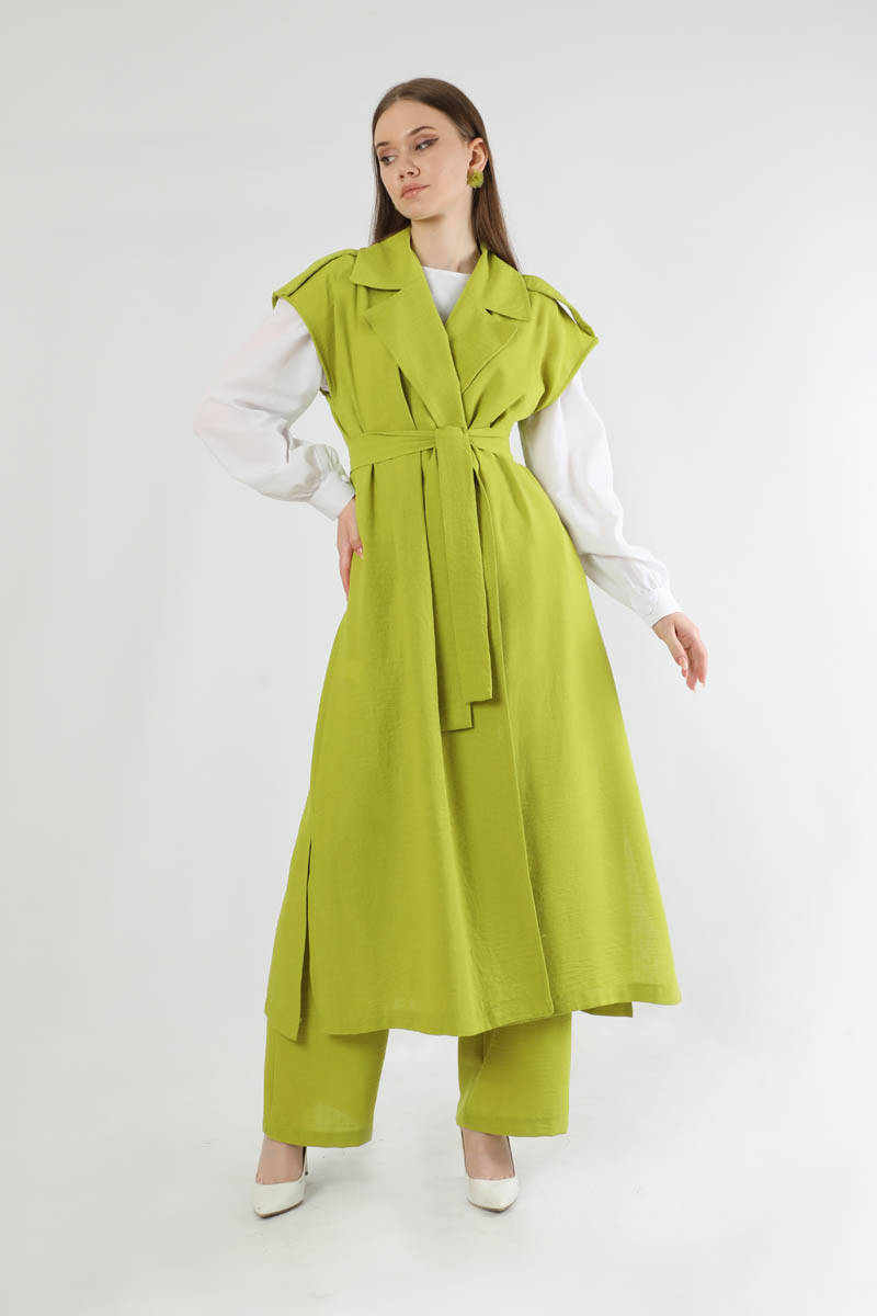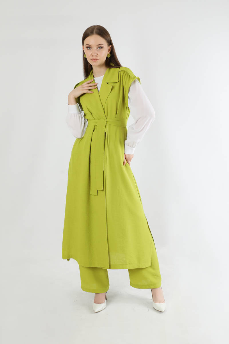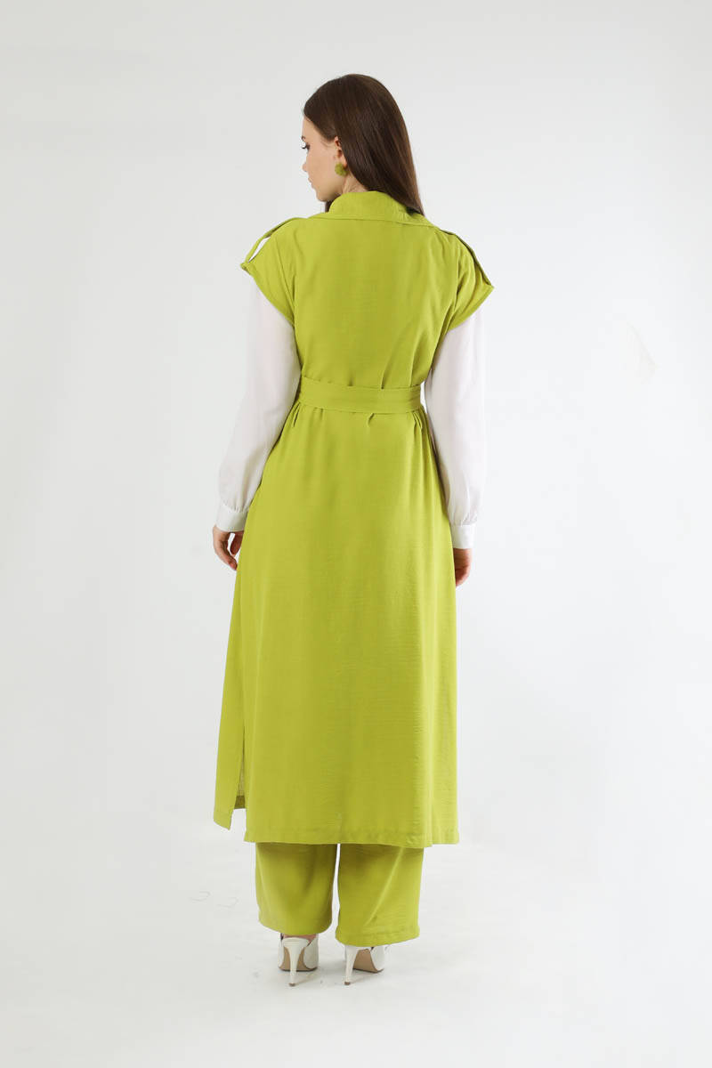 Uzun Yelekli Üçlü Takım Yağ Yeşili