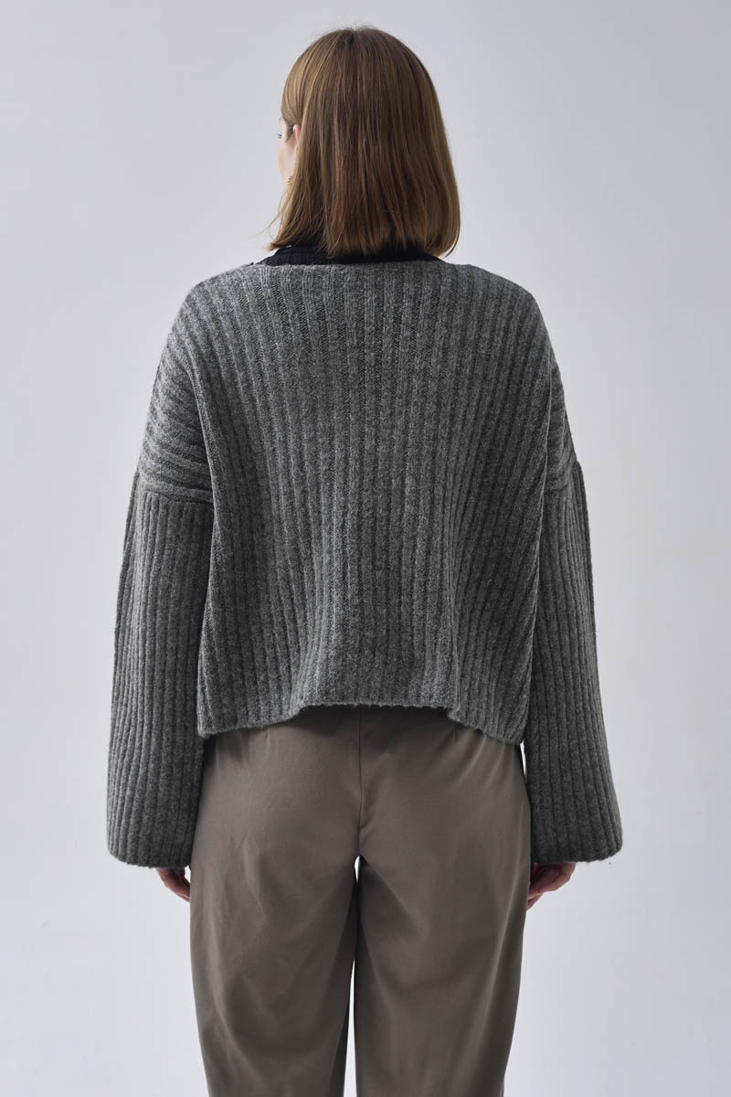 With its modern cut and relaxed style, this crop sweater adds a chic touch to everyday outfits. The thick ribbed texture keeps you warm on cold days, while the V-neck detail offers a comfortable and stylish wear. Thanks to its short length, it pairs perfectly with high-waisted trousers and skirts for an effortlessly balanced look.