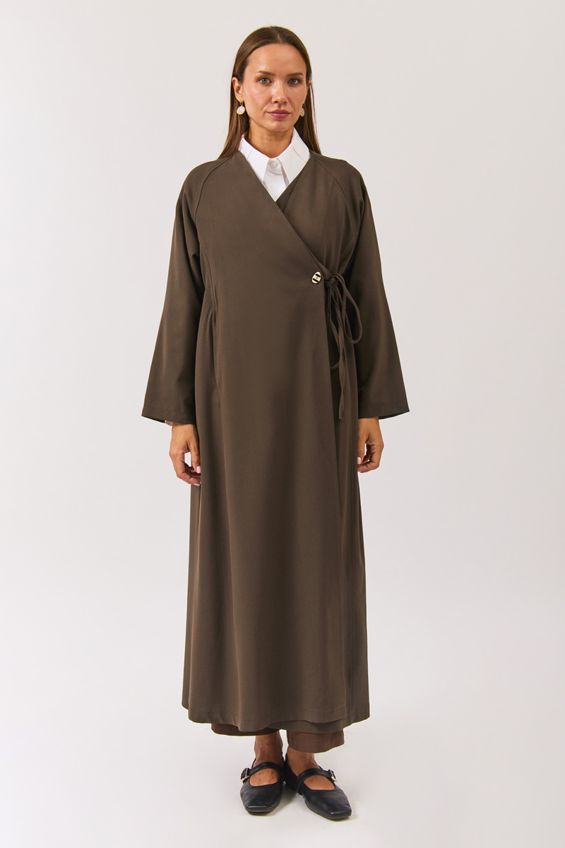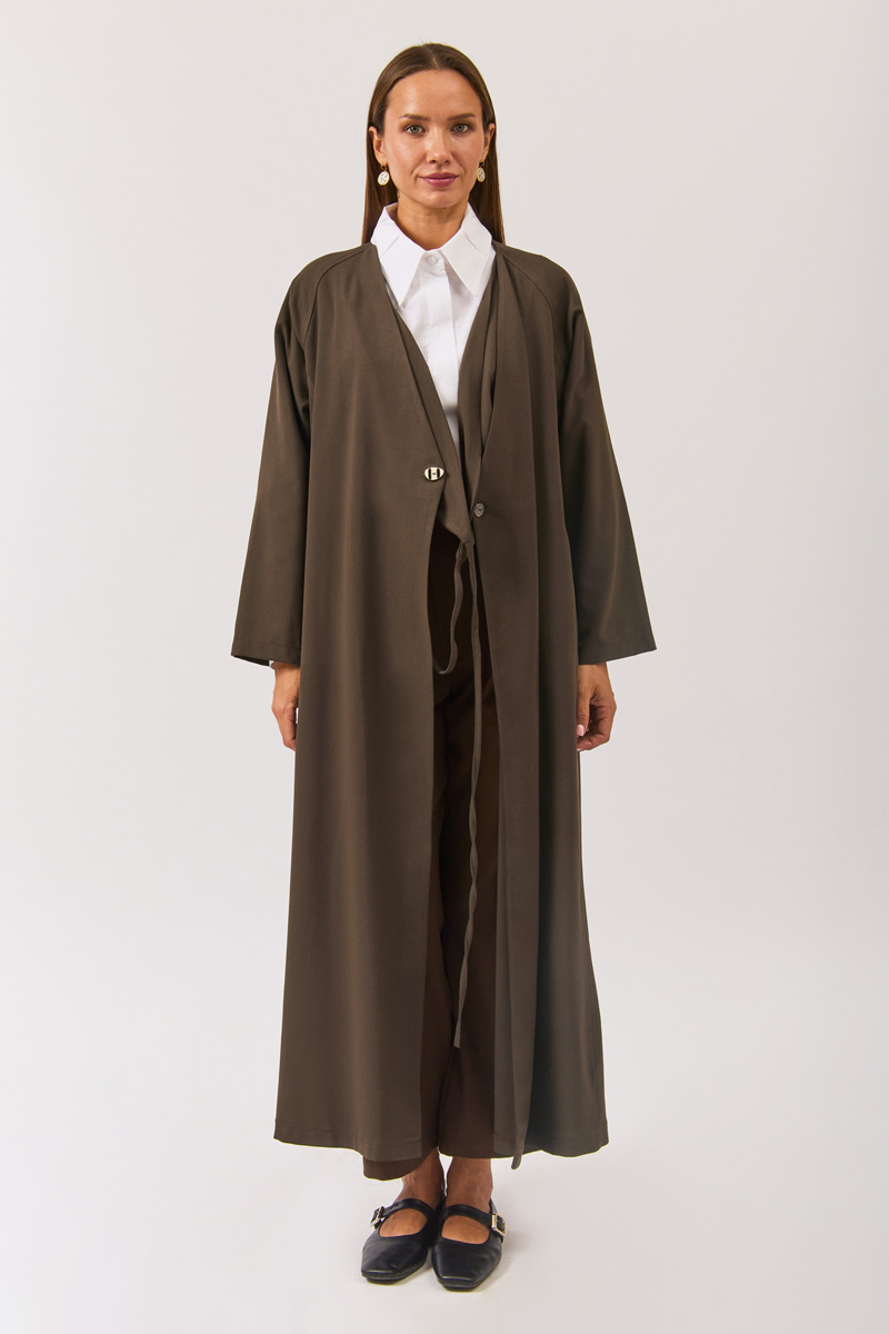 V Yaka Bağlamalı Abaya Kahverengi