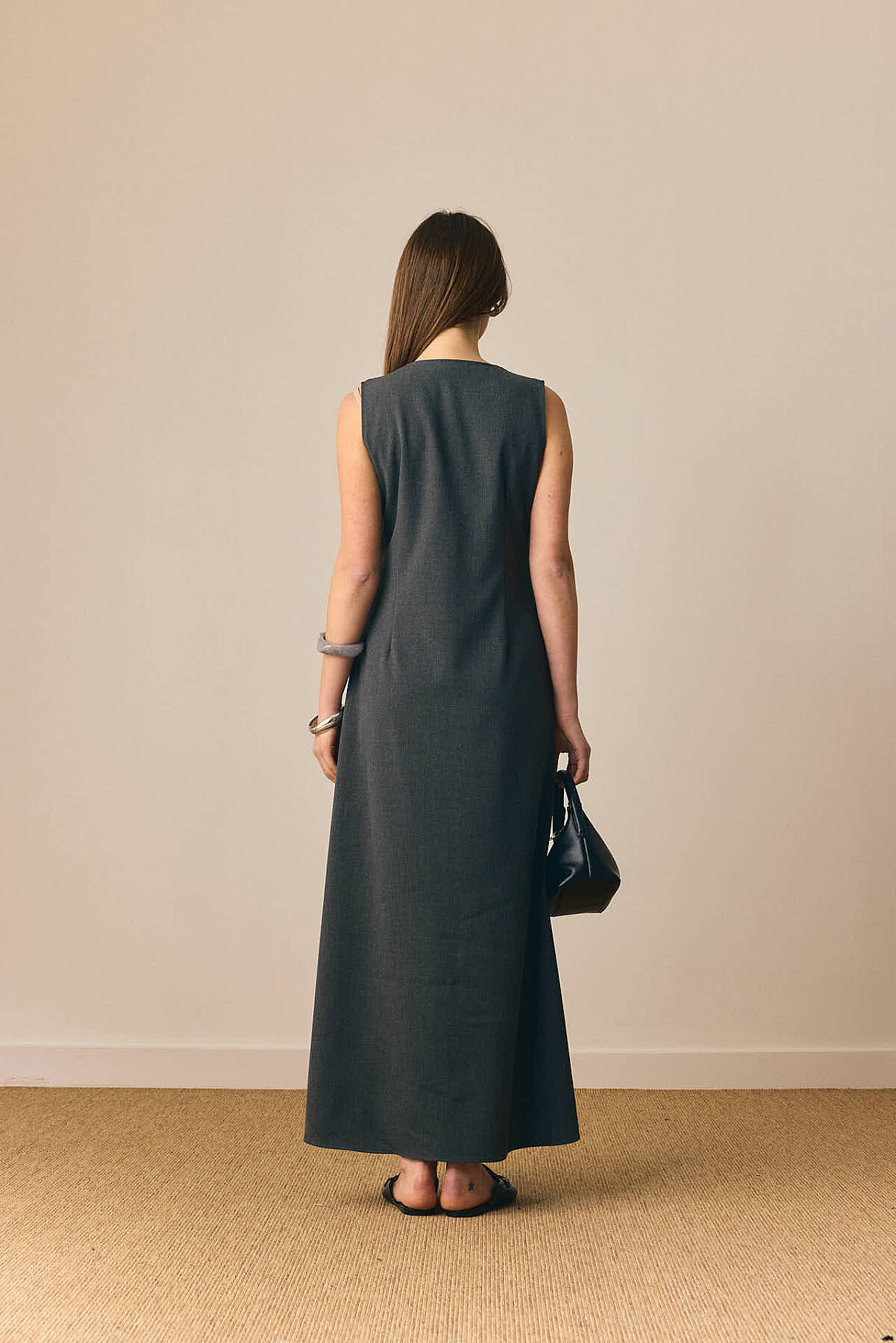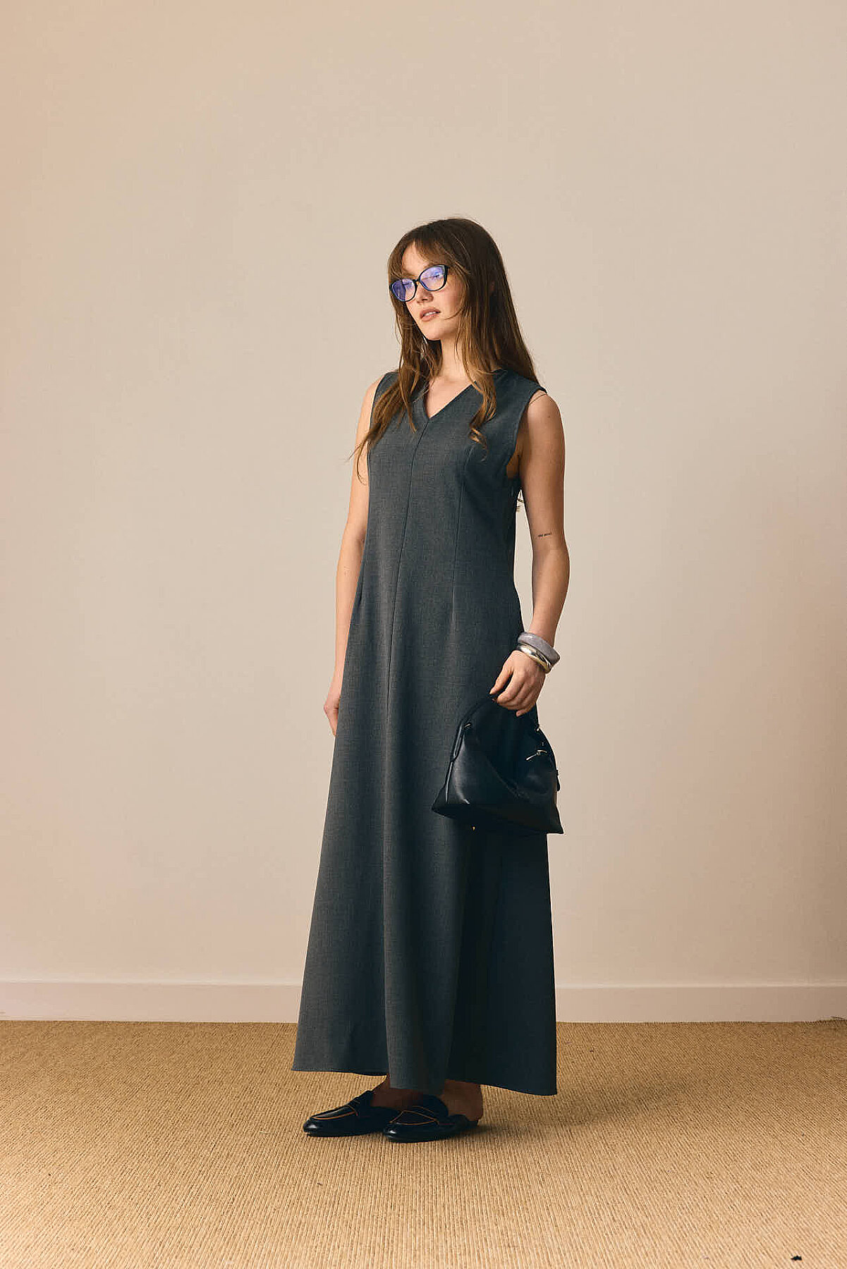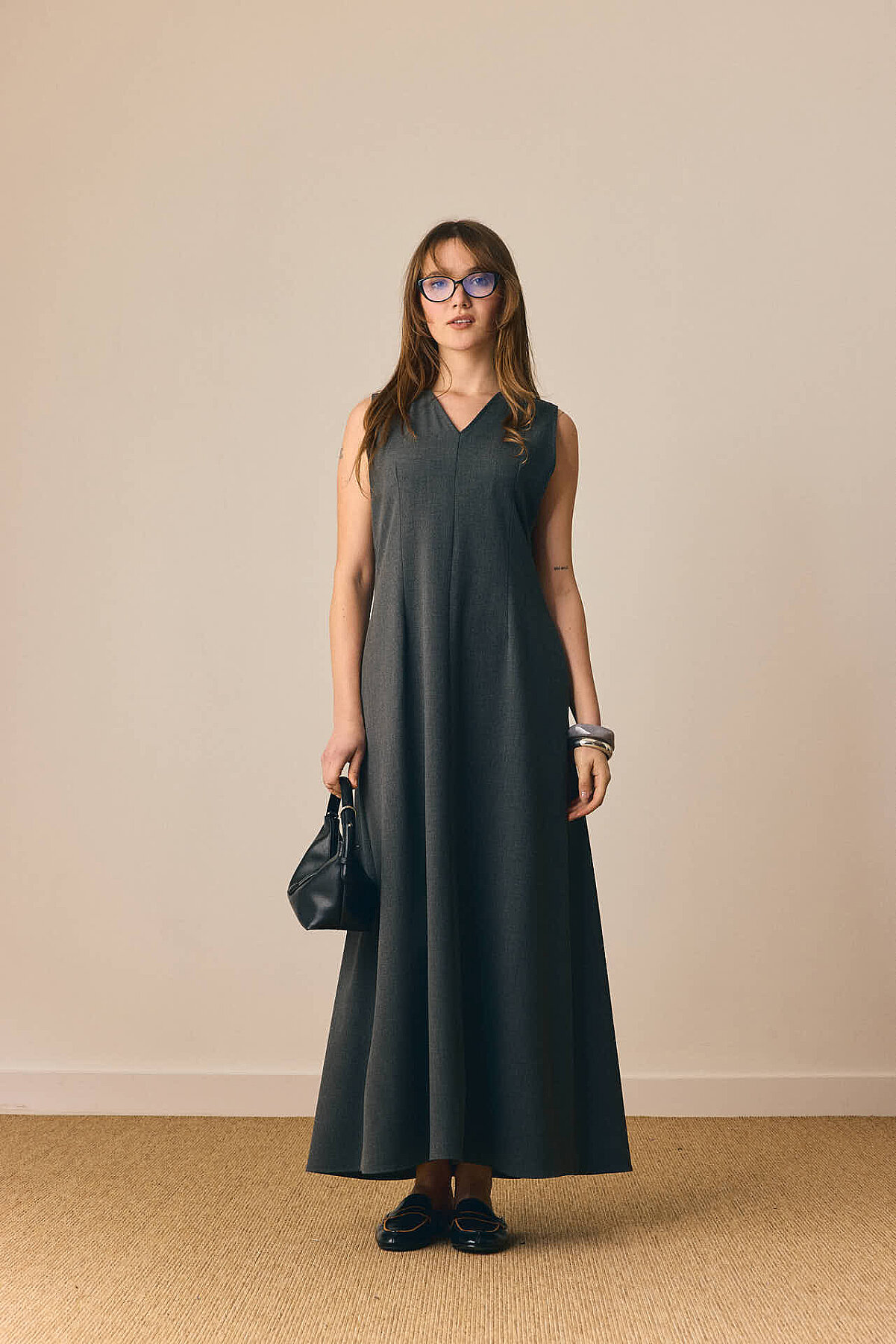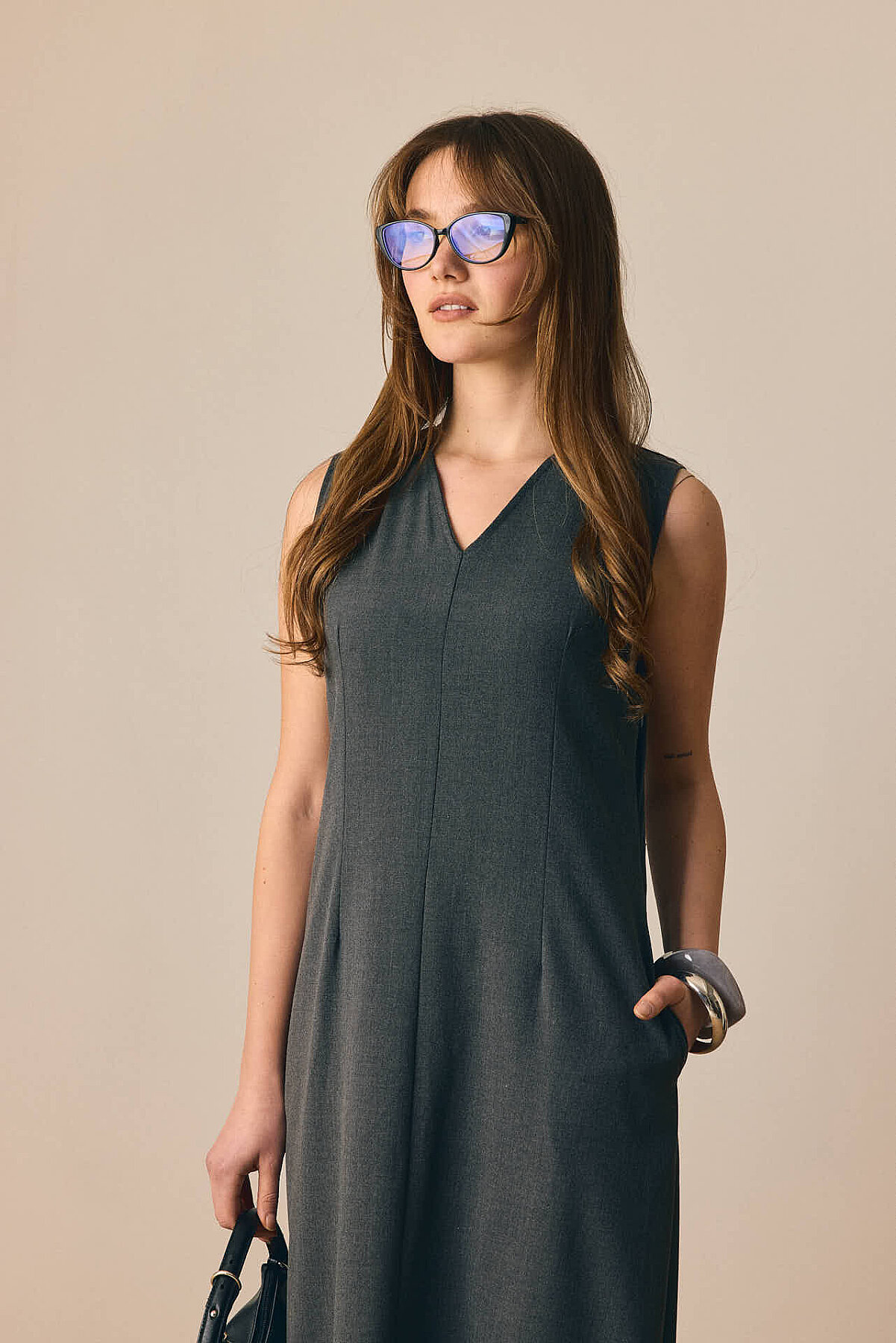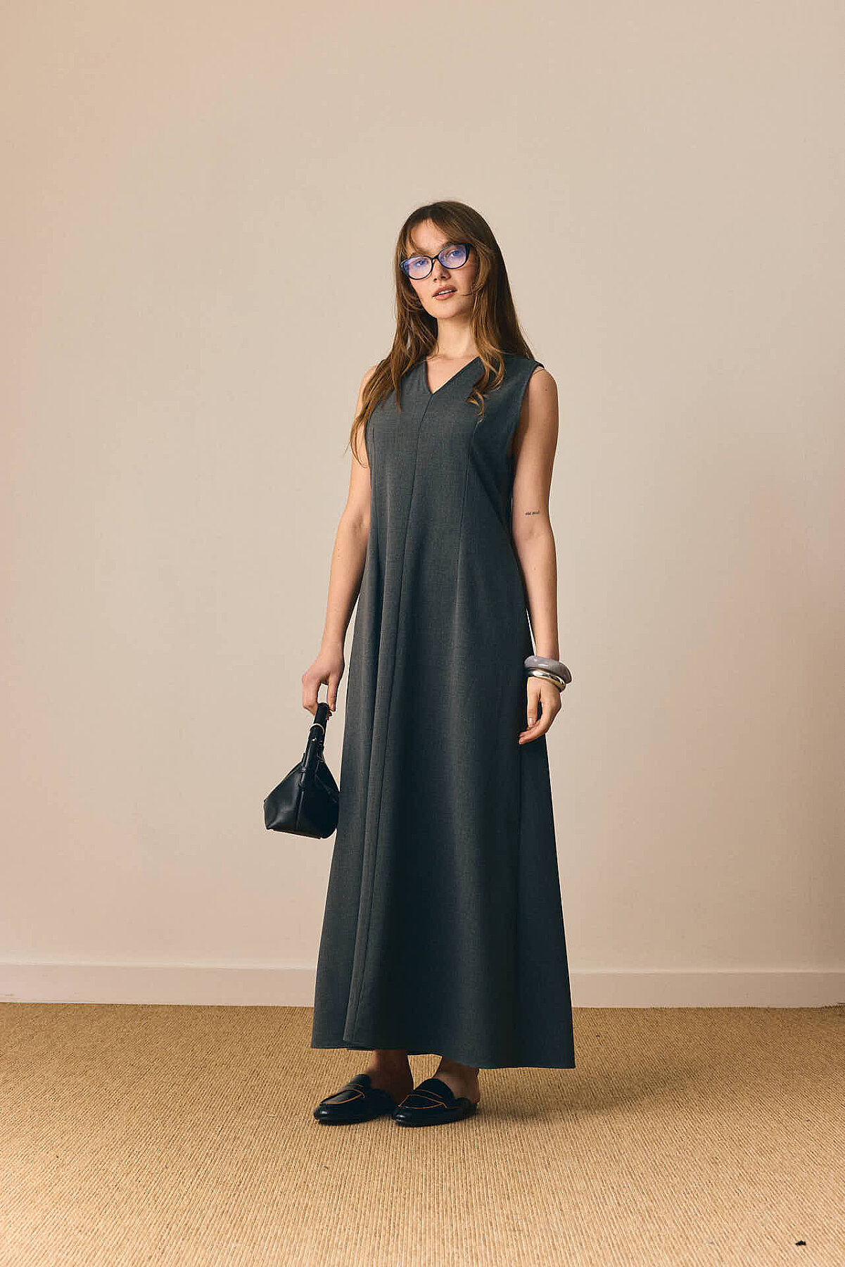 Zamansız çizgisi ve dengeli formuyla öne çıkan V Yaka Klasik Jile, sade şıklığı modern detaylarla buluşturur. V yaka kesimi tasarıma zarif bir çerçeve kazandırırken, pens detayları silueti dengeler. Önden parçalı yapısı modele hareket katarken, rahat dökümlü maksi boy formu gün boyu konfor sunar. Günlük kombinlerden daha şık görünümlere kadar geniş bir kullanım alanına sahiptir.