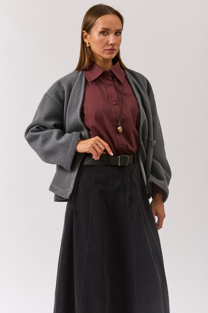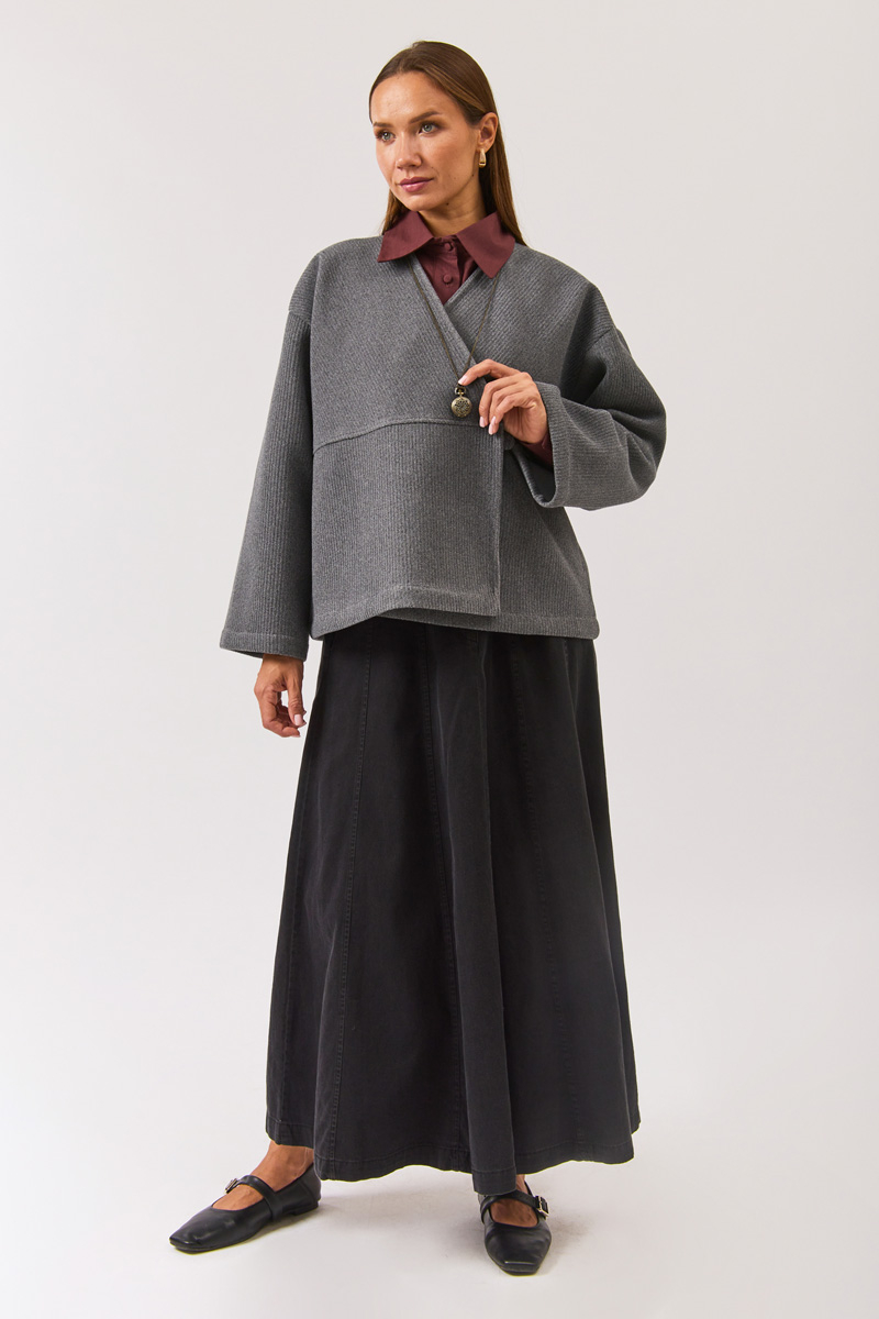 V Yaka Kruvaze Ceket Gri, minimal çizgisi ve zamansız tasarımıyla sonbahar gardırobunun güçlü tamamlayıcılarından biri. V yaka formu ve kruvaze kesimi ile modern ve sofistike bir duruş sunarken, rahat kalıbı sayesinde günlük kombinlerden ofis stiline kadar geniş bir kullanım alanı sağlar. Katmanlı görünümler oluşturmak için gömlekler, triko kazaklar ya da elbiselerle kolayca tamamlanabilir.