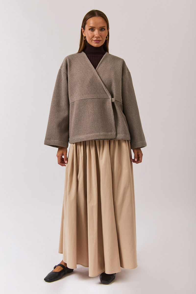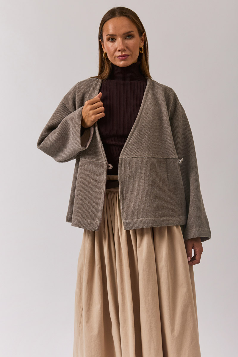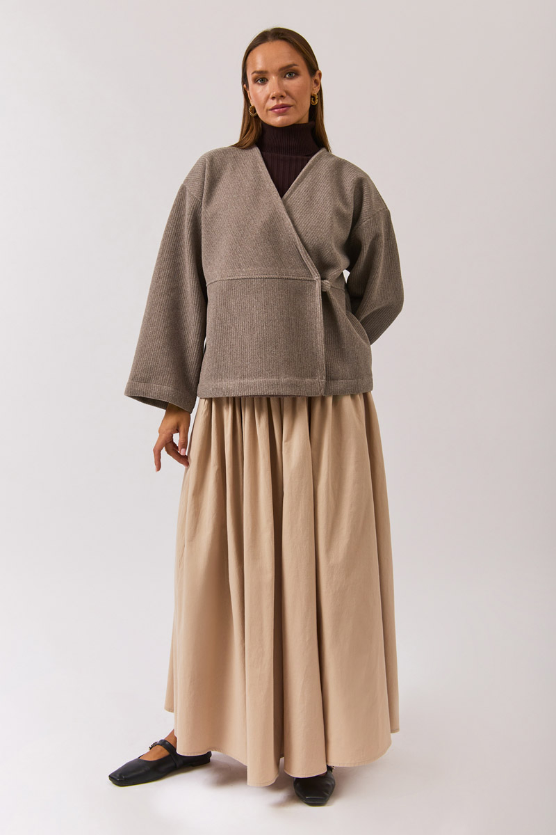 V Yaka Kruvaze Ceket Vizon, minimal çizgisi ve zamansız tasarımıyla sonbahar gardırobunun güçlü tamamlayıcılarından biri. V yaka formu ve kruvaze kesimi ile modern ve sofistike bir duruş sunarken, rahat kalıbı sayesinde günlük kombinlerden ofis stiline kadar geniş bir kullanım alanı sağlar. Katmanlı görünümler oluşturmak için gömlekler, triko kazaklar ya da elbiselerle kolayca tamamlanabilir.