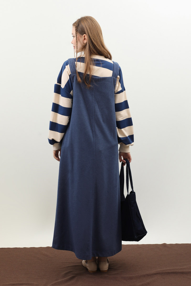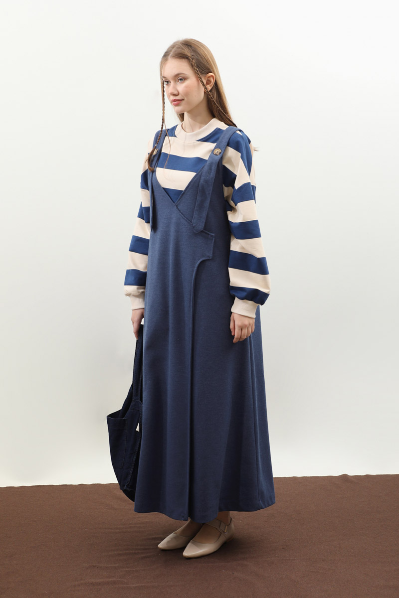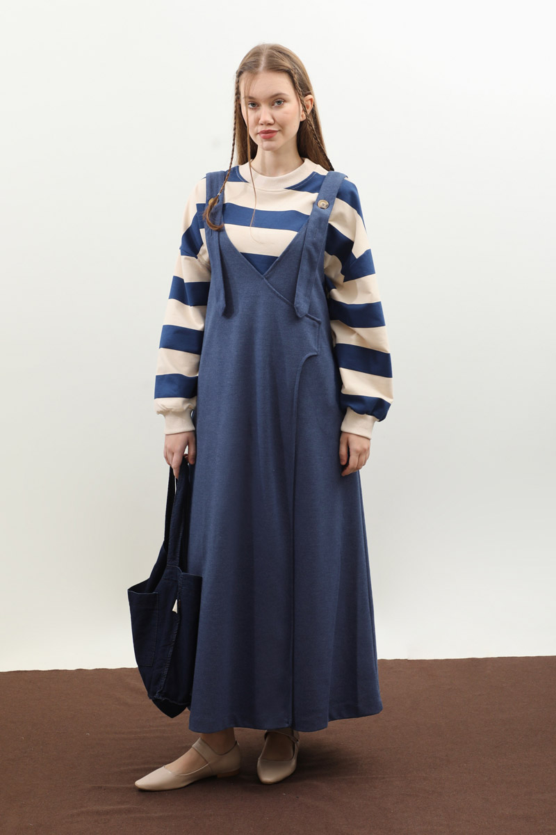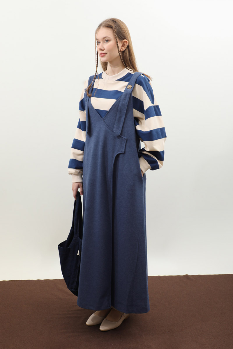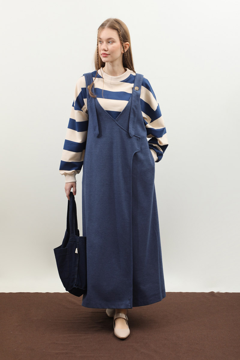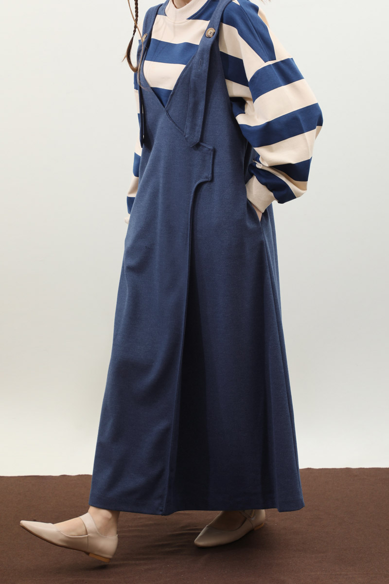 V Yaka Kruvaze Jile İndigo. V yakadır, kalın askılı olup ayarlanabilir düğmeldir. Yandan gizli ceplidir, astarsızdır, iç göstermez. Günlük kullanım ve özel günlerinizde tercih edebilirsiniz.