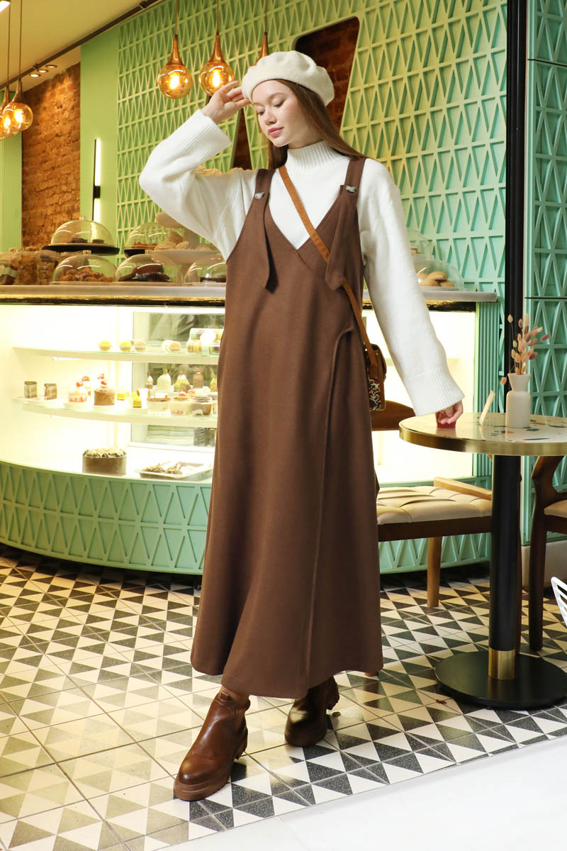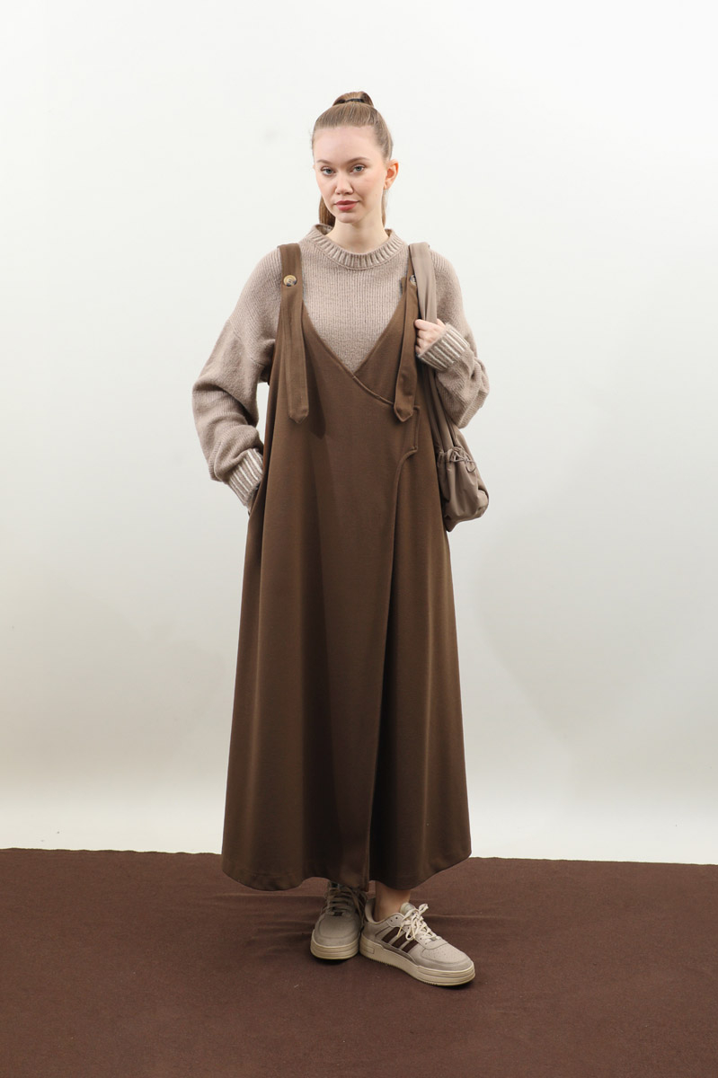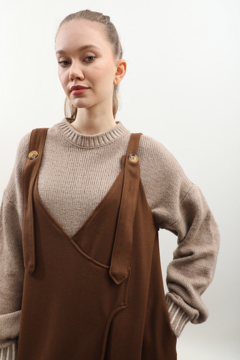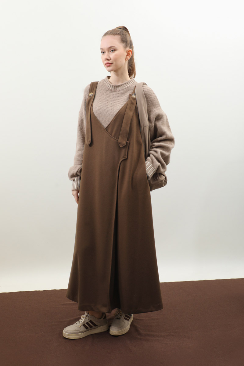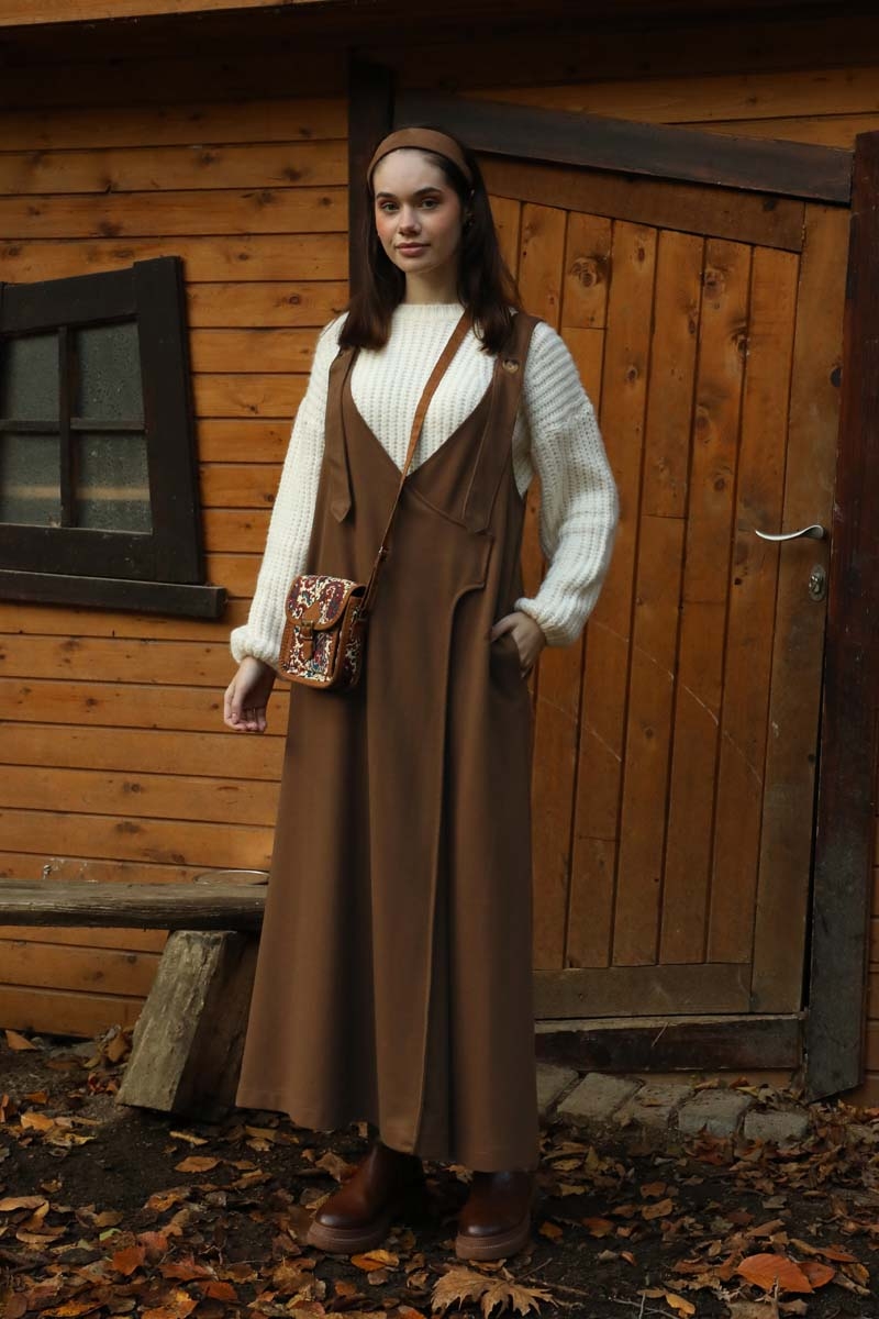 V Yaka Kruvaze Jile Kahverengi. V yakadır, kalın askılı olup ayarlanabilir düğmeldir. Yandan gizli ceplidir, astarsızdır, iç göstermez. Günlük kullanım ve özel günlerinizde tercih edebilirsiniz.