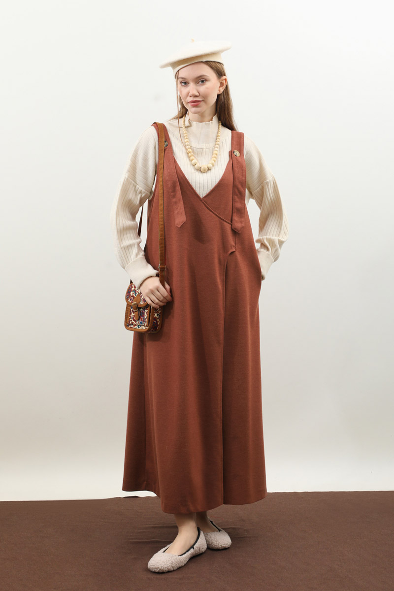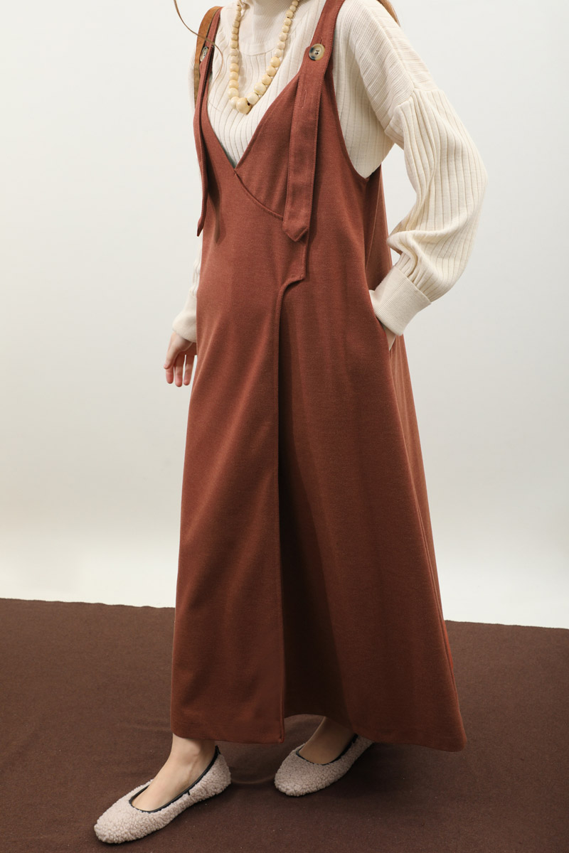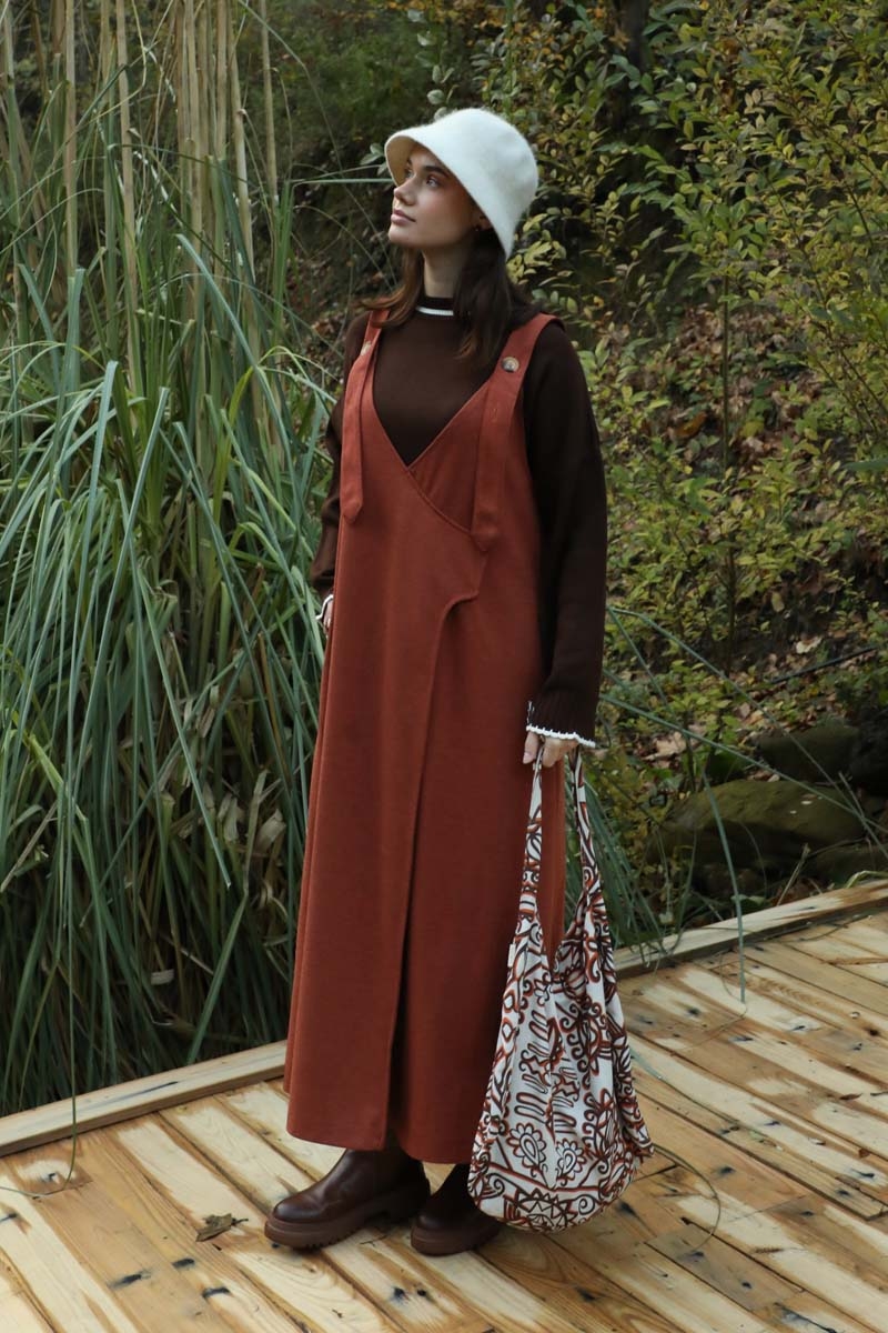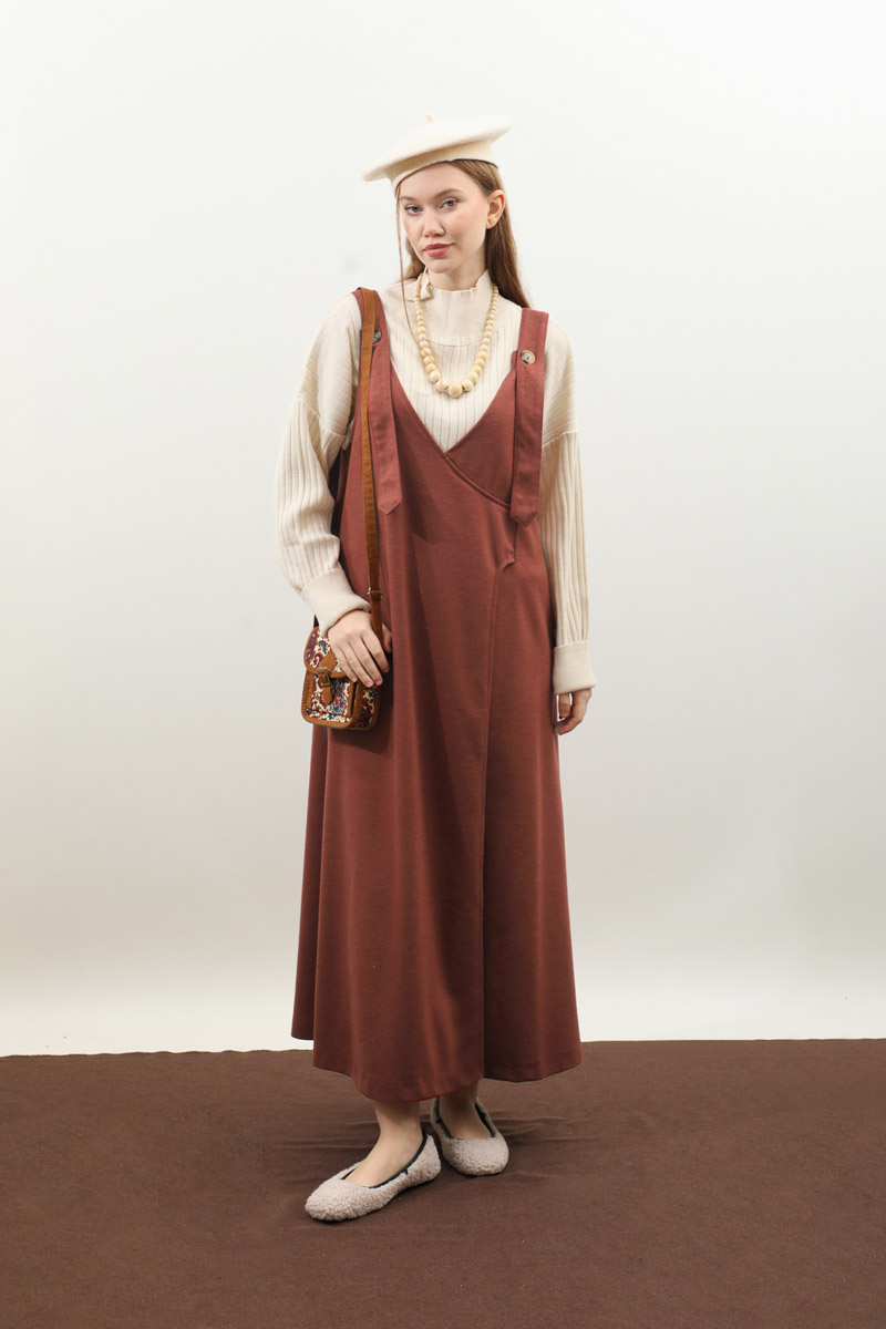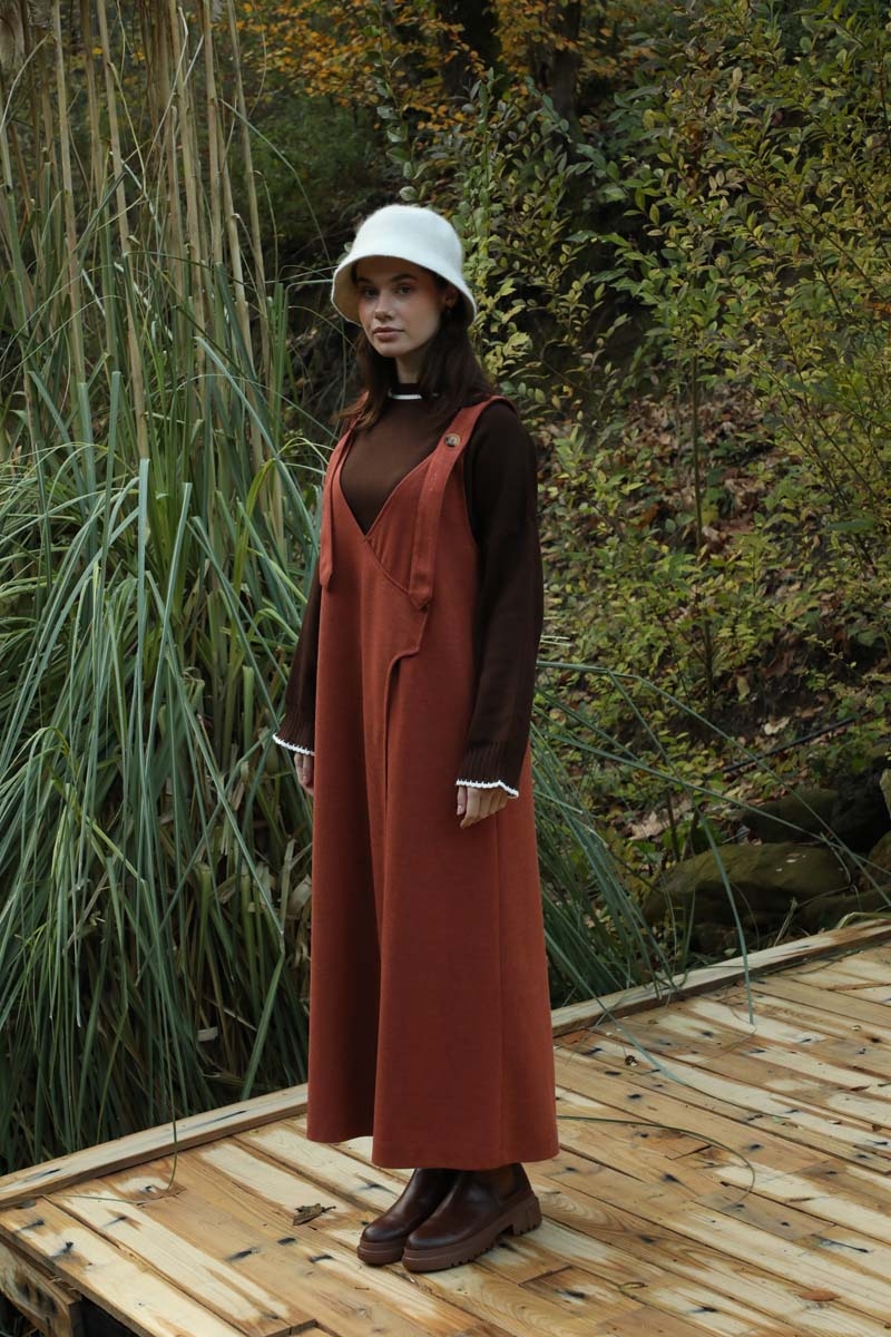 V Yaka Kruvaze Jile Kiremit. V yakadır, kalın askılı olup ayarlanabilir düğmeldir. Yandan gizli ceplidir, astarsızdır, iç göstermez. Günlük kullanım ve özel günlerinizde tercih edebilirsiniz.