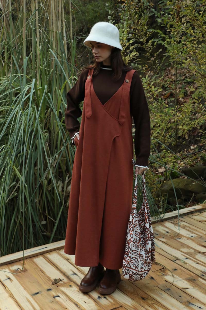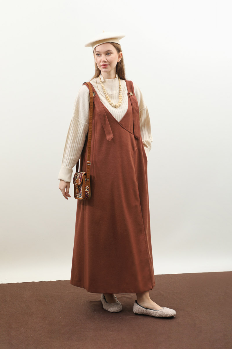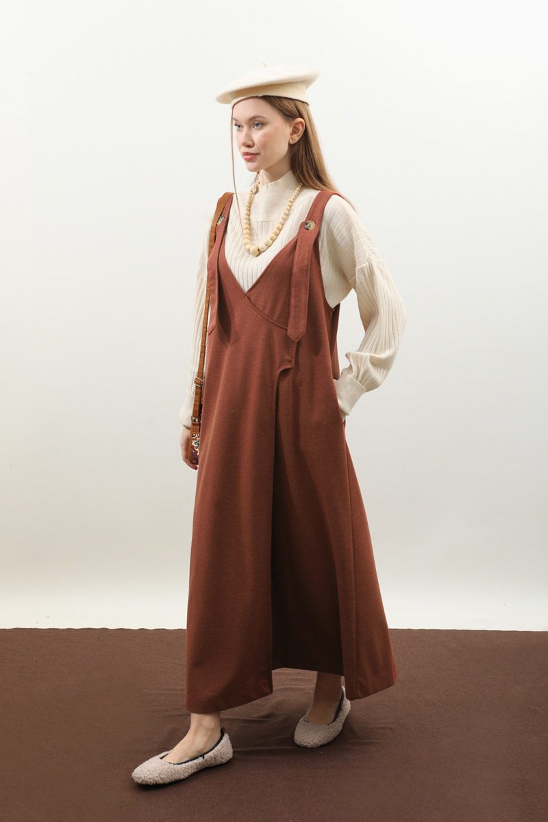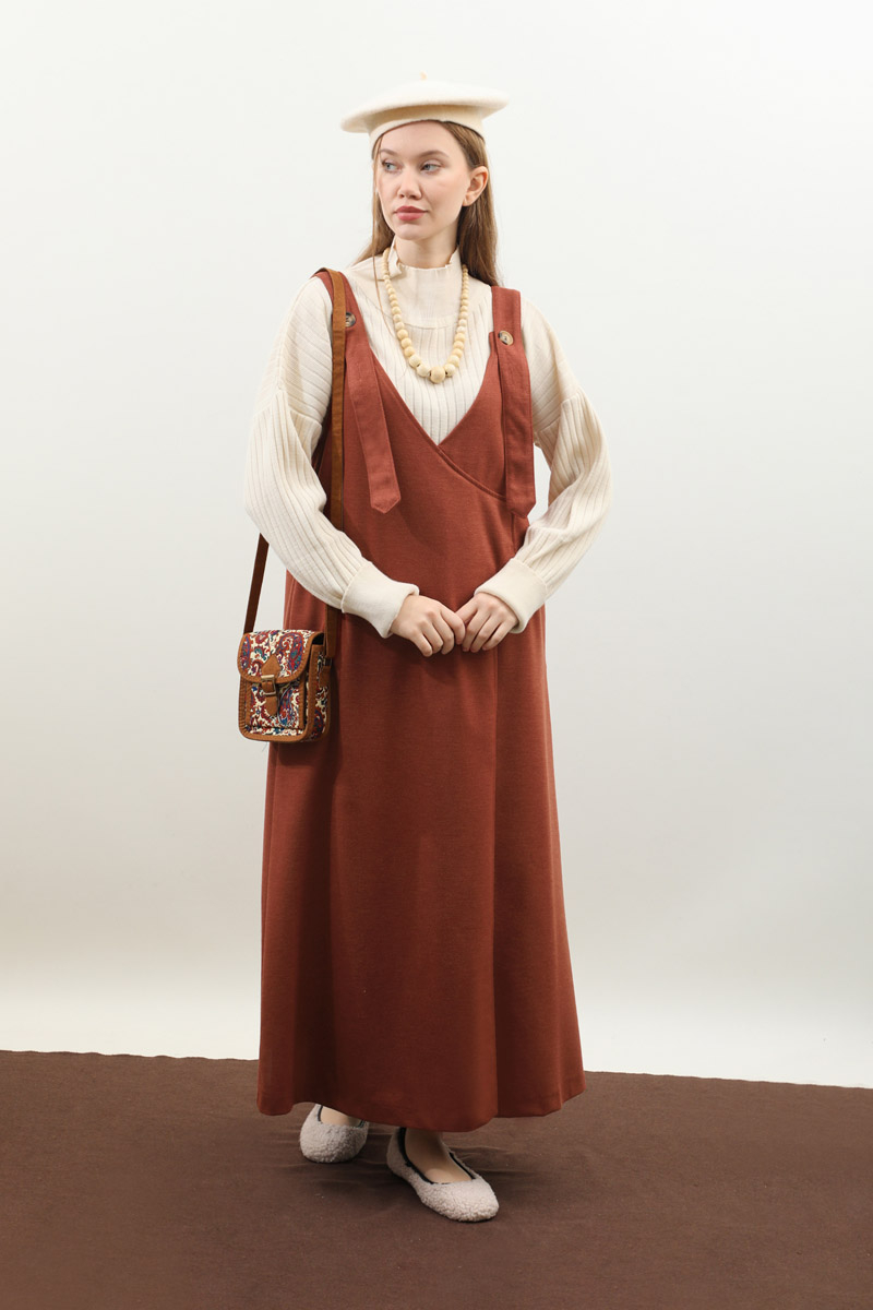 V Yaka Kruvaze Jile Kiremit. V yakadır, kalın askılı olup ayarlanabilir düğmeldir. Yandan gizli ceplidir, astarsızdır, iç göstermez. Günlük kullanım ve özel günlerinizde tercih edebilirsiniz.