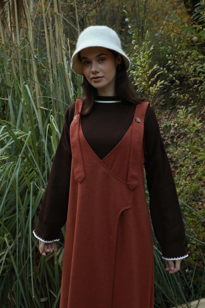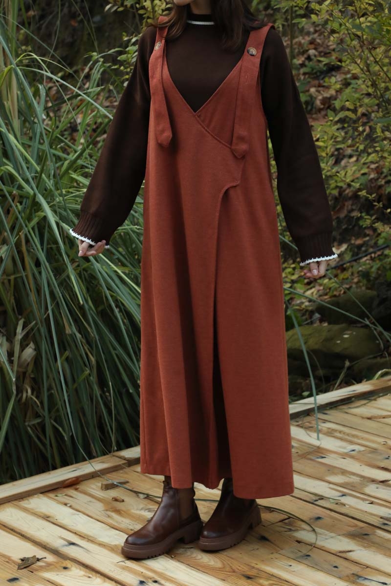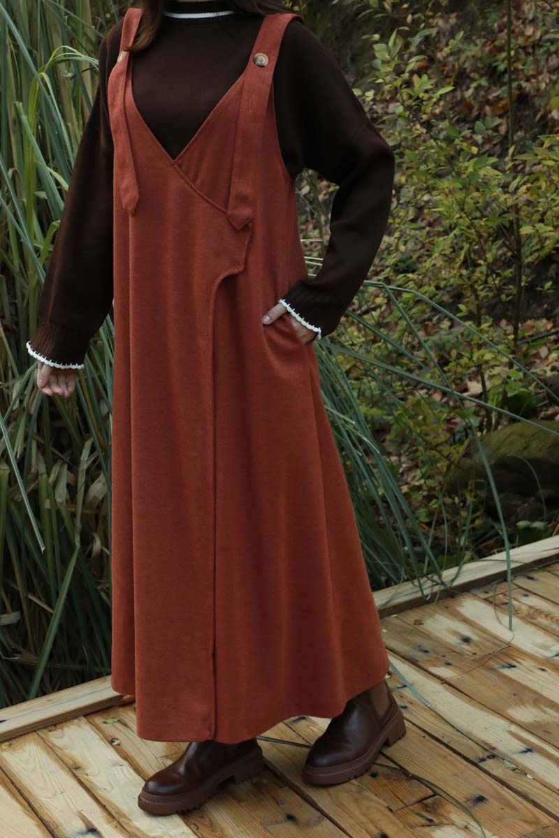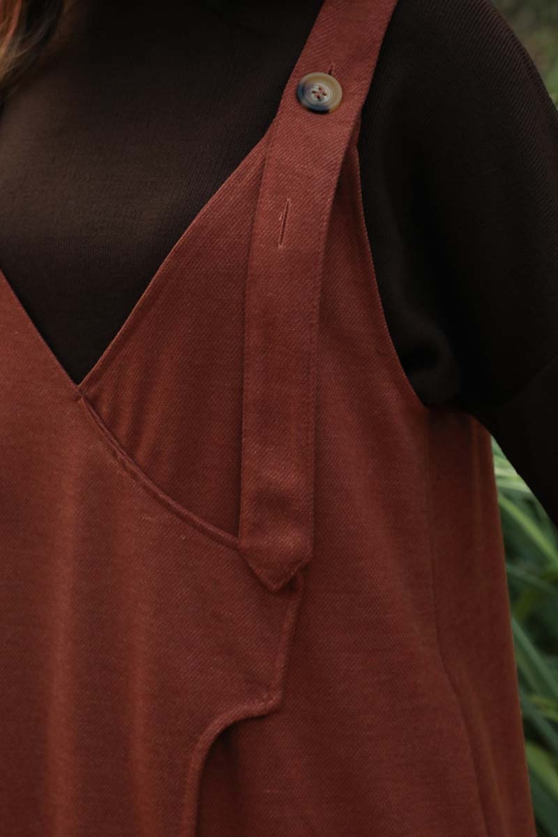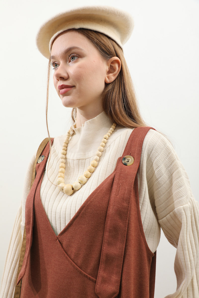 V Yaka Kruvaze Jile Kiremit. V yakadır, kalın askılı olup ayarlanabilir düğmeldir. Yandan gizli ceplidir, astarsızdır, iç göstermez. Günlük kullanım ve özel günlerinizde tercih edebilirsiniz.