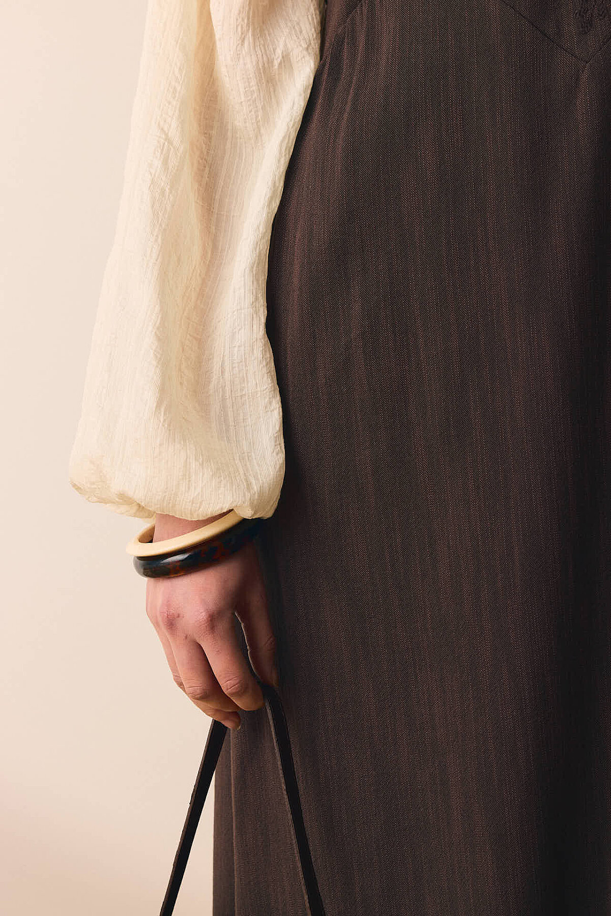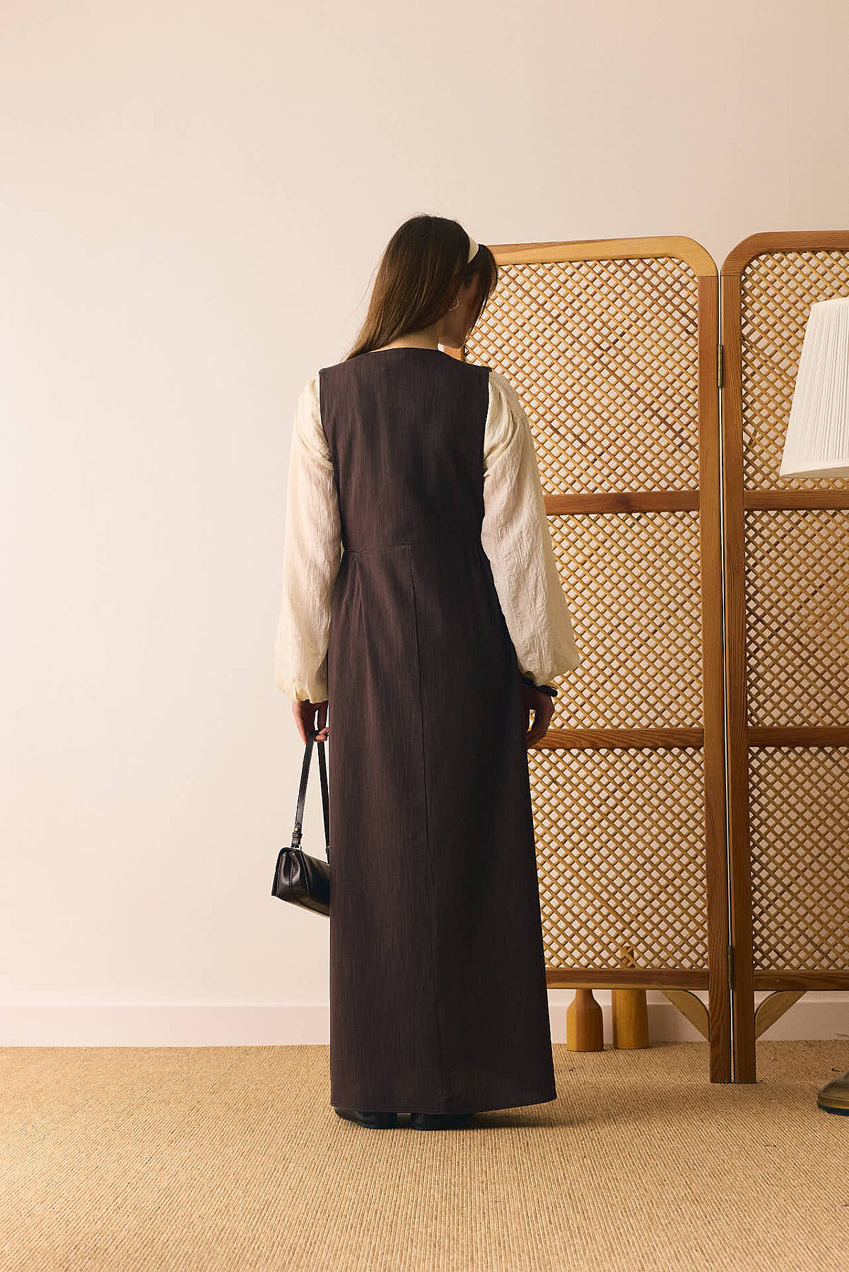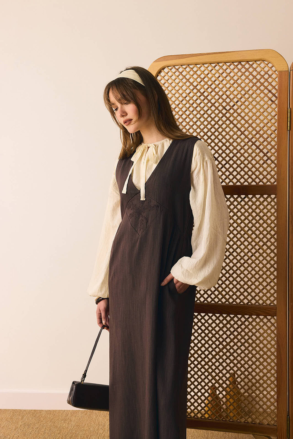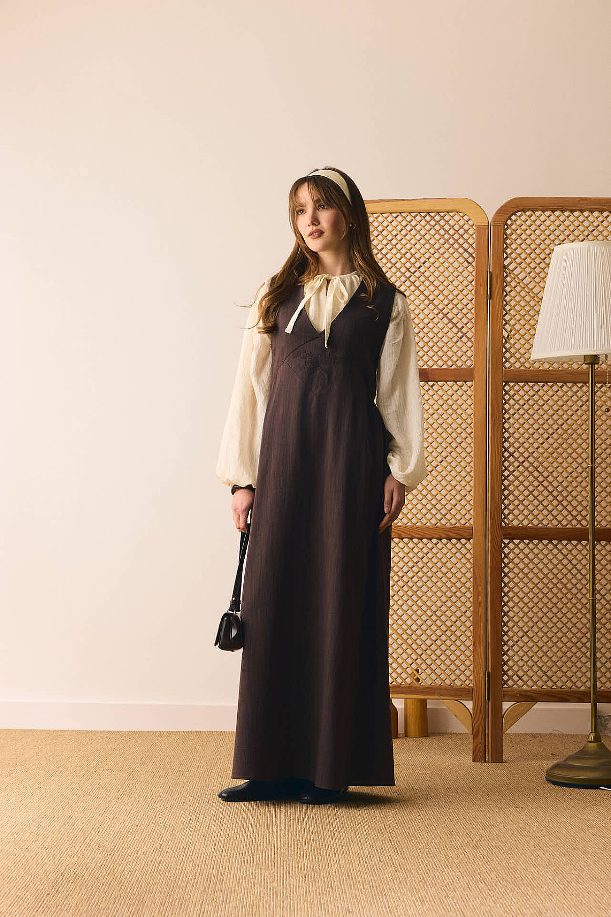Zarif nakış detayları ve doğal dokusuyla öne çıkan V Yaka Nakışlı Jile, sade şıklığı dengeli bir siluetle buluşturur. V yaka formu tasarıma zarif bir çerçeve kazandırırken, ön kısımdaki nakış detayları modele karakterli bir dokunuş katar. Pamuklu yapısı sayesinde nefes alabilen bir kullanım sunar; rahat dökümlü maksi boy formu ile gün boyu konfor sağlar. Günlük kombinlerden daha özenli görünümlere kadar geniş bir kullanım alanına sahiptir.