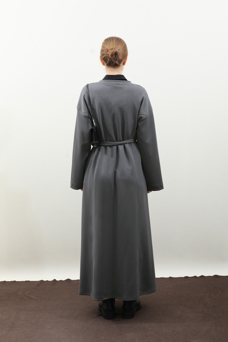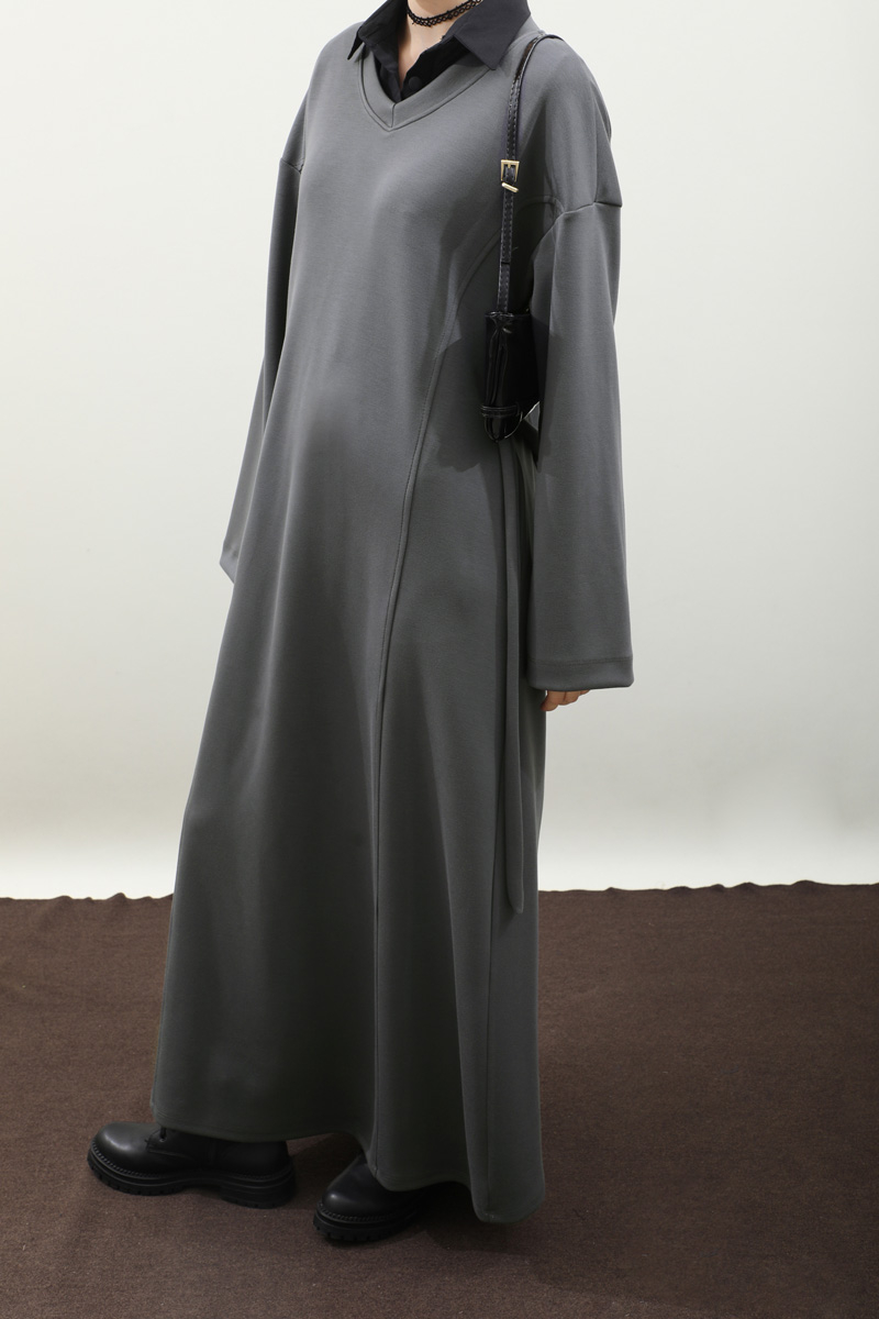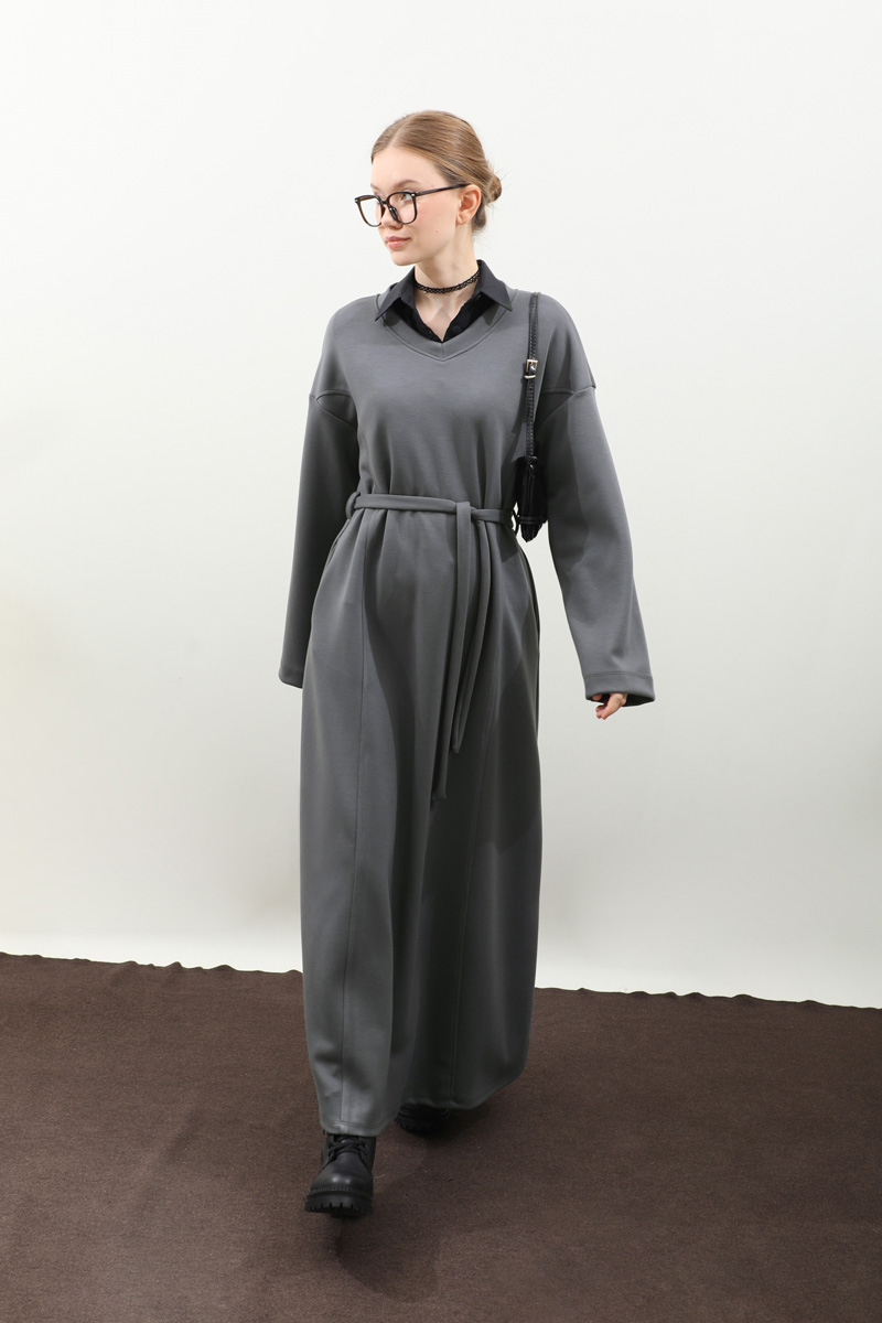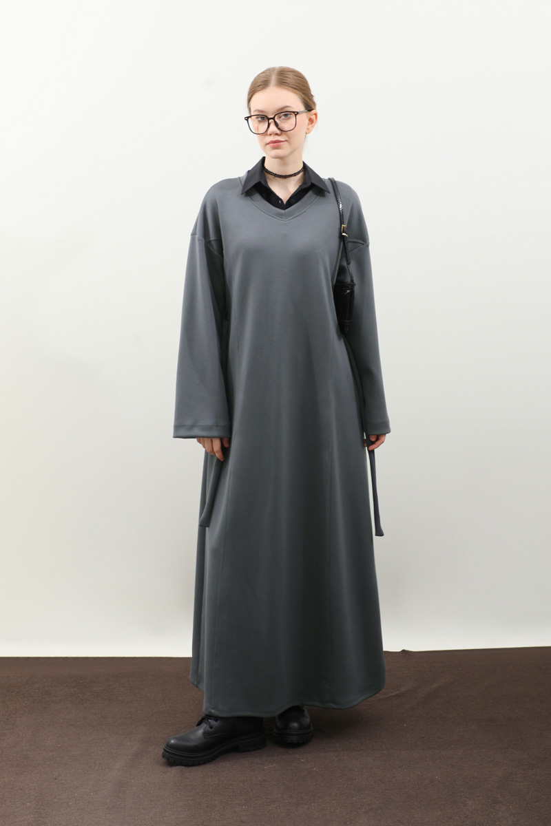 V Yaka Sweat Elbise Antrasit