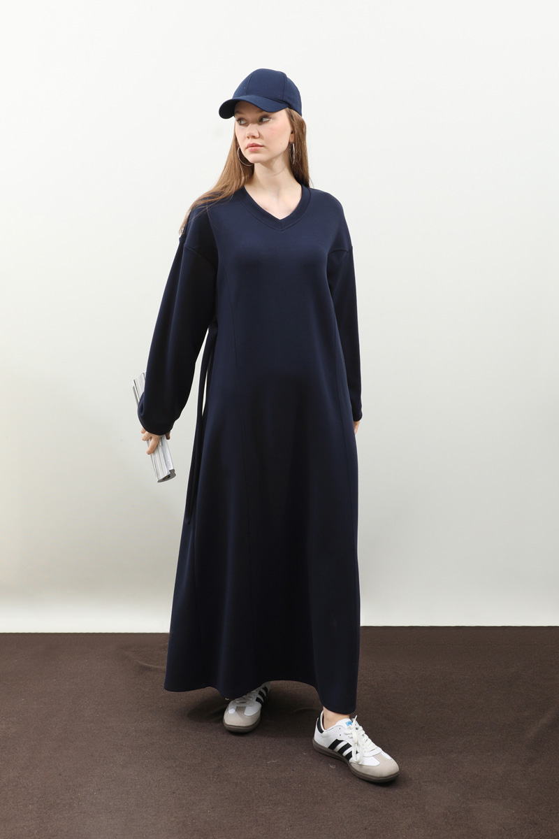 V Yaka Sweat Elbise Lacivert