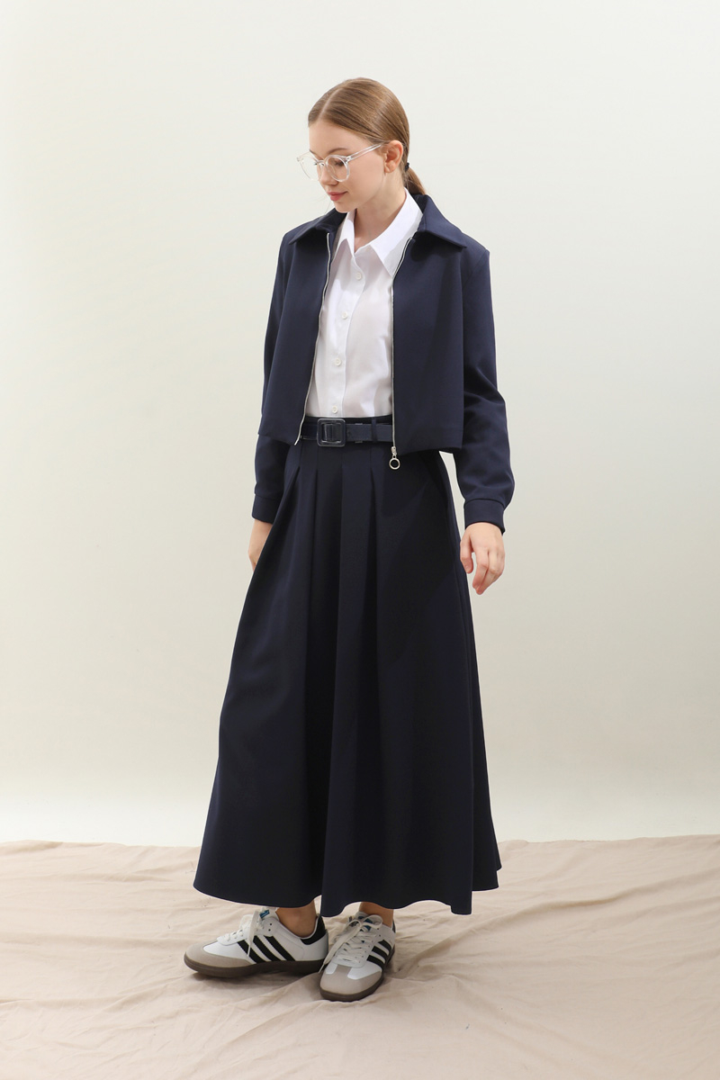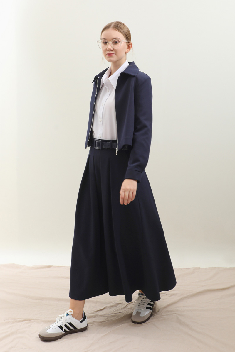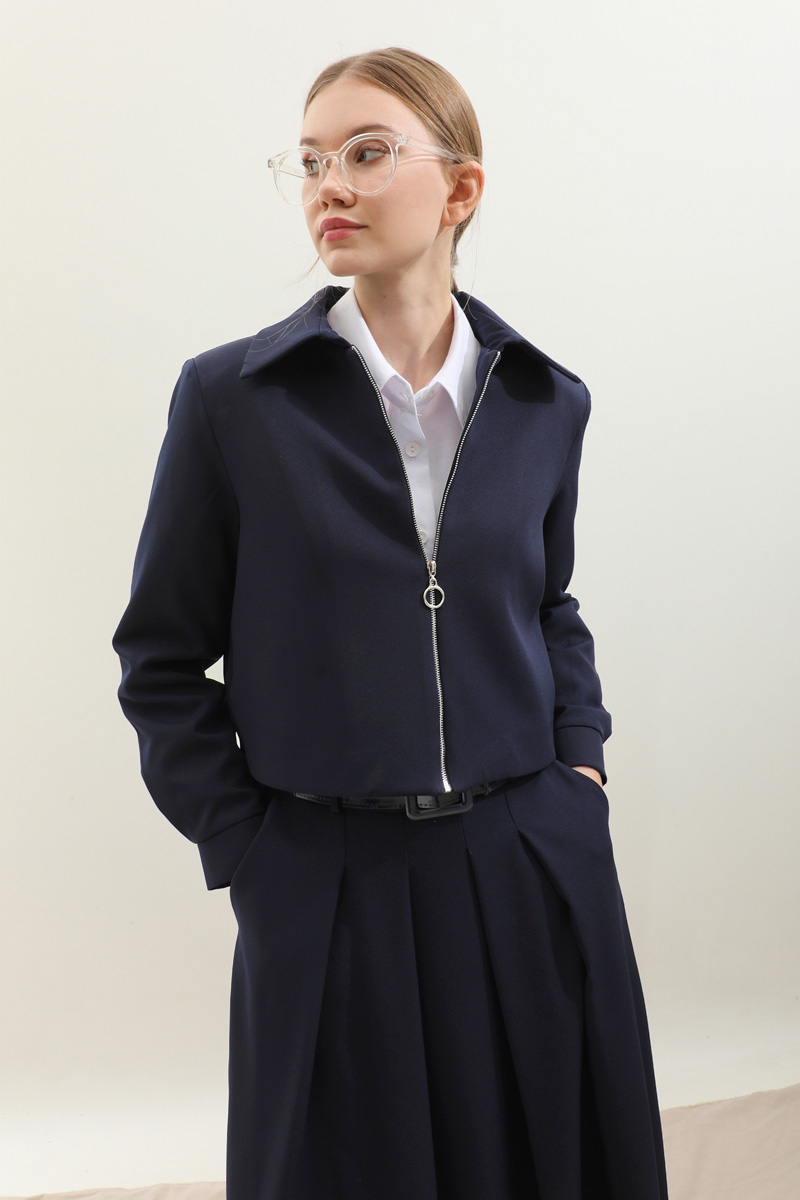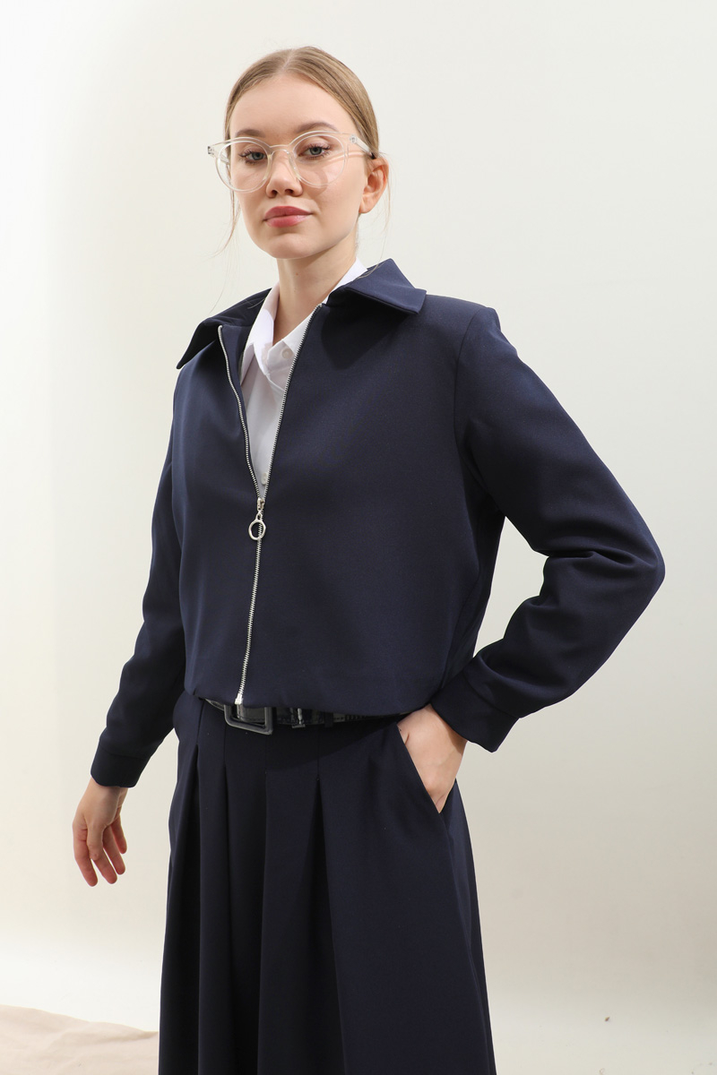 Vatkalı Ceket Etek Takım Lacivert. Ceket gömlek yakadır, vatkalıdır önden fermuarlıdır. Ceket astarlıdır, manşetinde pile detaylıdır, cepsizdir. Etek pile detaylıdır, yandan gizli fermuarlıdır. ceplidir, etek astarsızdır. Günlük kullanım ve özel günlerinizde tercih edebilirsiniz.