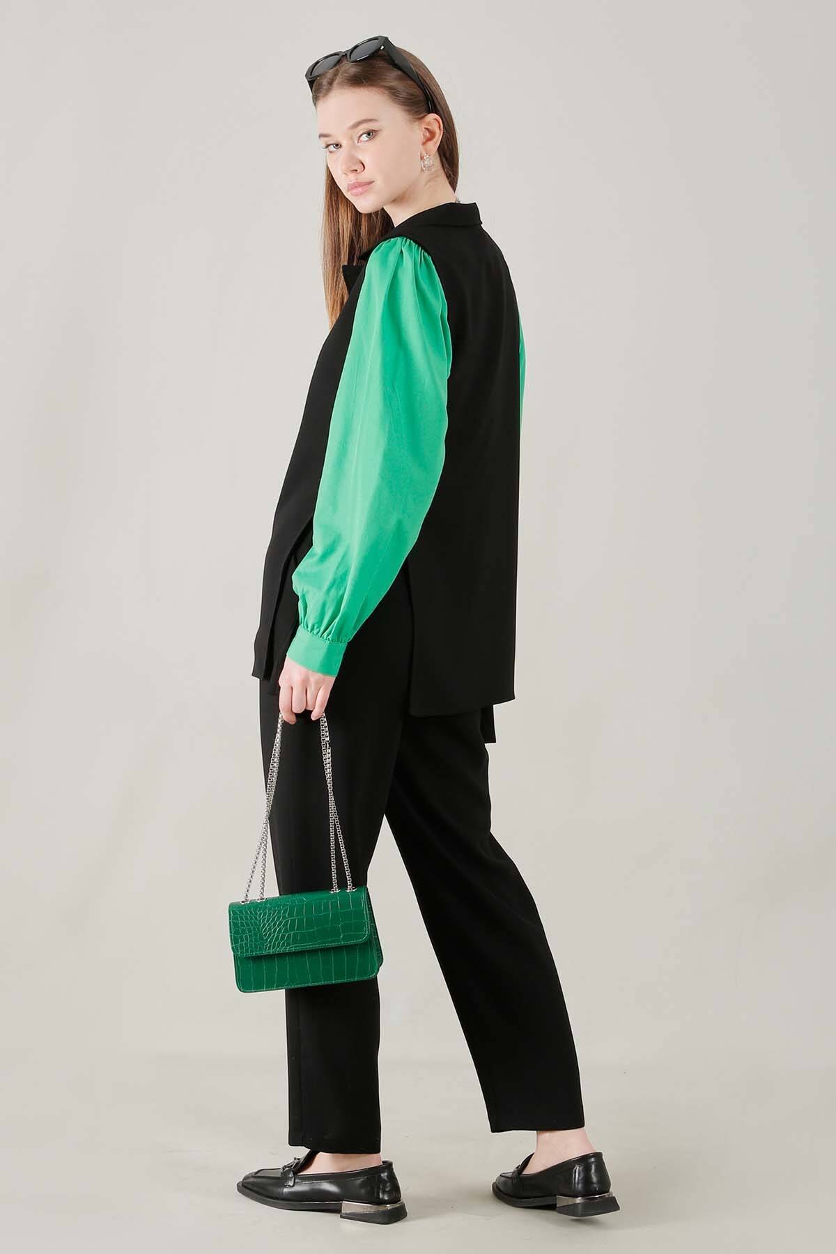 Vest Tunic Suit Black, active pockets, Vest should be tied on the side. It has side pockets. It is full mold.