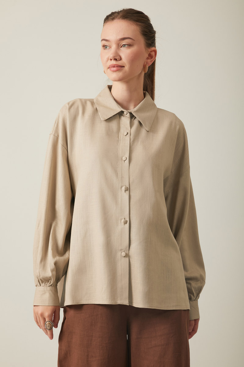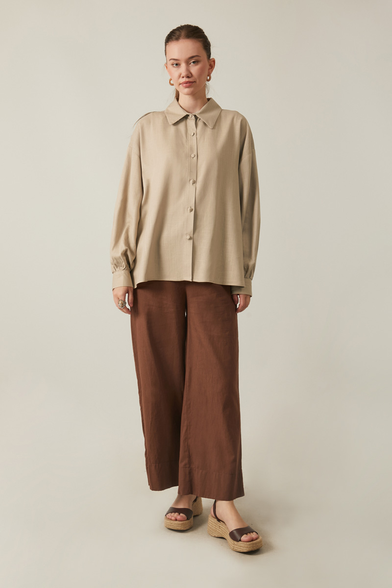 Made from viscose-linen fabric, this shirt offers all-day comfort with its breathable texture while creating a sophisticated style with nostalgic details. Designed with a sustainable fashion approach, this jie set also reminds us that being environmentally conscious is a statement of style.