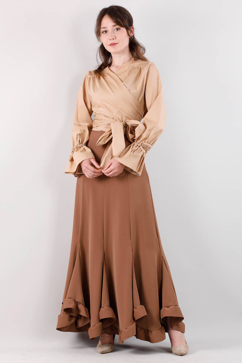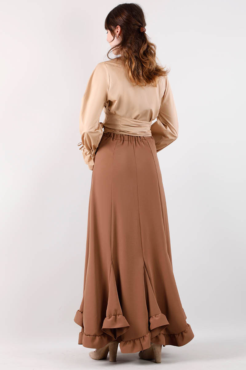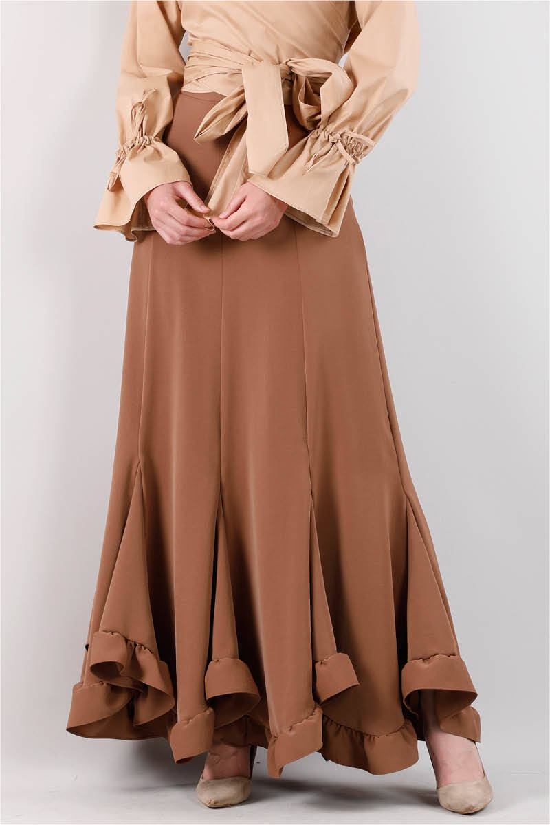 Volanlı Fırfırlı Etek Çikolata Kahve