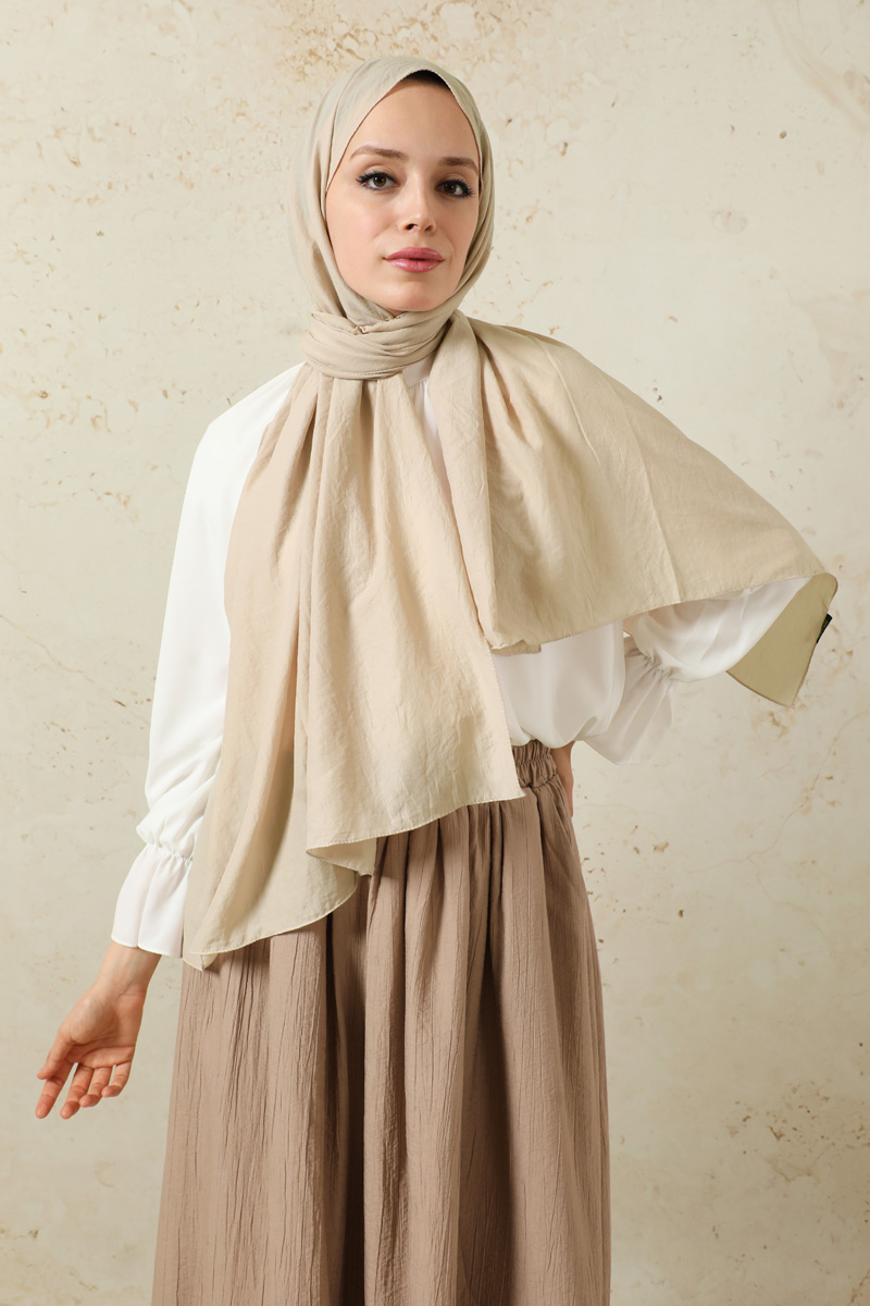 Vual Şal Bej. Pratik oluşu ve kolay şekil alabilir. Tok duruşlu ve dökümlü yapısıyla çok tercih edilmektedir. Ağırlık yapmayan kumaş özelliği ile sık ve uzun süreli kullanıma uygundur. Dört mevsim kullanıma uygundur.