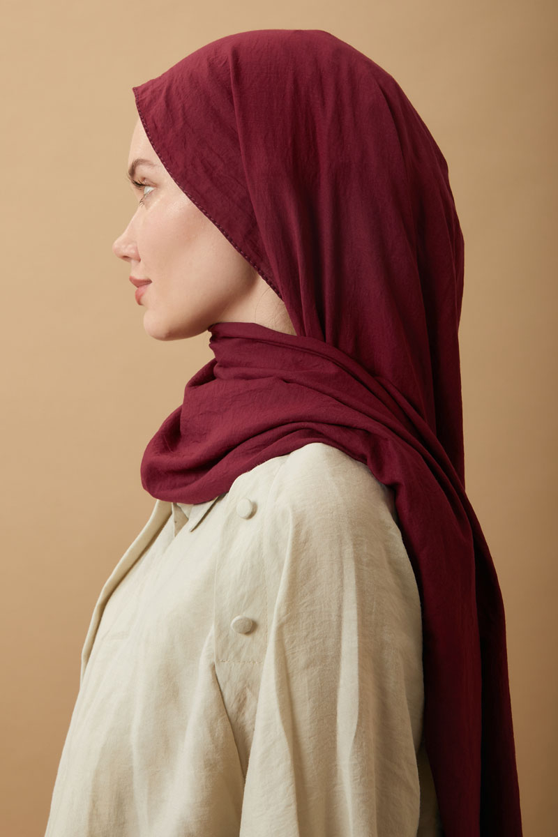 Vual Şal Bordo. Pratik oluşu ve kolay şekil alabilir. Tok duruşlu ve dökümlü yapısıyla çok tercih edilmektedir. Ağırlık yapmayan kumaş özelliği ile sık ve uzun süreli kullanıma uygundur. Dört mevsim kullanıma uygundur.