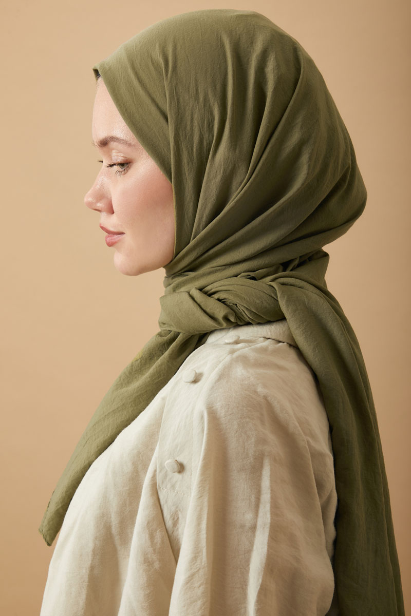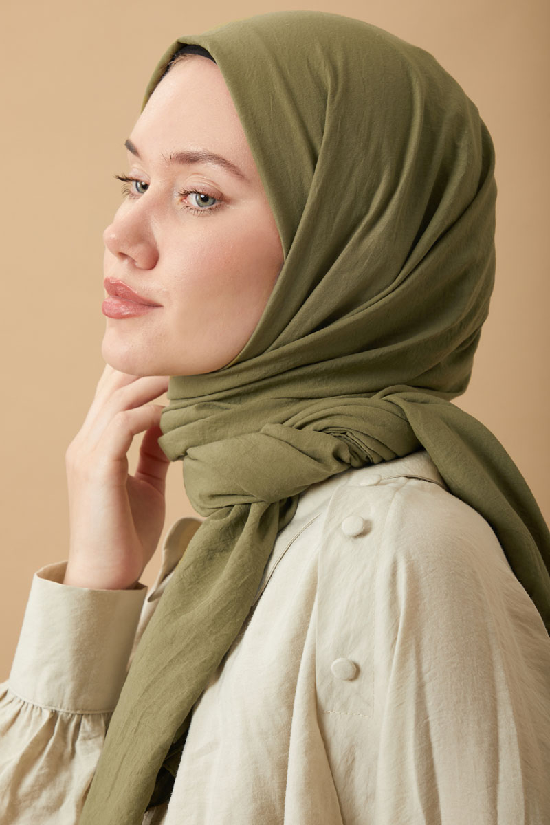 Vual Şal Haki. Pratik oluşu ve kolay şekil alabilir. Tok duruşlu ve dökümlü yapısıyla çok tercih edilmektedir. Ağırlık yapmayan kumaş özelliği ile sık ve uzun süreli kullanıma uygundur. Dört mevsim kullanıma uygundur.