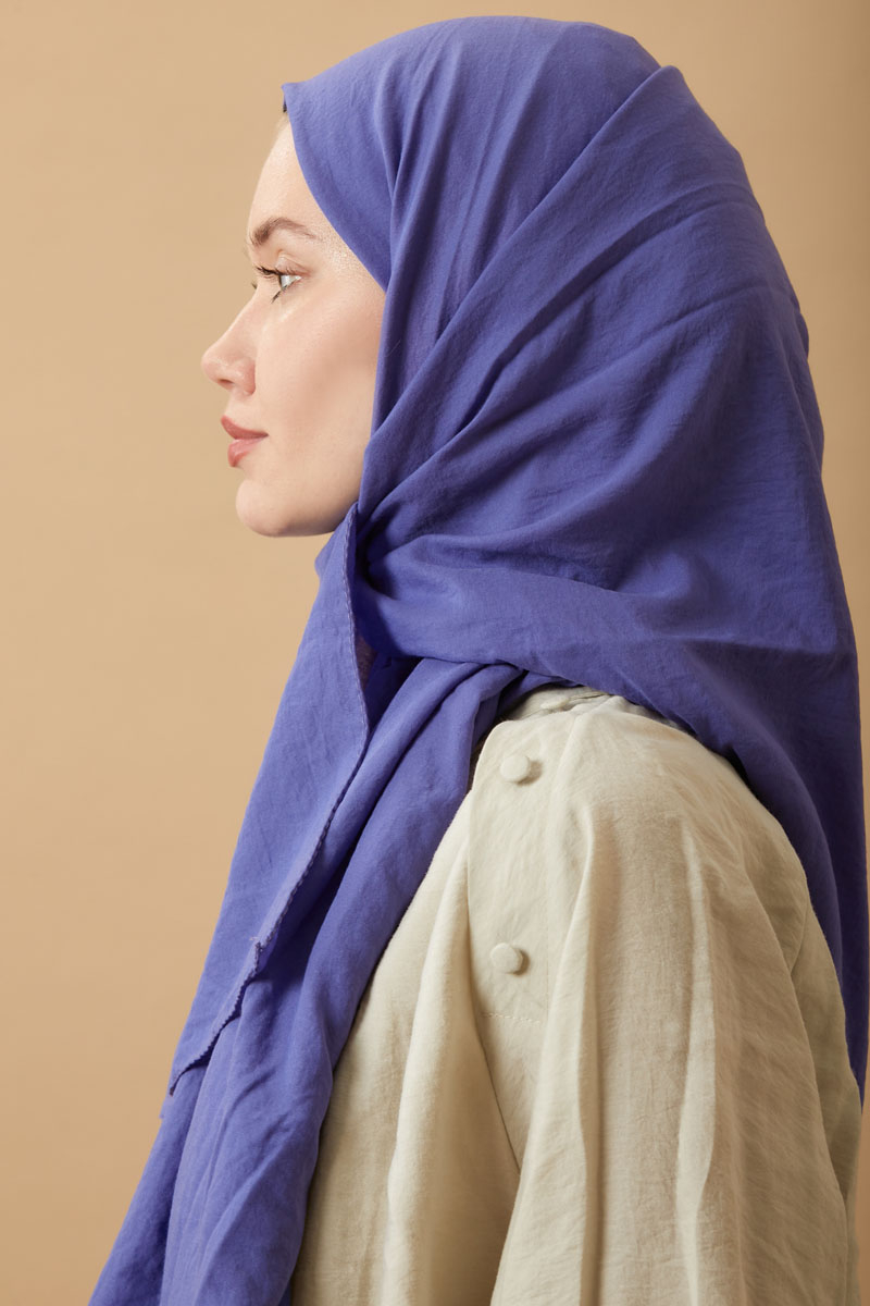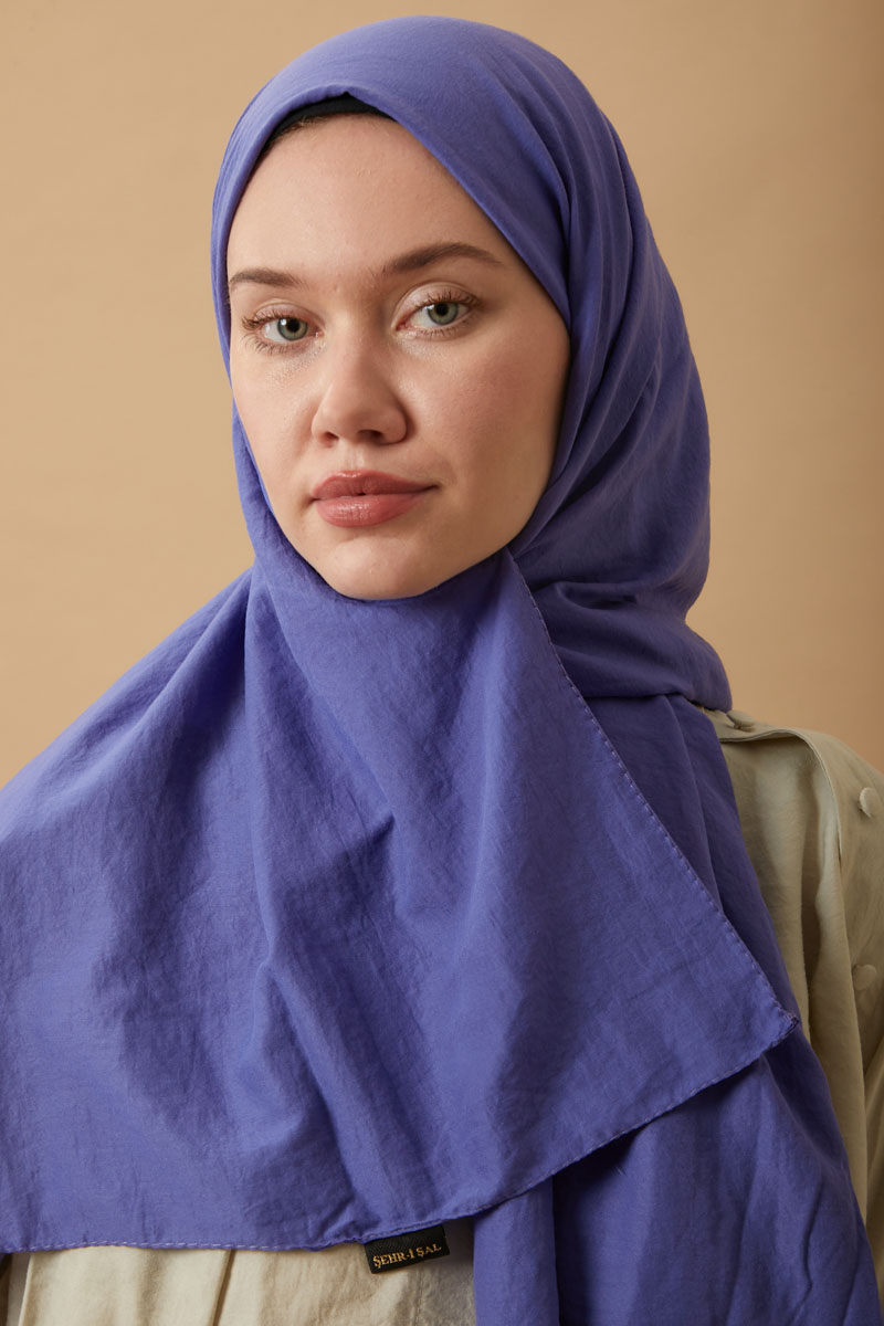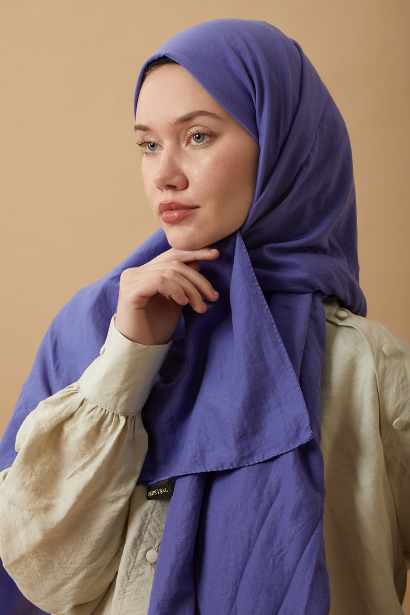 Vual Şal Koyu Mavi. Pratik oluşu ve kolay şekil alabilir. Tok duruşlu ve dökümlü yapısıyla çok tercih edilmektedir. Ağırlık yapmayan kumaş özelliği ile sık ve uzun süreli kullanıma uygundur. Dört mevsim kullanıma uygundur.