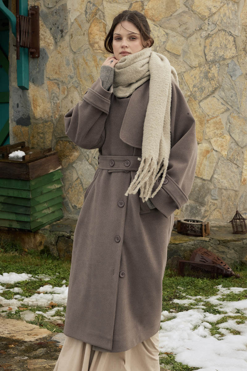 Wind Flap Premium Coat Mink brings a clear and confident character to winter style with its strong stance and functional design. The wind flap detail on the front panel adds depth to the silhouette while providing extra protection against cold weather. Thanks to its firm, premium-textured fabric, the coat maintains its form and offers all-day comfort with its relaxed fit. With its high collar design and pocketed structure, it is a timeless outerwear piece suitable for both city life and everyday combinations.