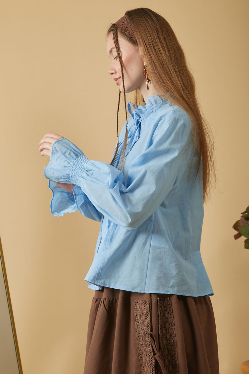 Yakası Bağcıklı Nervürlü Gömlek Bebe Mavisi, vual kumaştan üretilen bu gömlek, nefes alabilen yapısıyla konfor sunar. Yaka kısmındaki fırfır ve bağlama detayları, önündeki nervür detayı ve biye düğmelerle şık bir görünüm oluşturur. Rahat kesimiyle hem günlük hem de özel anlar için idealdir..