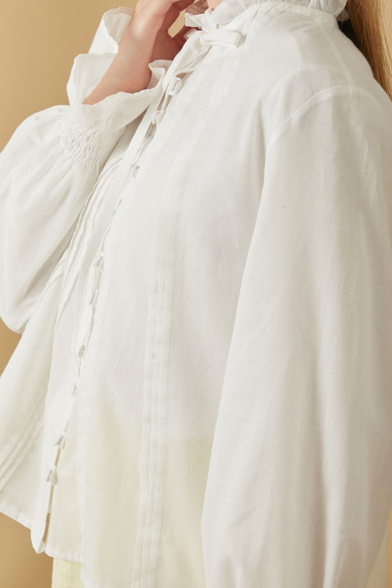 Yakası Bağcıklı Nervürlü Gömlek Beyaz